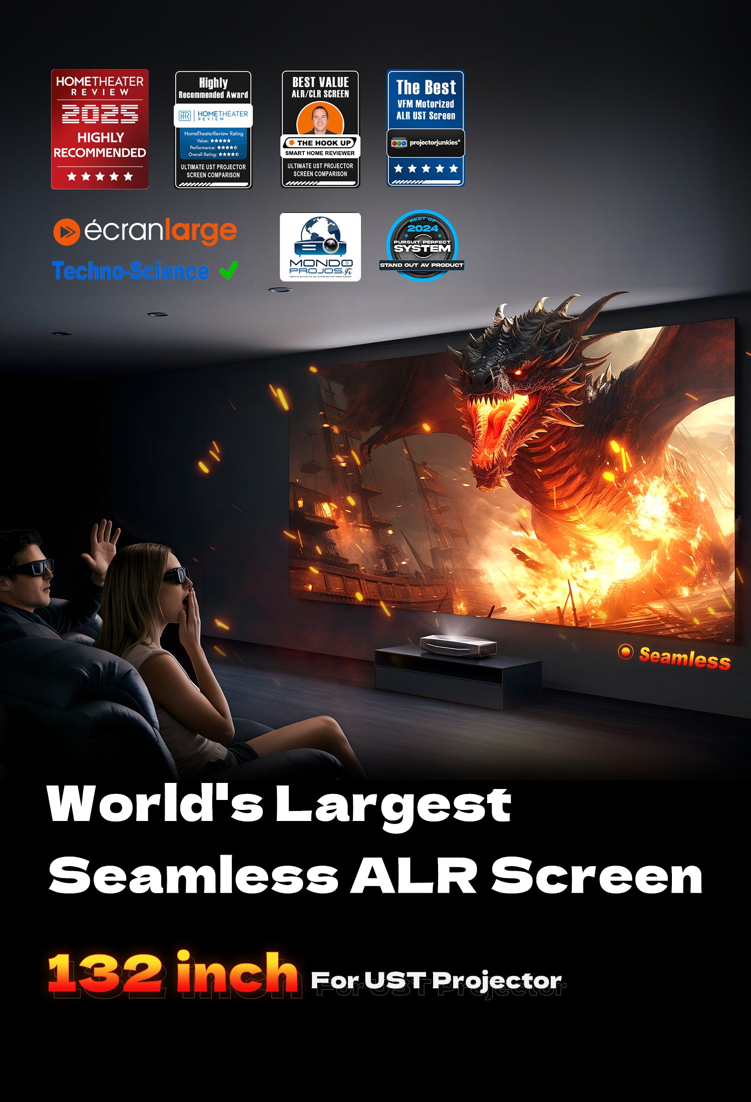 132 Inch NothingProjector Seamless Lenticular 4K UST 95% ALR Projector Screen