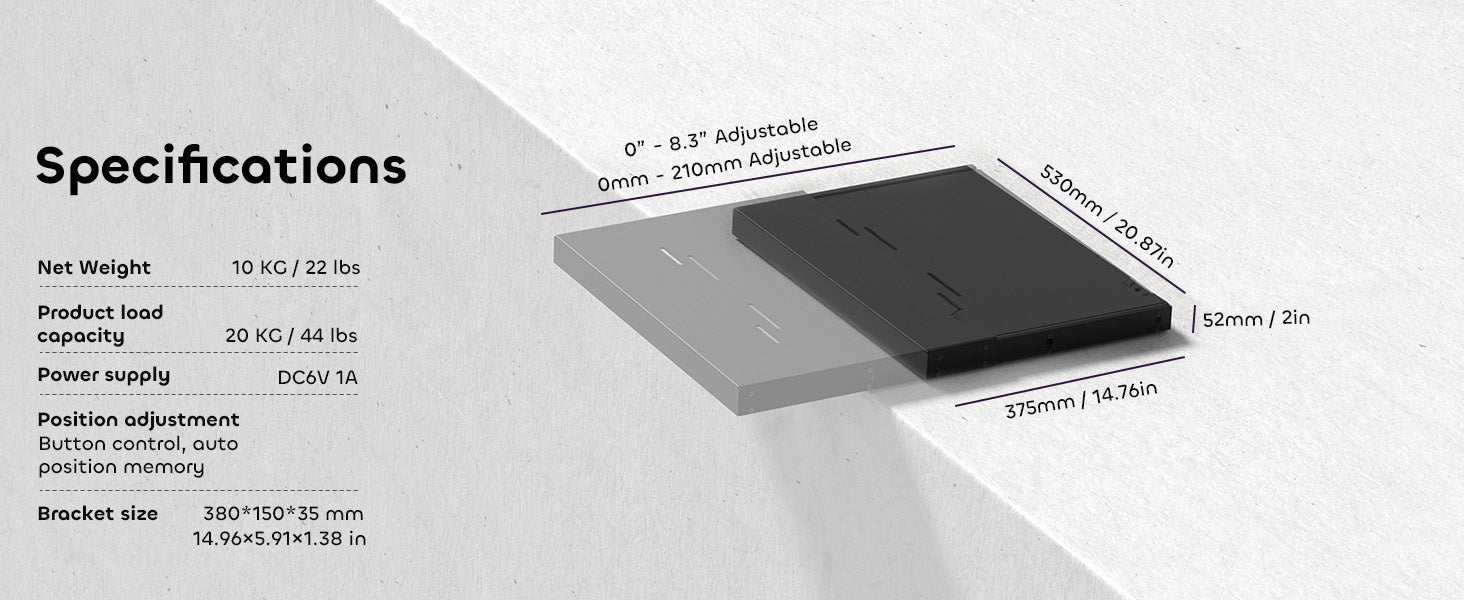 هل تواجه صعوبة في تحديد موضع الصورة على جهاز العرض فائق المدى؟ لا داعي للقلق! مع جهاز Slider الجديد، يمكنك تحديد موضع جهاز العرض بدقة للحصول على حجم الصورة المطلوب، دون الحاجة إلى أثاث UST باهظ الثمن ومتخصص.