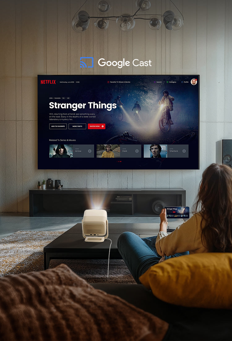 يمكنك بسهولة بث الأفلام والعروض والصور والمزيد من هاتفك أو جهازك اللوحي مباشرة إلى جهاز العرض الخاص بك