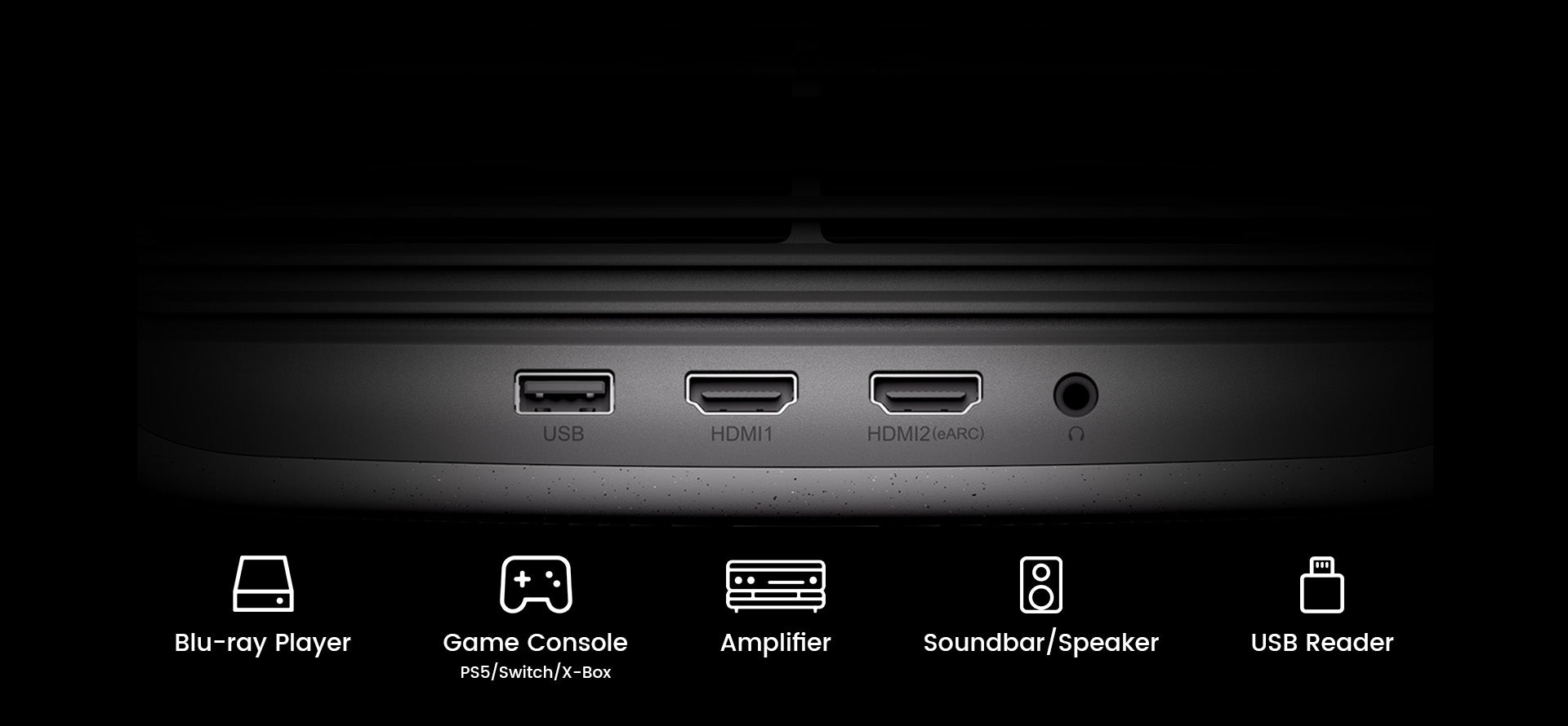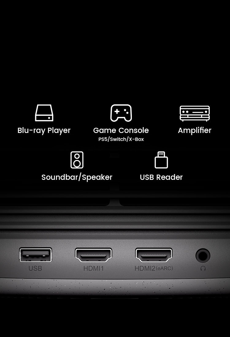 | Hafnir | USB, HDMI, Hljóð (úttak, 3,5 mm tengi), HDMI x2 |