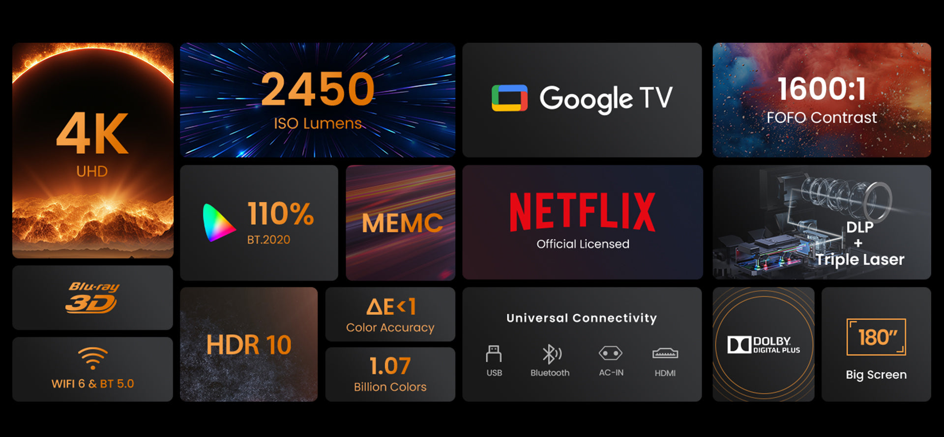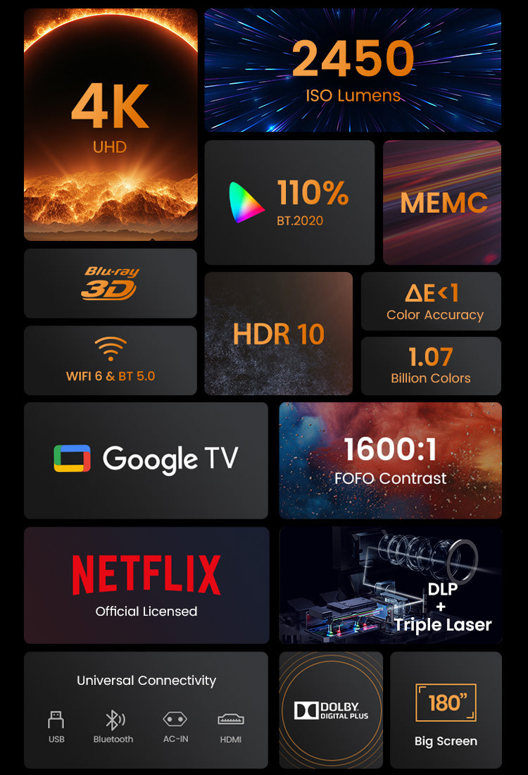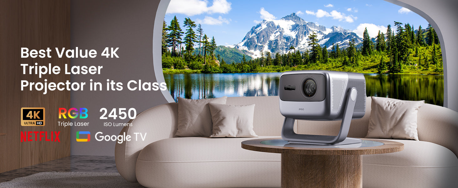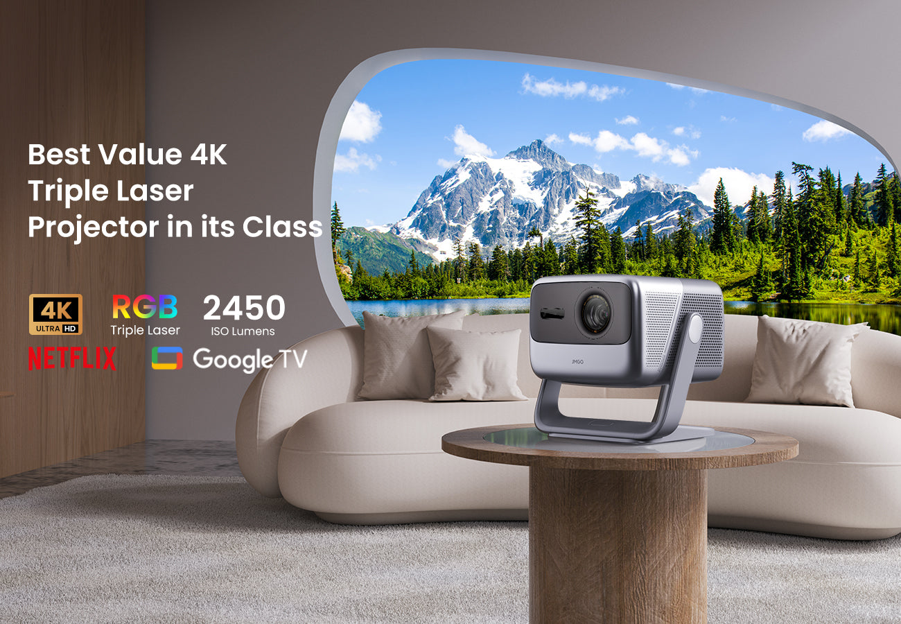 JMGO N1S Infinity Long Throw Triple-Laser 4K Google TV PONCORTOR 2450 ISO LUMENS