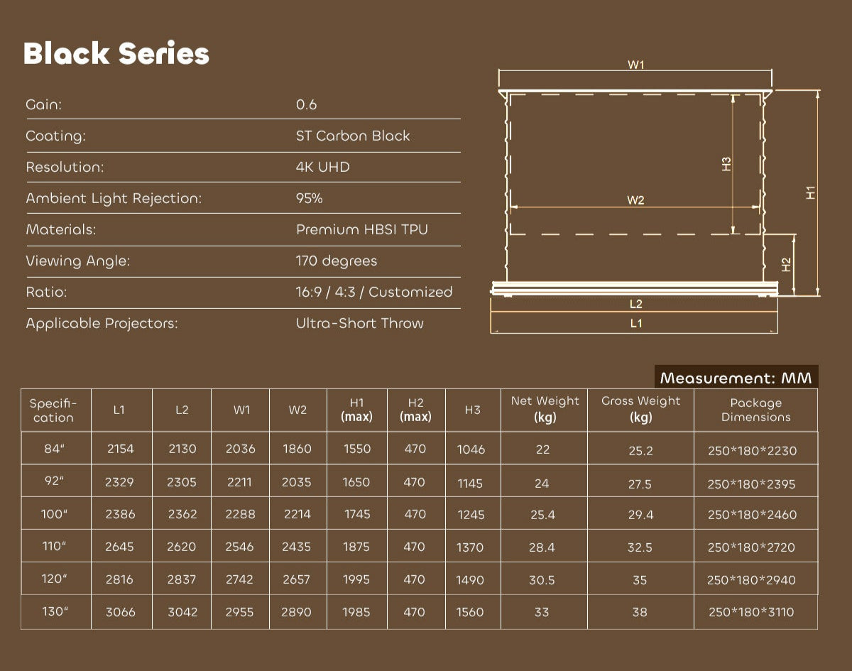 - Motorized Floor Rising Design: This screen features a convenient floor rising mechanism, allowing easy setup and storage with just the press of a button. It is perfect for those using a home theater projector 4K or a short throw projector 4K.
