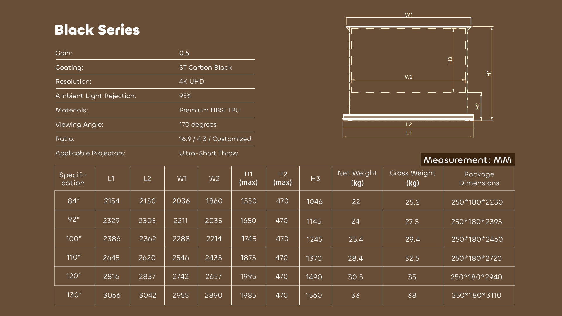 *To prevent image overflow beyond the screen area, the left and right edges of the screen fabric are slightly curved backward. This is a normal design feature and does not affect the screen’s functionality or image quality.