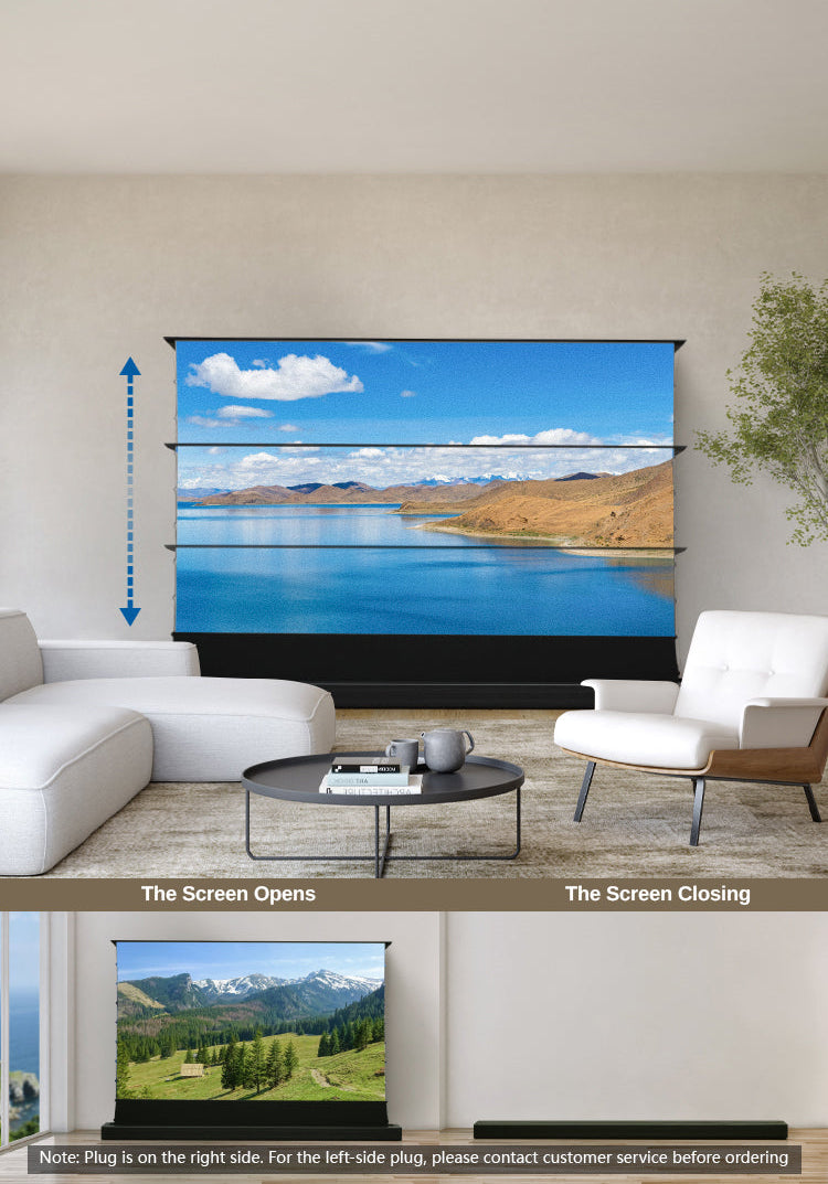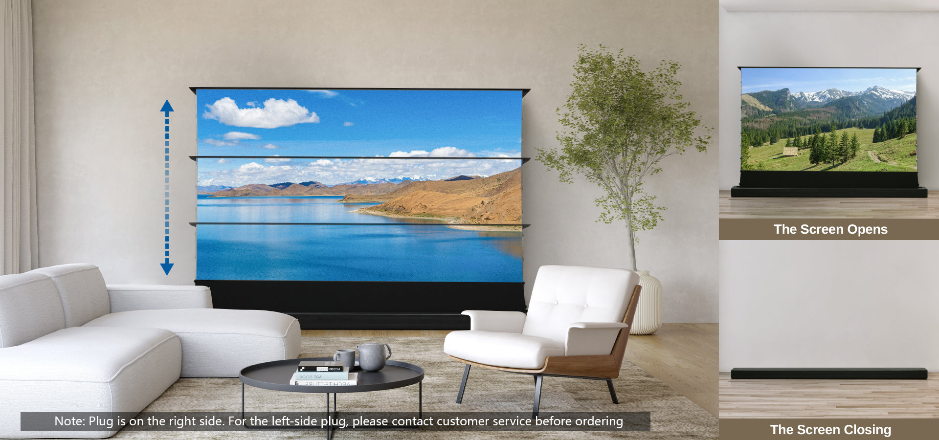 Experience the Black Series Motorized ALR UST Screen by NothingProjector: a floor-rising UST projector screen that disappears into your living space. Silently rising at a button’s touch, it transforms any room into a theater. Remote-controlled and auto-retracting, it occupies minimal space for maximum impact—redefining home cinema convenience.