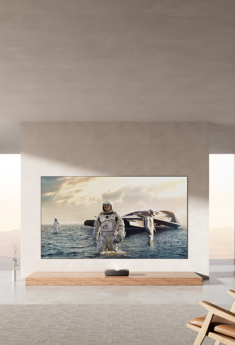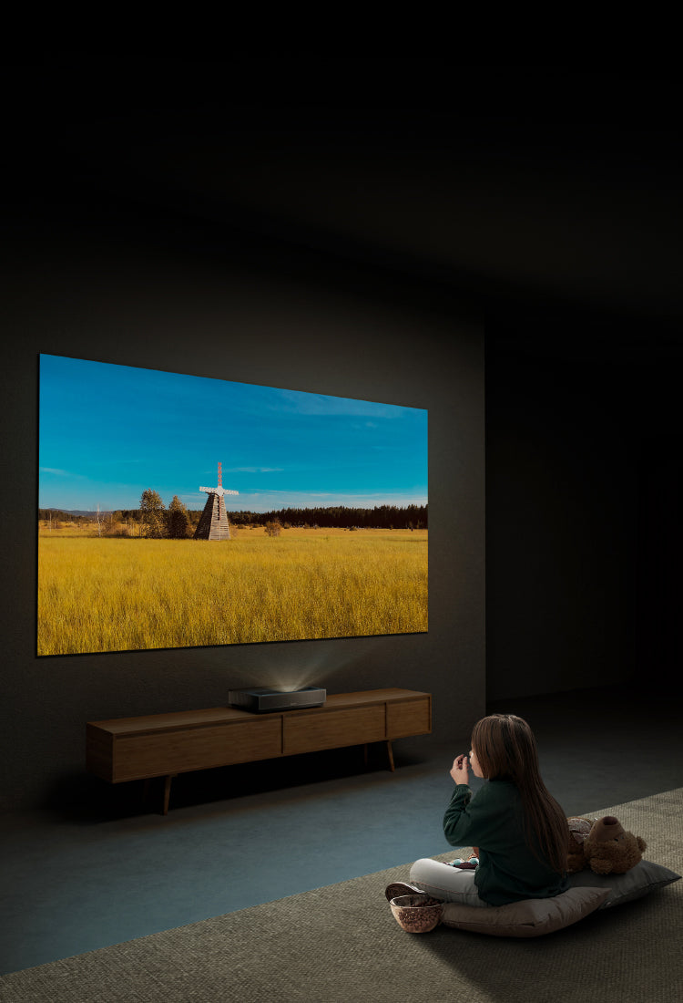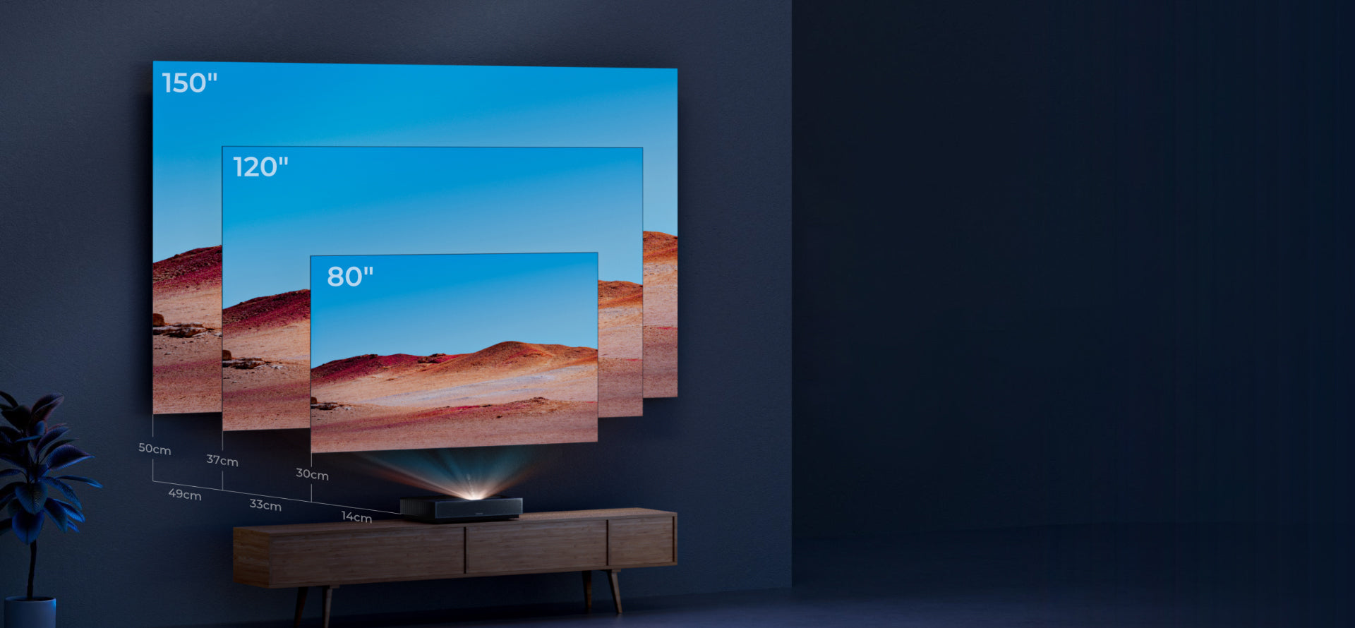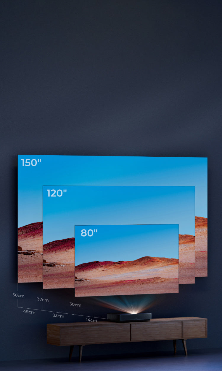 As a laser TV, Cinema Edge requires minimal space, sitting close to the wall. With a 0.23:1 throw ratio, it projects a 150' screen from just 49cm away,liberating your huge-screen viewing experience from space constraints.