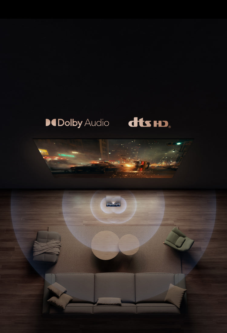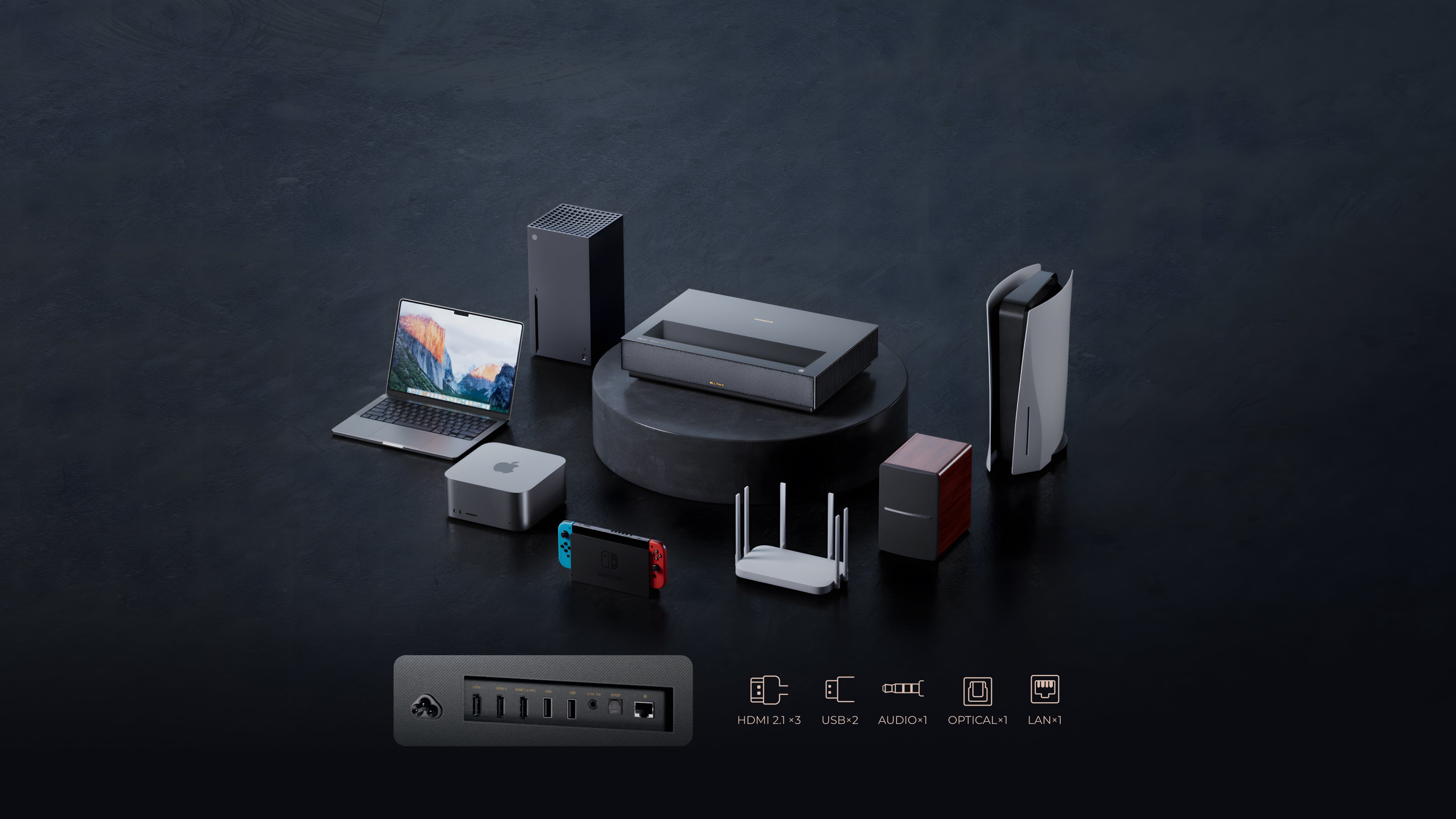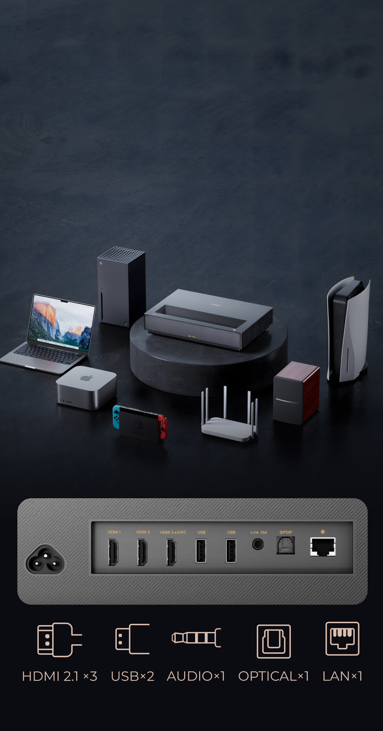 As a laser TV, Cinema Edge requires minimal space, sitting close to the wall. With a 0.23:1 throw ratio, it projects a 150' screen from just 49cm away,liberating your huge-screen viewing experience from space constraints.