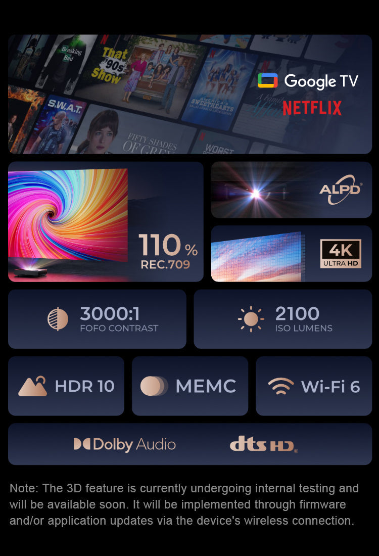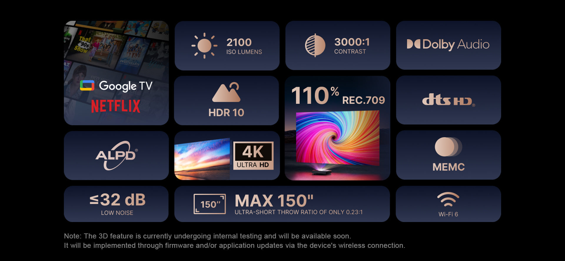 With the power of ALPD® technology, the Formovie Cinema Edge has a speckle-free display with high color accuracy, brightness, and contrast levels.