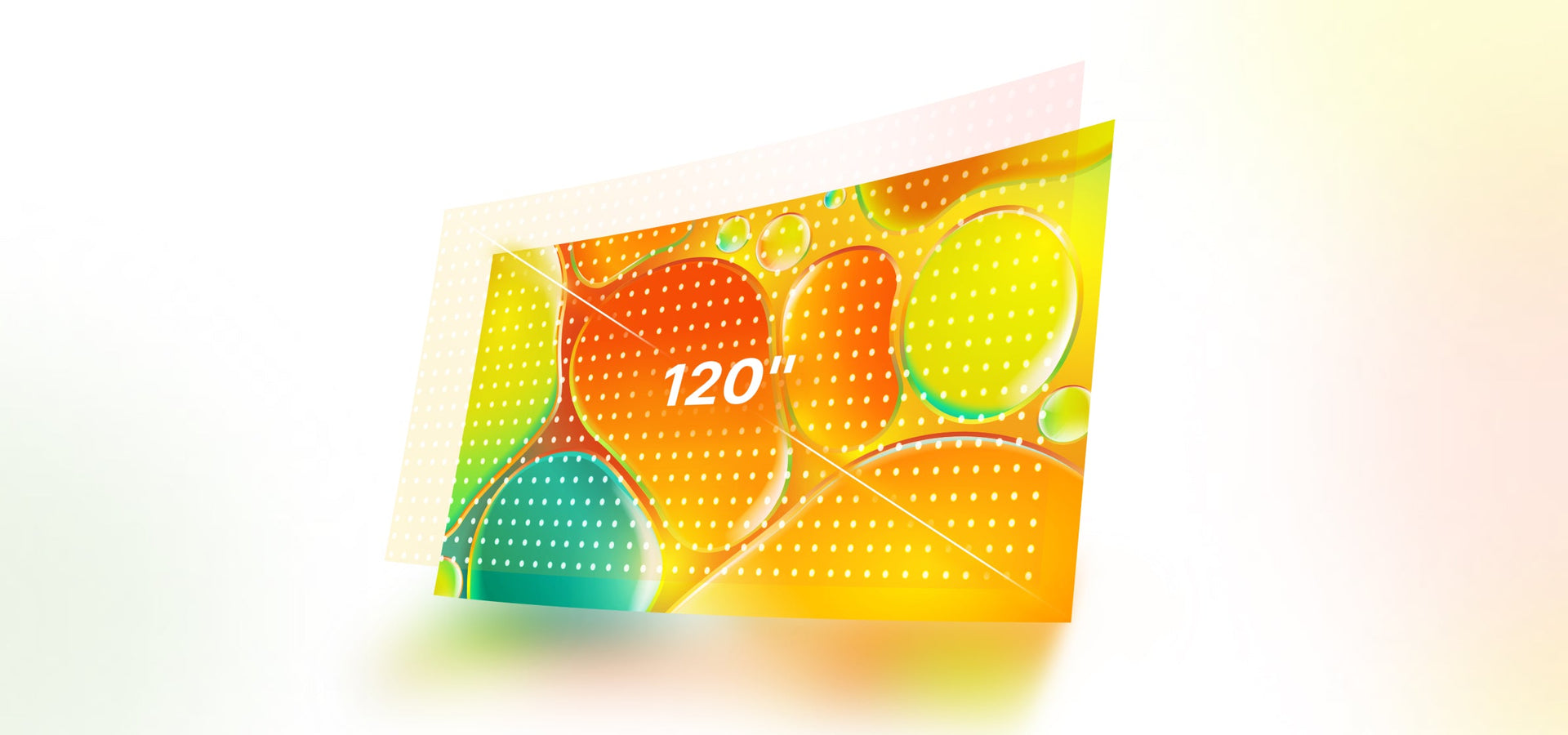 Adjust the screen size to fit your content and enjoy a 40-inch, intimate display, or a fully immersive 120-inch home theater.