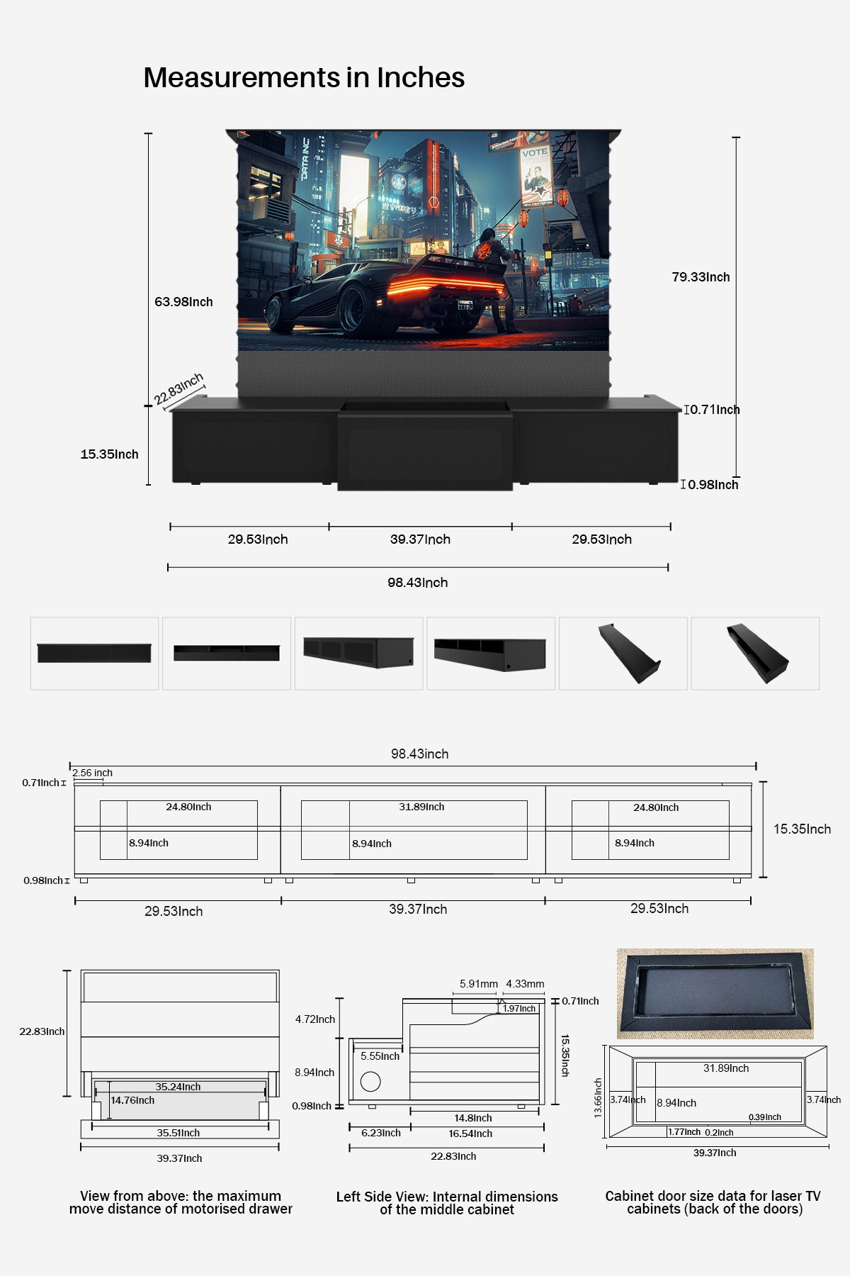 Motorized Laser TV Cabinet with Quiet 89.5cm Storage Drawer & 30kg Projector Lift - 2-Year Warranty