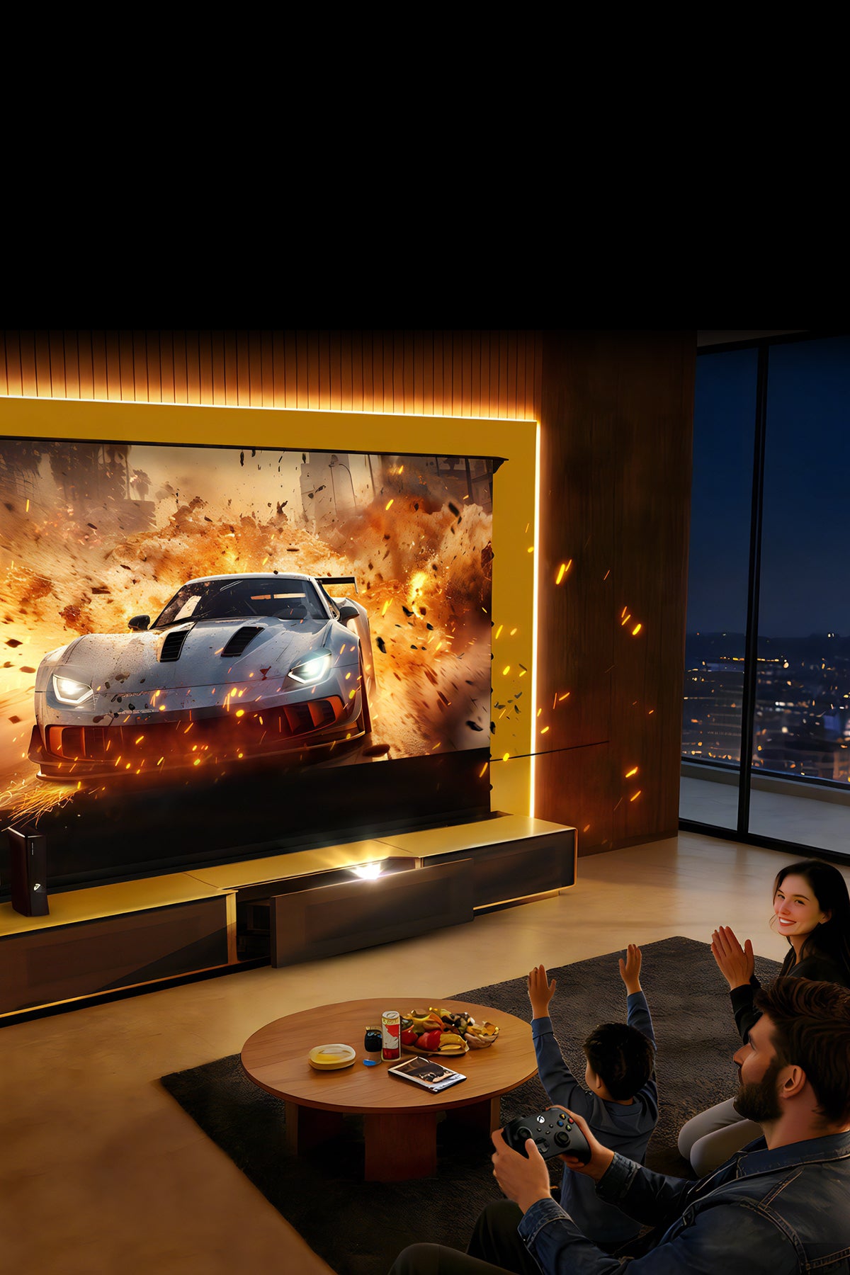 Experience the immersive sensation of being part of the action with an expansive projection, allowing you to indulge in a luxurious feast for the senses.