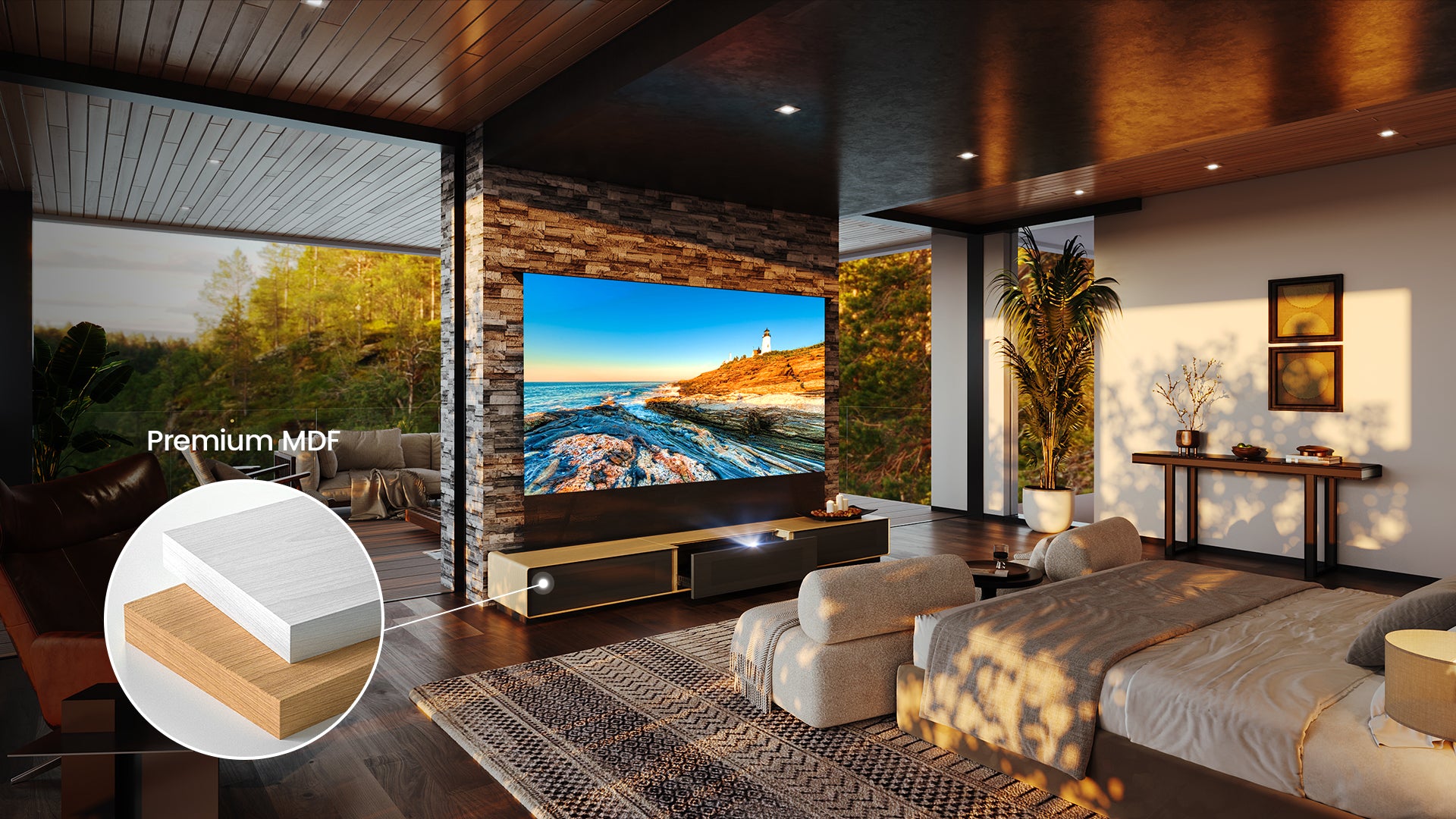 Constructed from eco-certified high-density board, this laser tv cabinet is built to resist moisture, corrosion, and daily wear, ensuring a safe and sturdy foundation for years to come.