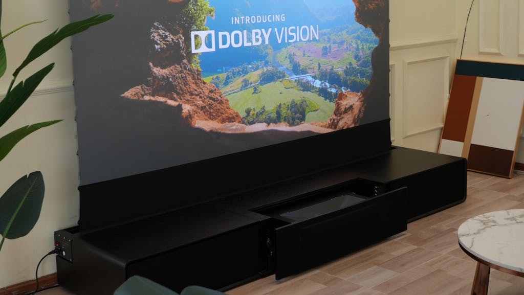 This is GENIUS! // 120" SHORE LASER TV CABINET & SCREEN (for your home theater!)