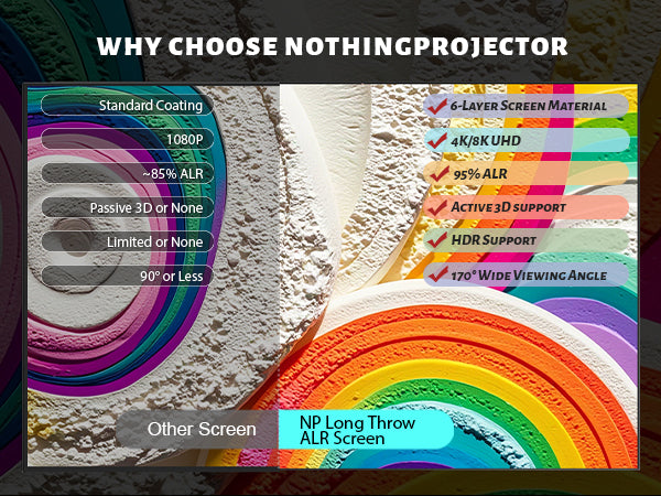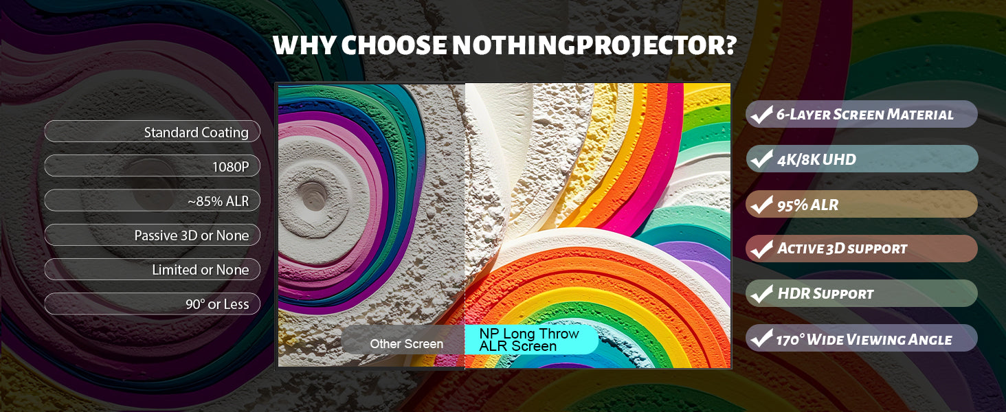 4. 4K/HDR on a Budget:A $1,500 projector can rival a $3,000+ 85" TV in image quality. ALR screens enhance contrast even in lit rooms.