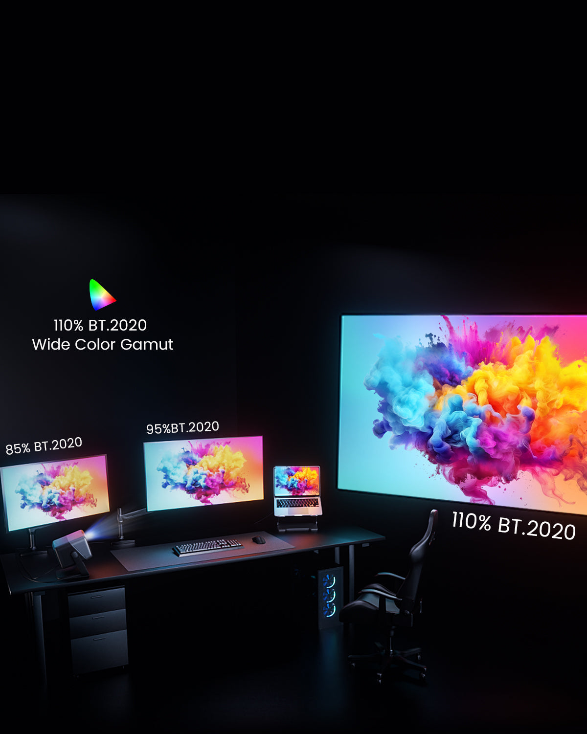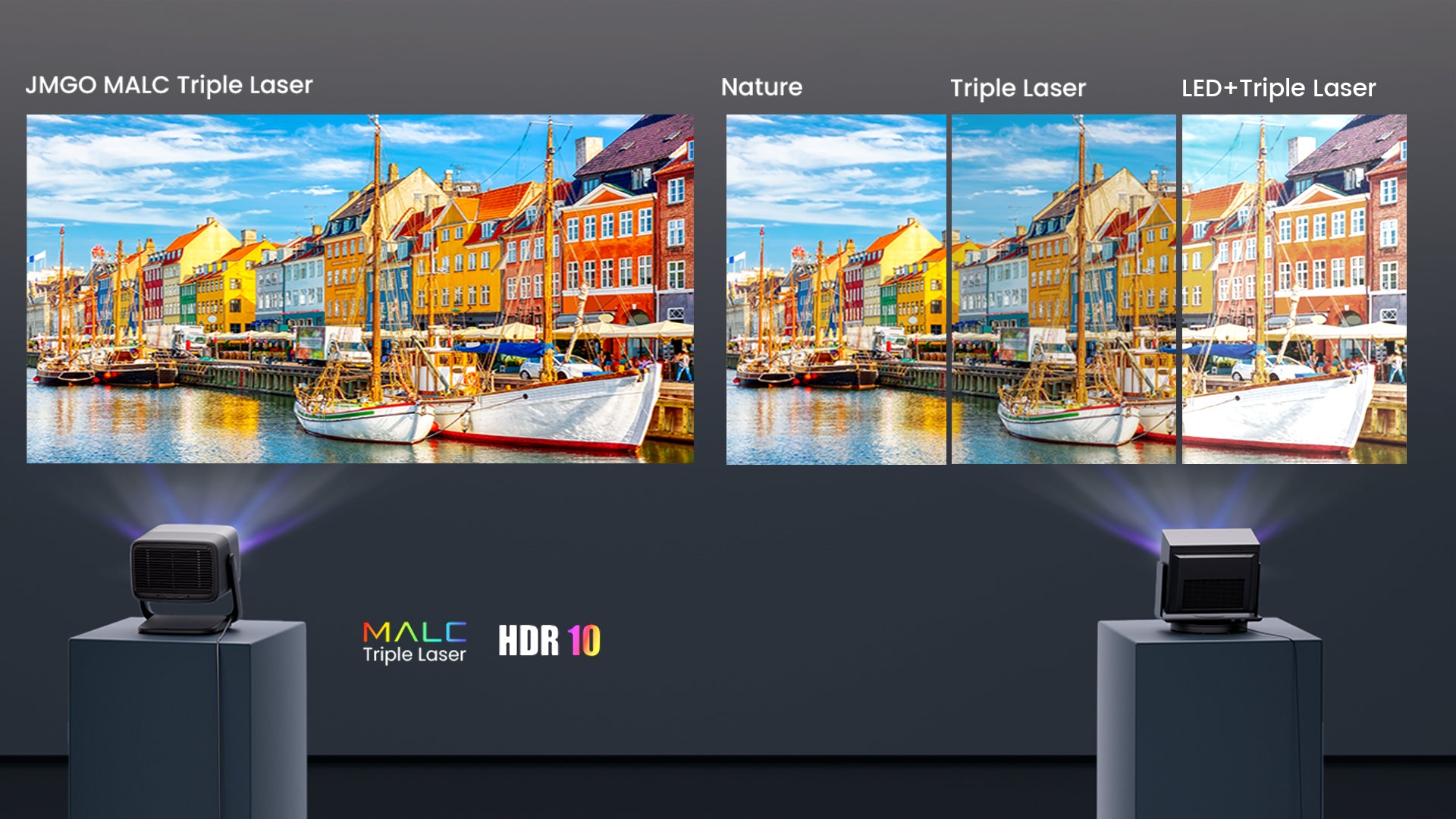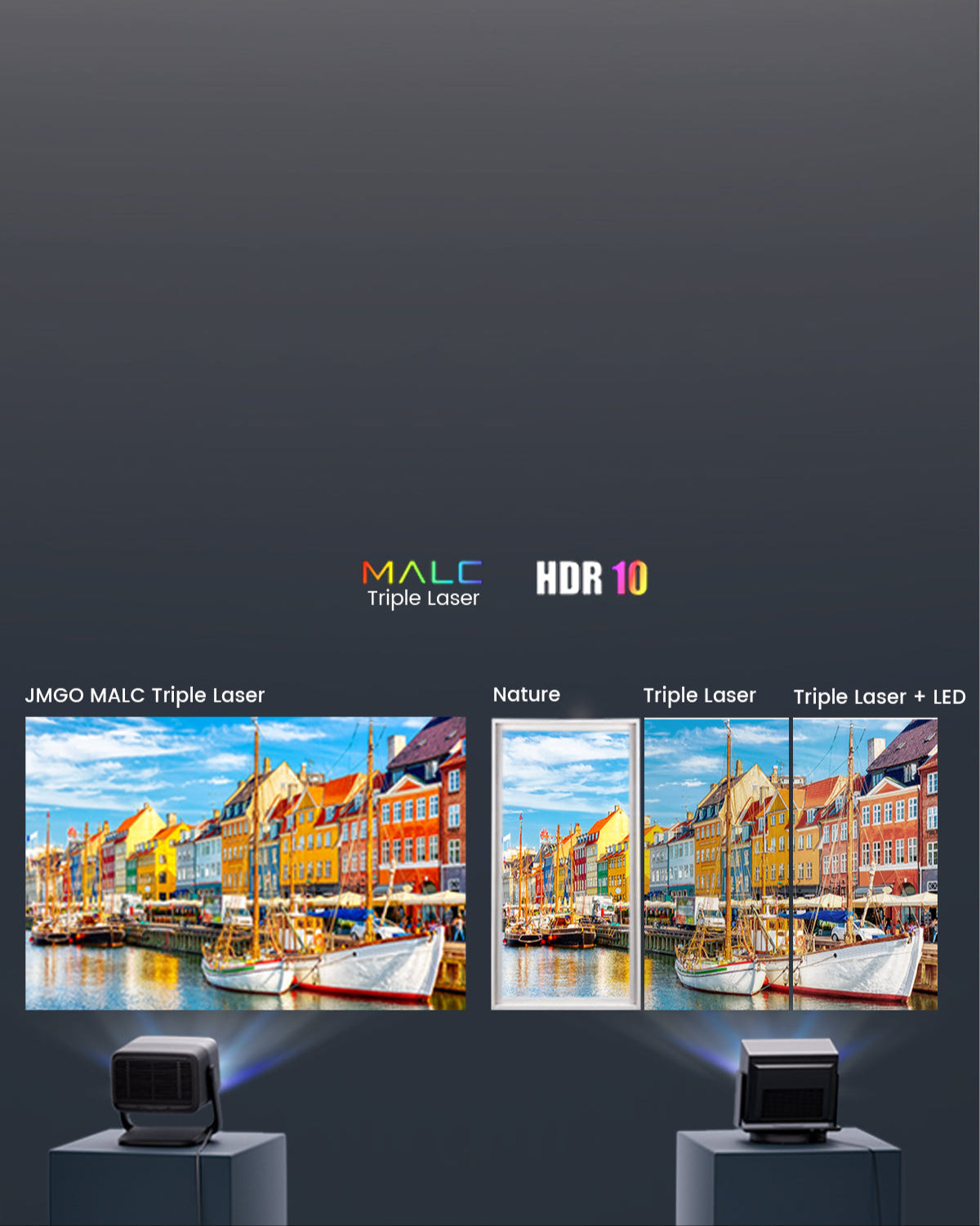 JMGO skjávarpinn er með háþróaðri MALC™ 2.0 þrefaldri lita leysigeisla sem dregur úr augnálagi með mýkra, náttúrulegra ljósi. Hann lágmarkar útsetningu fyrir bláu ljósi og tryggir líflega liti og skarpar myndir, sem gerir hann tilvalinn fyrir fjölskyldur og fagfólk sem...
