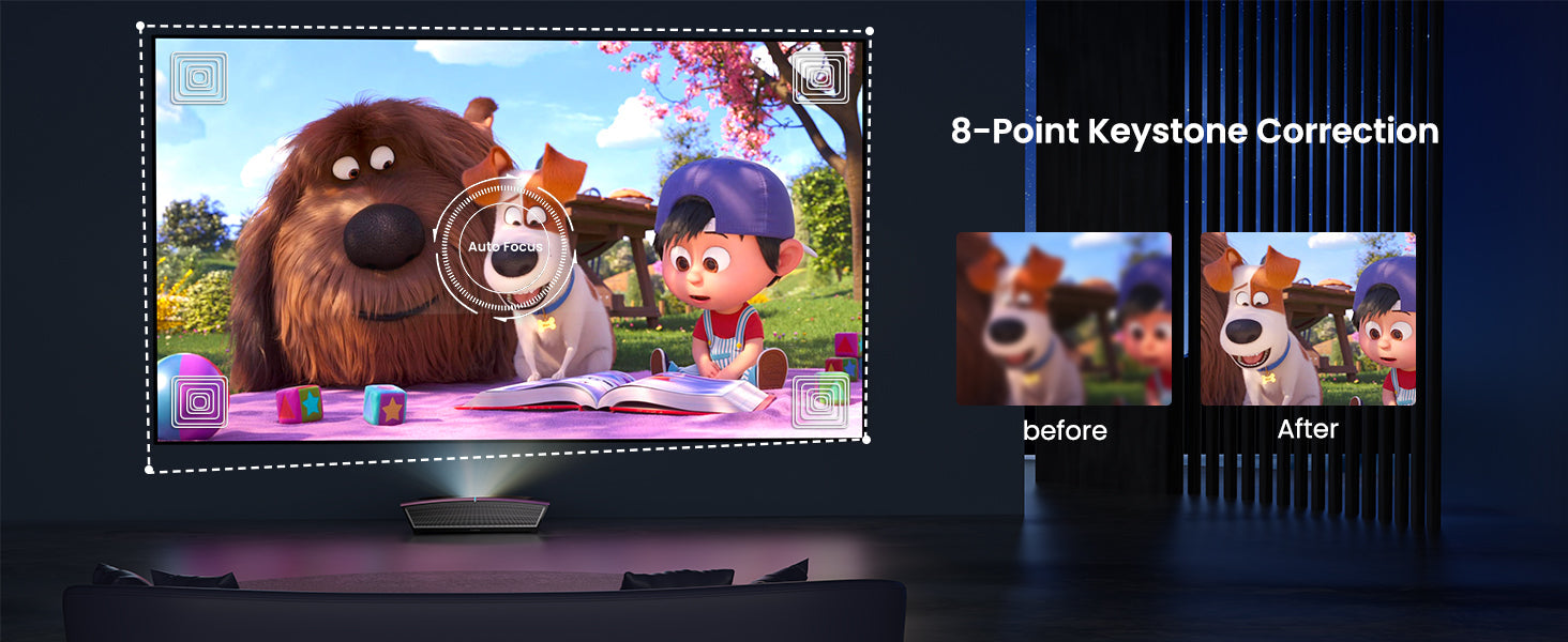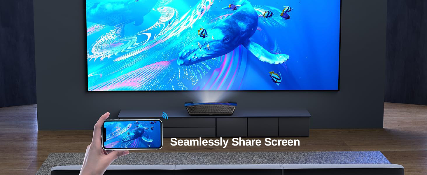 - 【Ultrahøy lysstyrke】CASIRIS har revolusjonert grensene for laserprojeksjon og oppnådd en imponerende lysstyrke på 3000 ANSI-lumen. Dette gjennombruddet sikrer levende og krystallklare bilder, selv uten blendingsgardiner eller persienner. Kombinert med innebygde bevegelsessensorer justerer den lysstyrken automatisk når noen nærmer seg for å forhindre øyeskader.