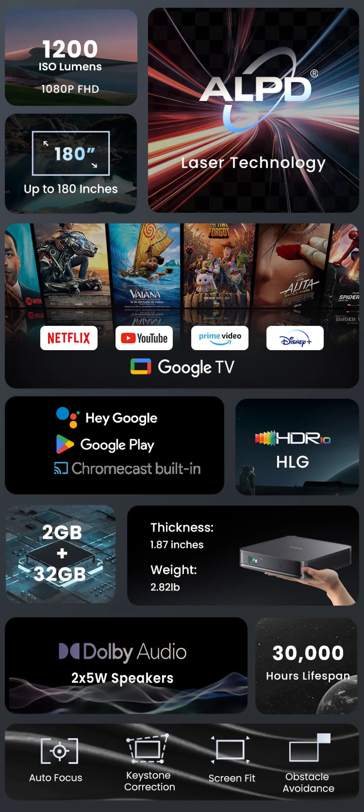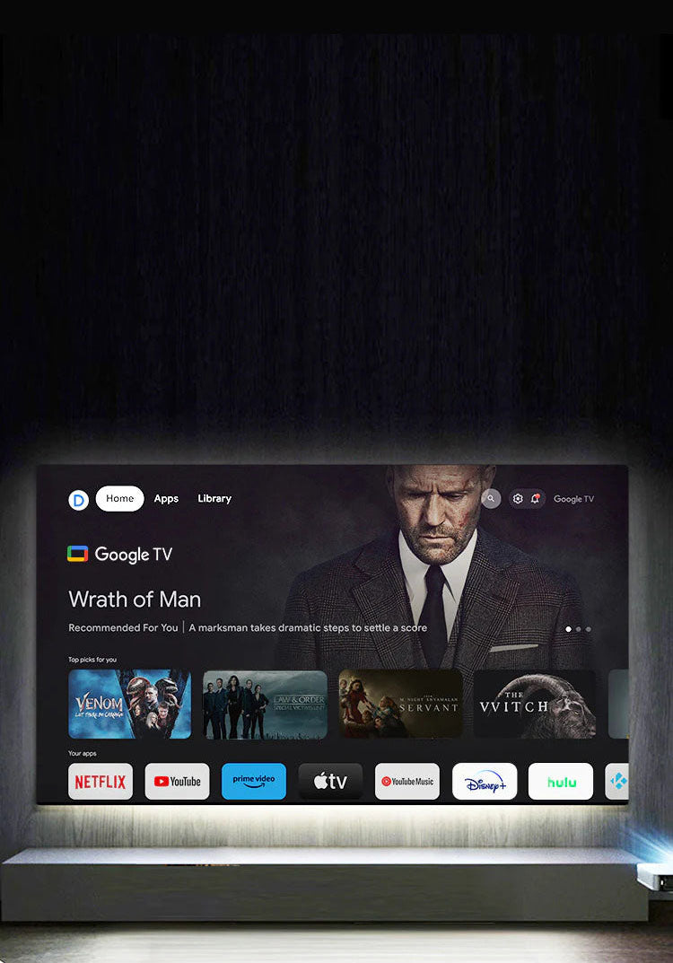 Dangbei Atom First Google TV ™ Laser Projector 1200 ISO Lumens 1080p Alpd® Dolby Audio