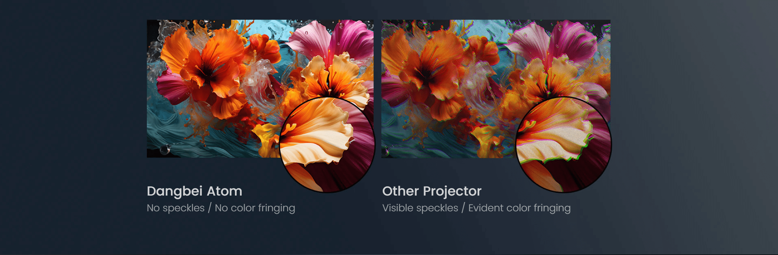 Atom er bare 4,8 cm tykk og er kanskje den lyseste laserprojektoren i sin form, med en lysstyrke på 1200 ISO-lumen i en overraskende elegant og liten pakke. Som den tynneste modellen hittil som har oppnådd en så levende lysstyrke, åpner Atom nye dører for altoppslukende visning i ethvert rom.