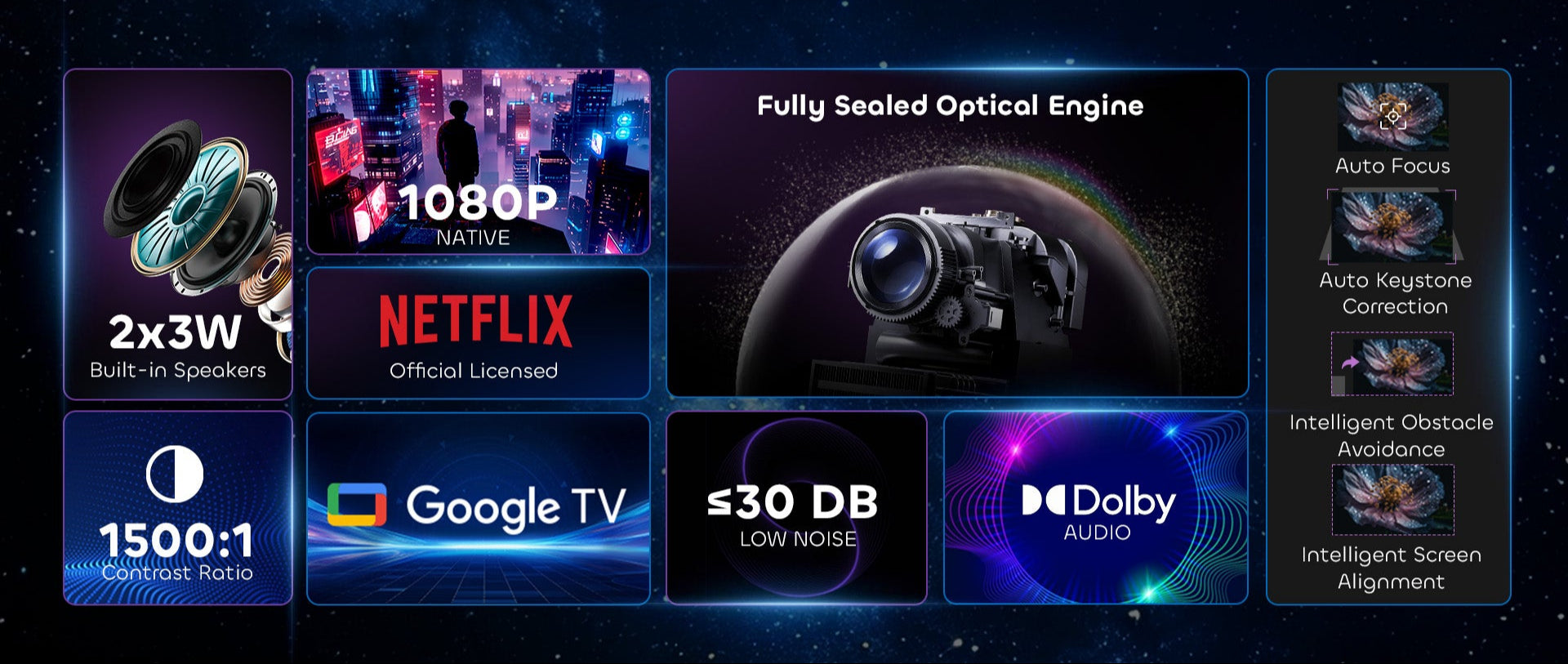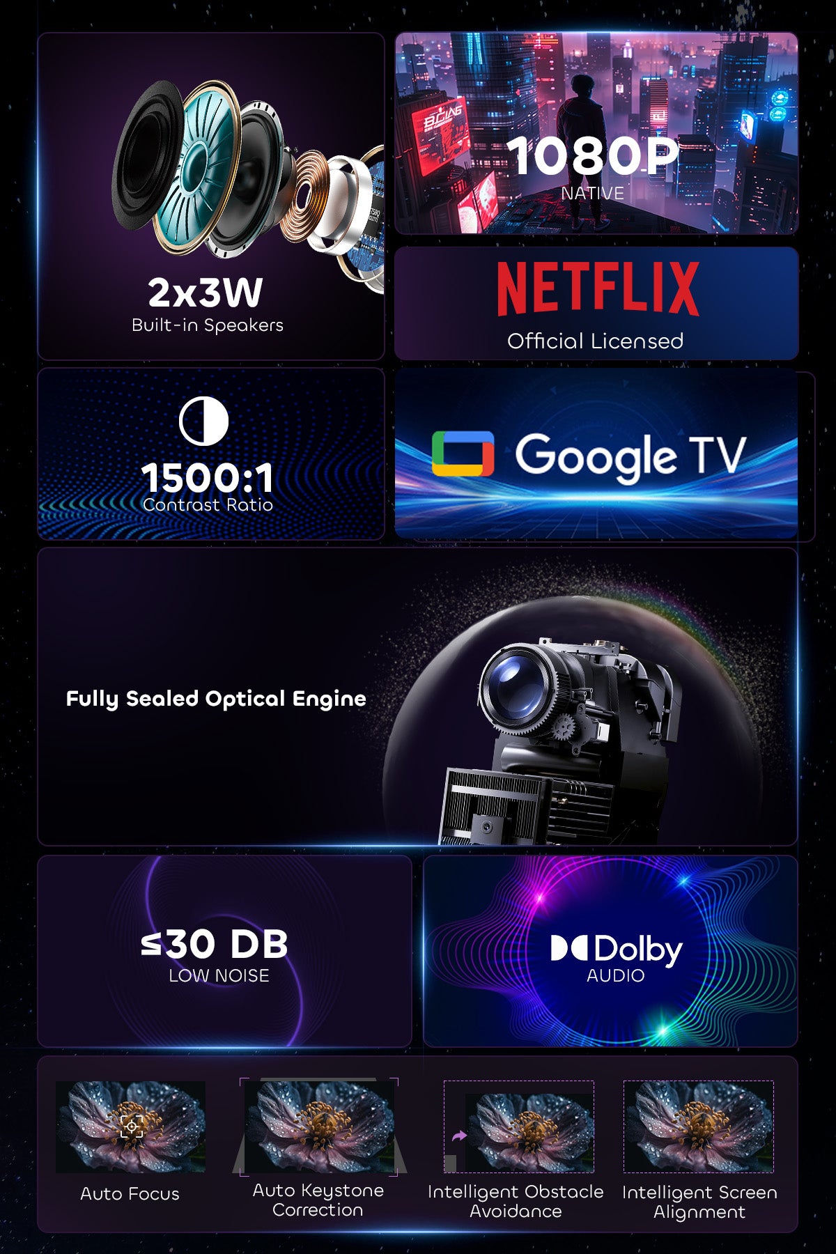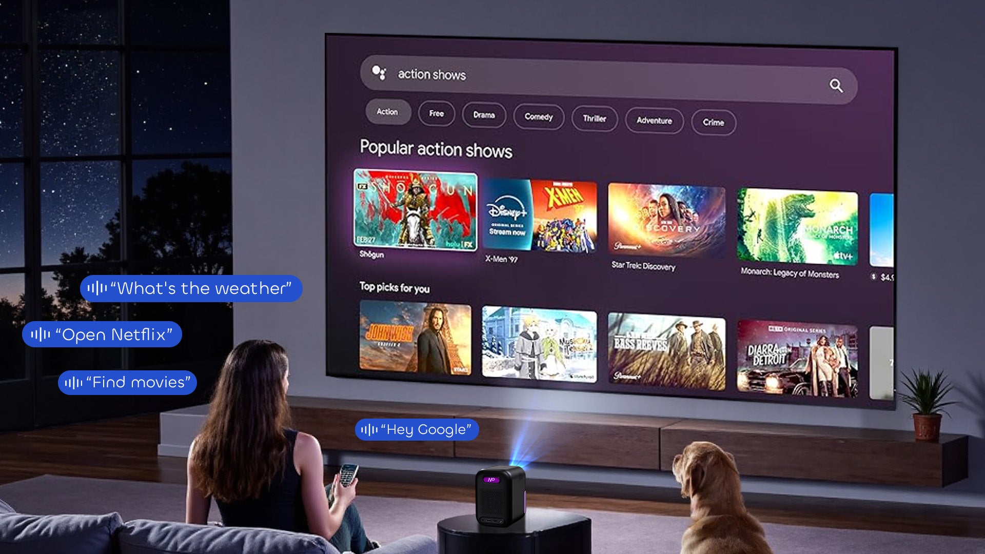 【Google TV Smart Projektor】NothingProjector One Smart er din alt-i-ett smartprojektor, drevet av Google TV med innebygd Netflix-støtte. Strøm over 10 000 apper direkte – uten dongler, uten forsinkelser. Fra filmer og spill til YouTube-kaninhull, alt er bare et trykk unna.