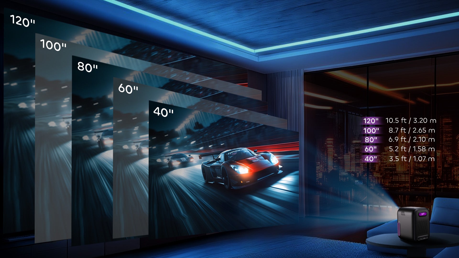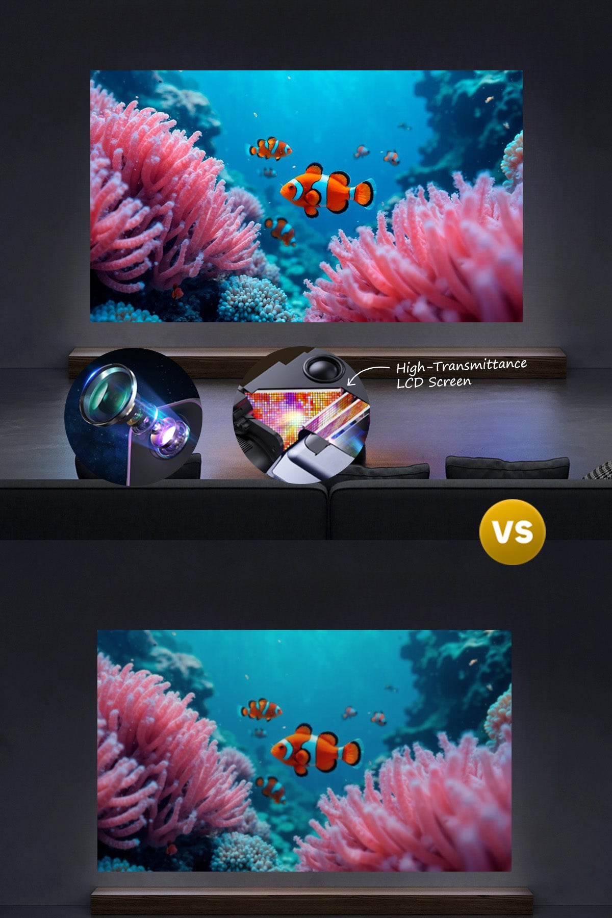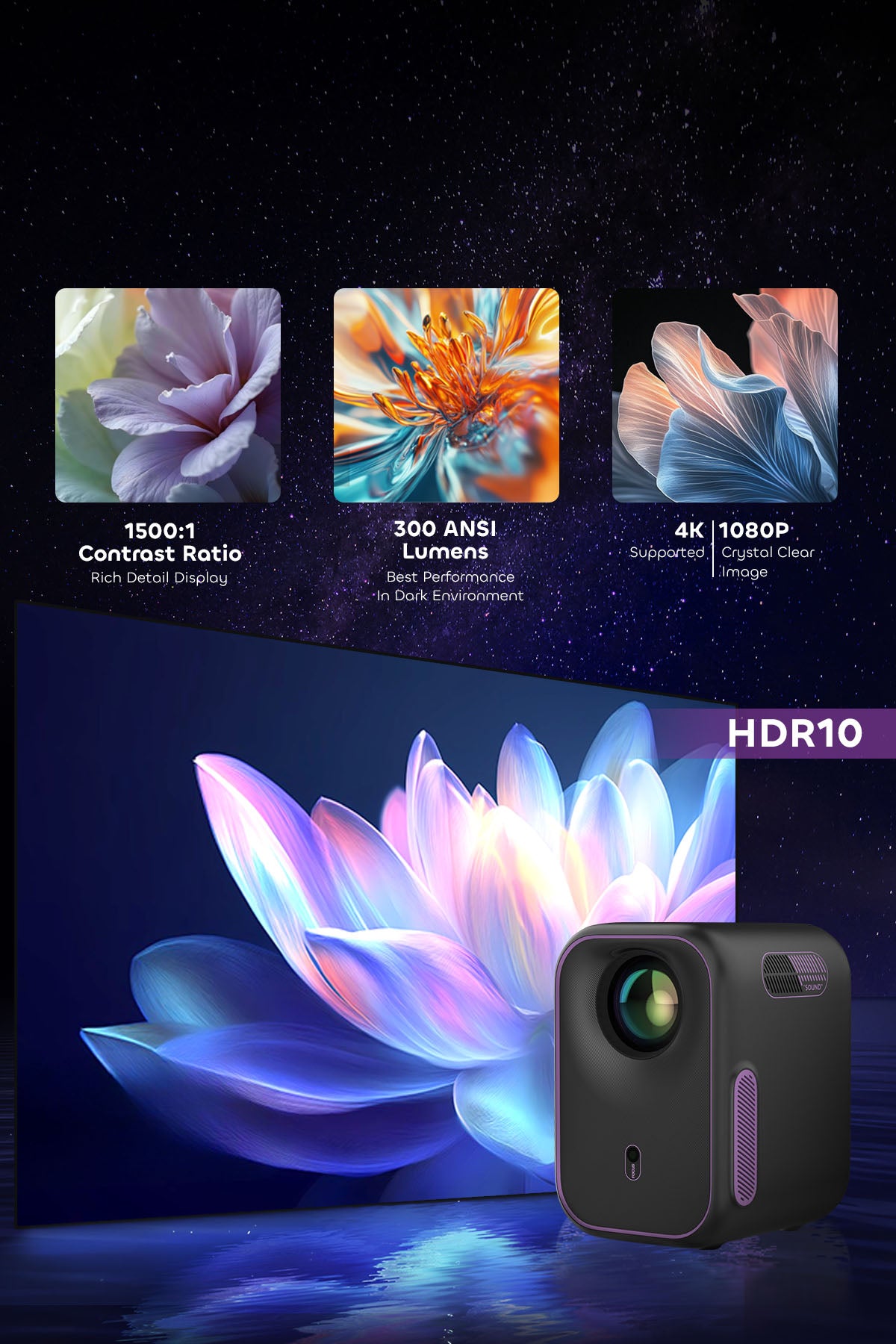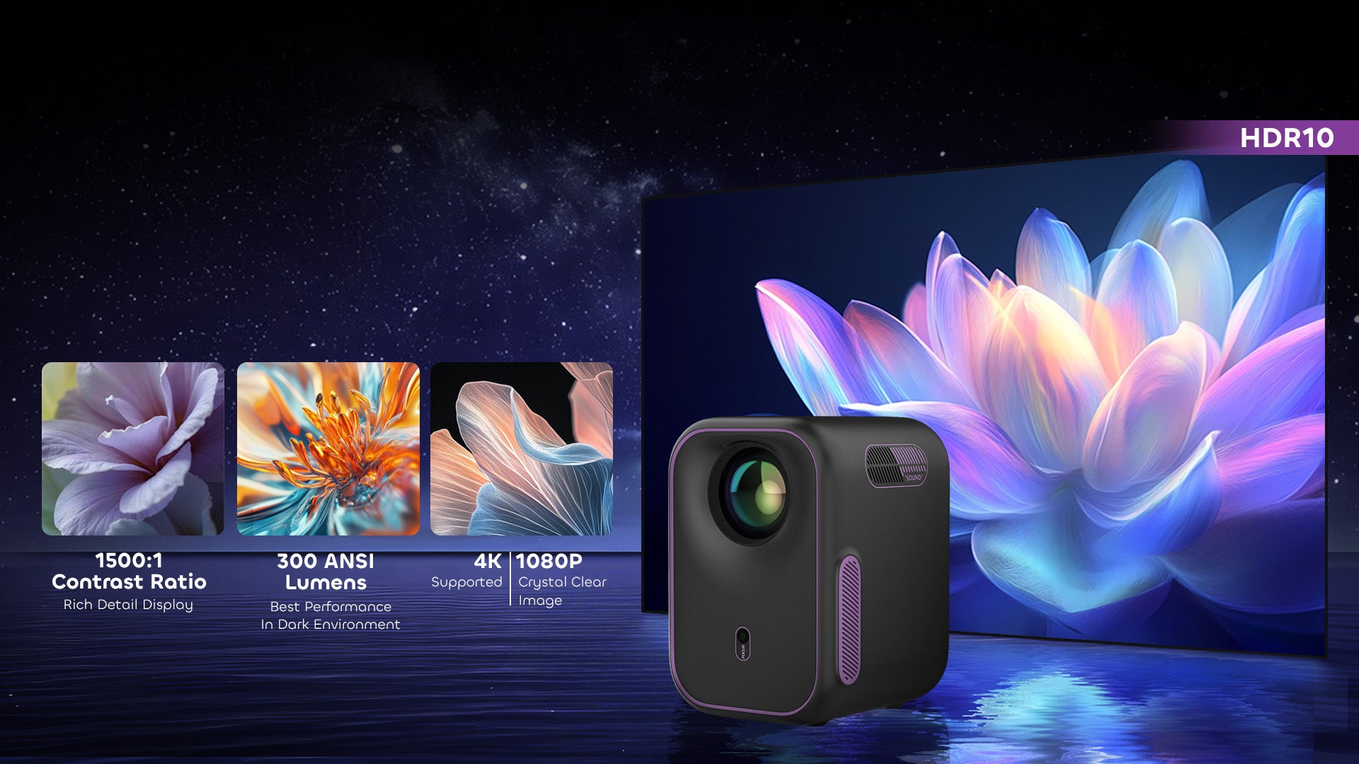 【Skarpe 1080P-bilder, skarpt bilde】Enten du projiserer en koselig 40-tommers eller en imponerende 120-tommers skjerm, sikrer lysstyrken på 300 ISO-lumen og Full HD-oppløsningen et klart og skarpt bilde i de fleste innendørsmiljøer. Filmkveld? Spilløkt? Presentasjon? Du er dekket.