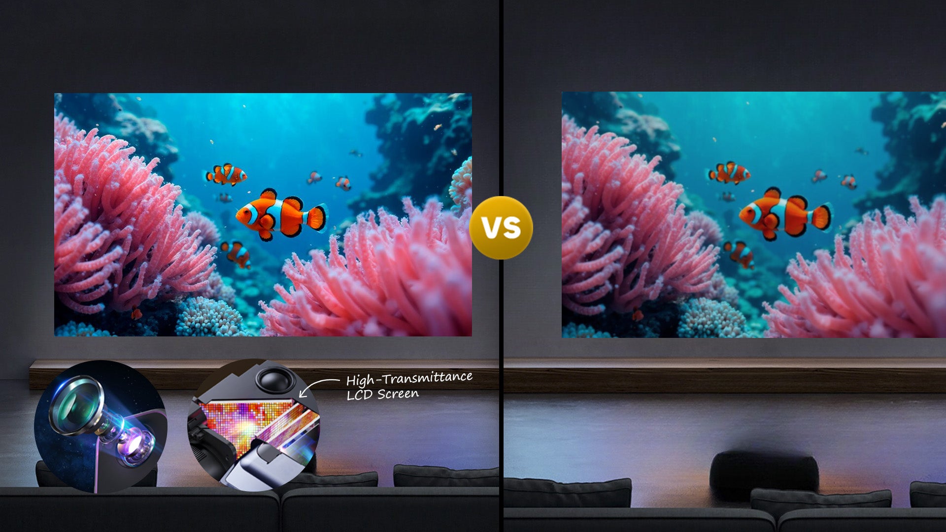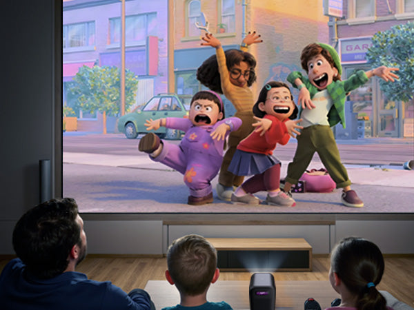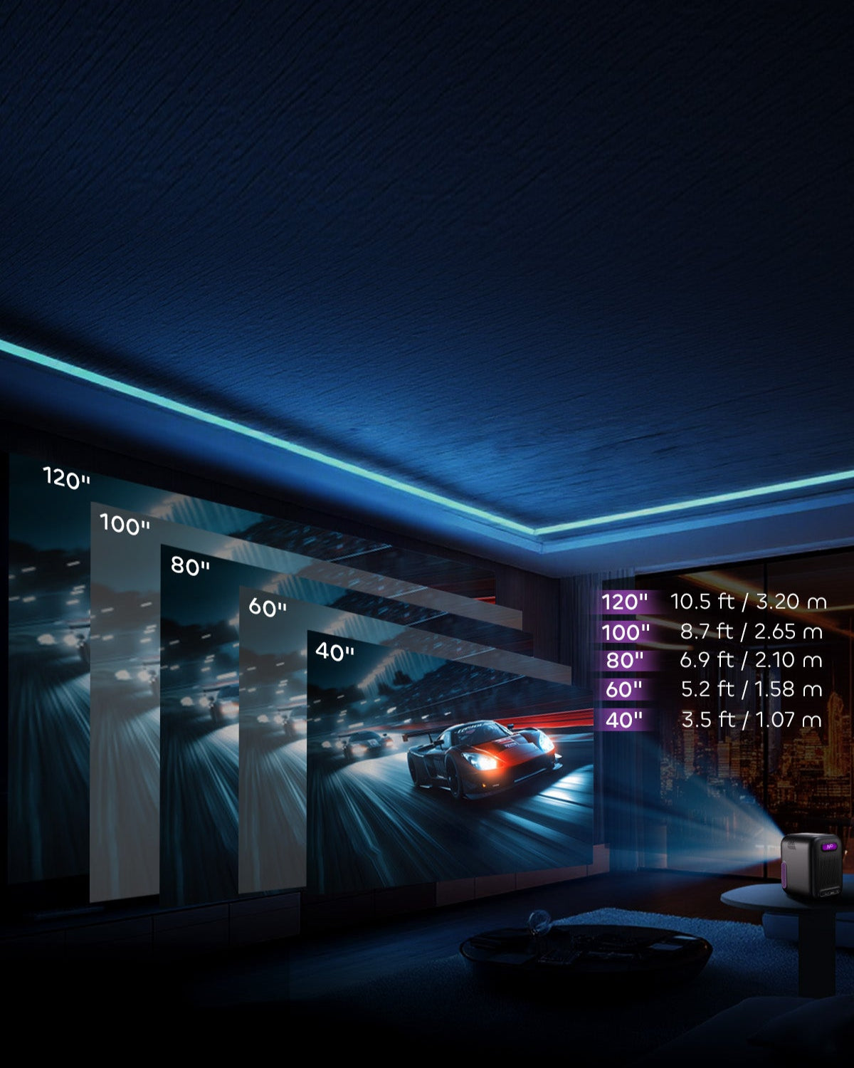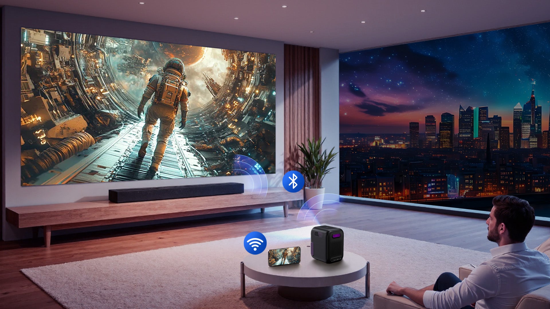 【Skarpe 1080P-bilder, skarpt bilde】Enten du projiserer en koselig 40-tommers eller en imponerende 120-tommers skjerm, sikrer lysstyrken på 300 ISO-lumen og Full HD-oppløsningen et klart og skarpt bilde i de fleste innendørsmiljøer. Filmkveld? Spilløkt? Presentasjon? Du er dekket.