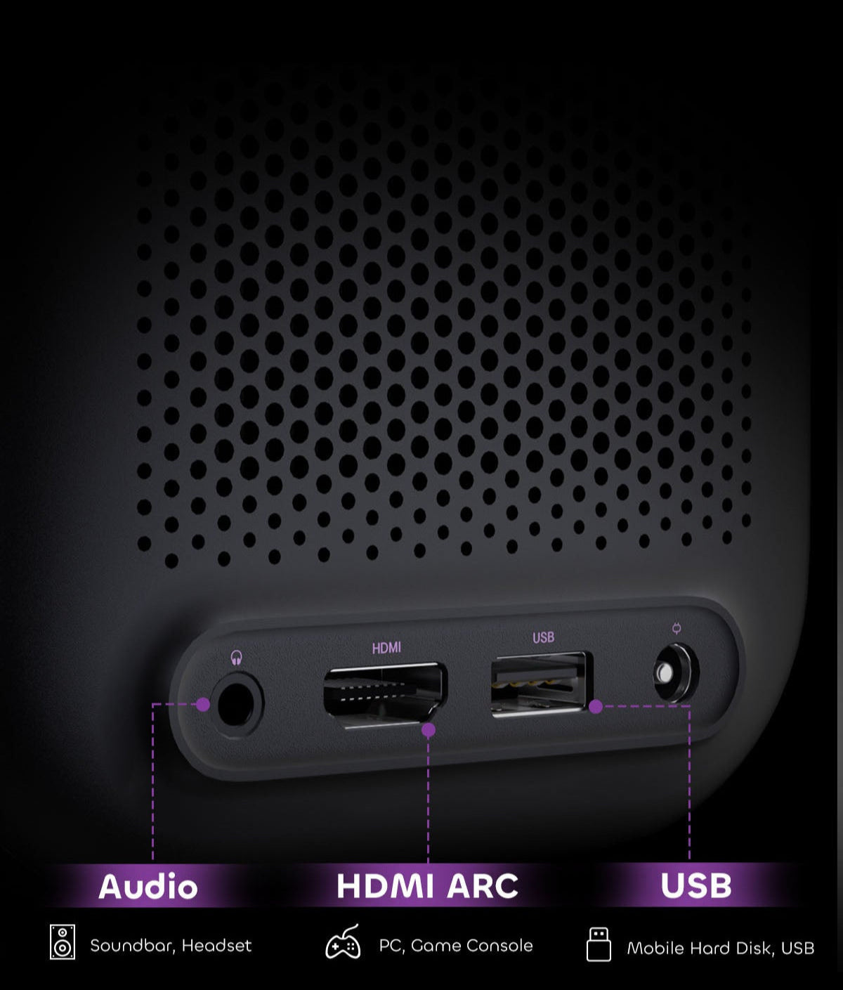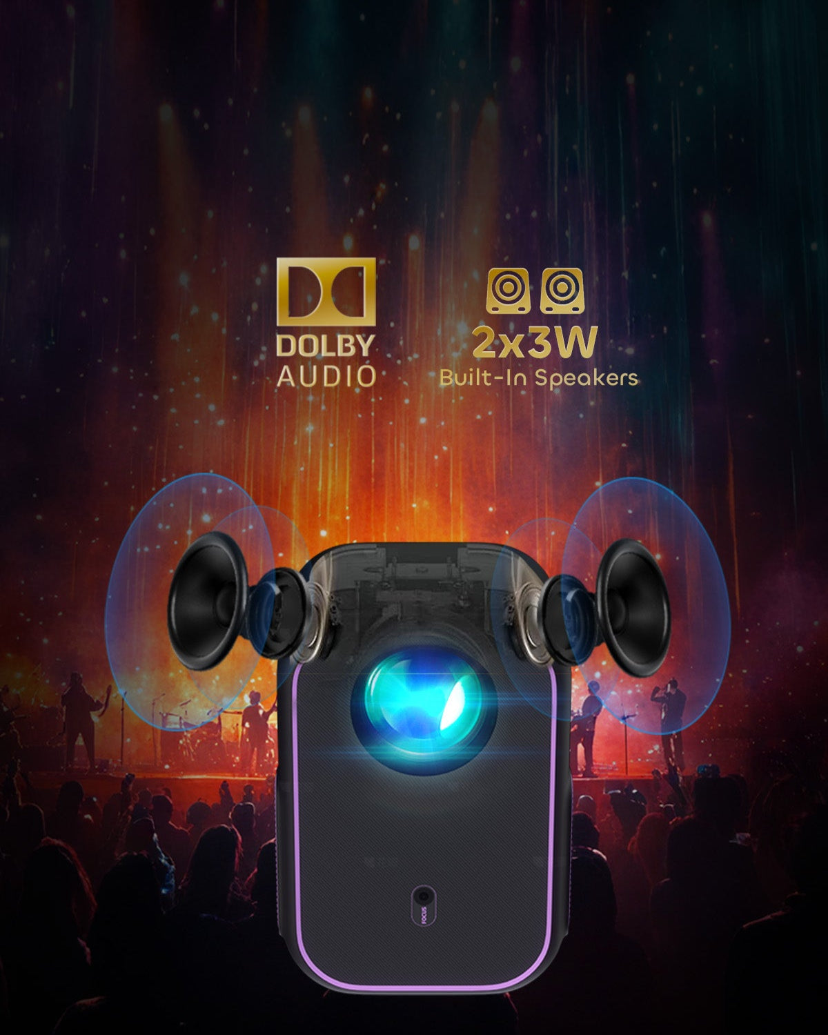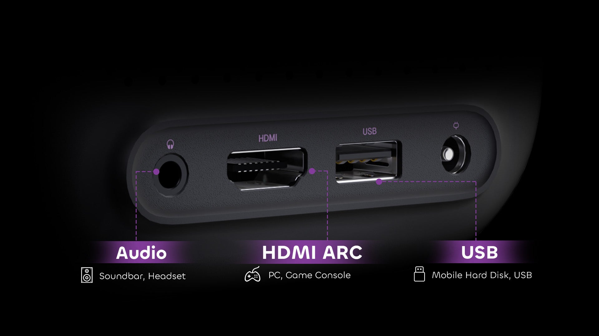 【Innebygd Dolby Audio】Innebygde doble 3W-høyttalere med Dolby Audio-støtte gir et rikt og altoppslukende lydbilde – ingen lydplanke nødvendig. Enten det er dialog, musikk eller eksplosjoner, vil du høre hver eneste detalj med klarhet og dybde.