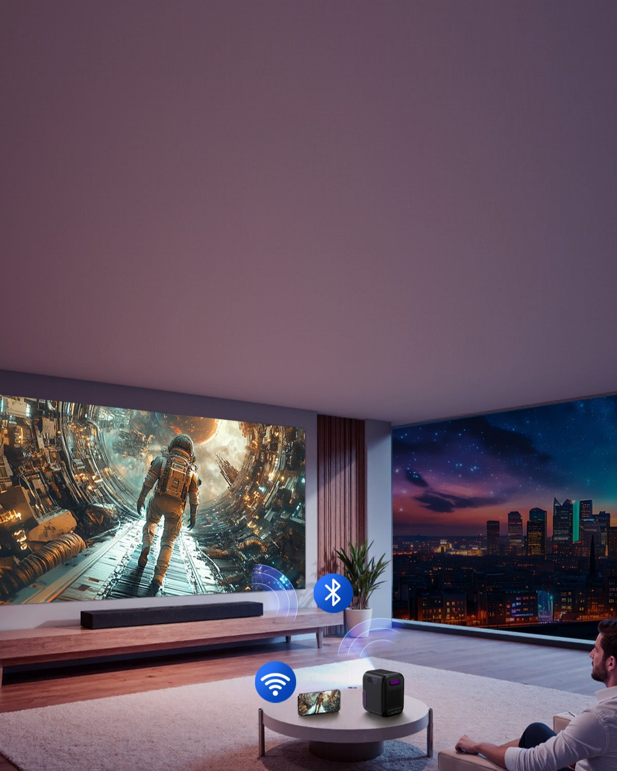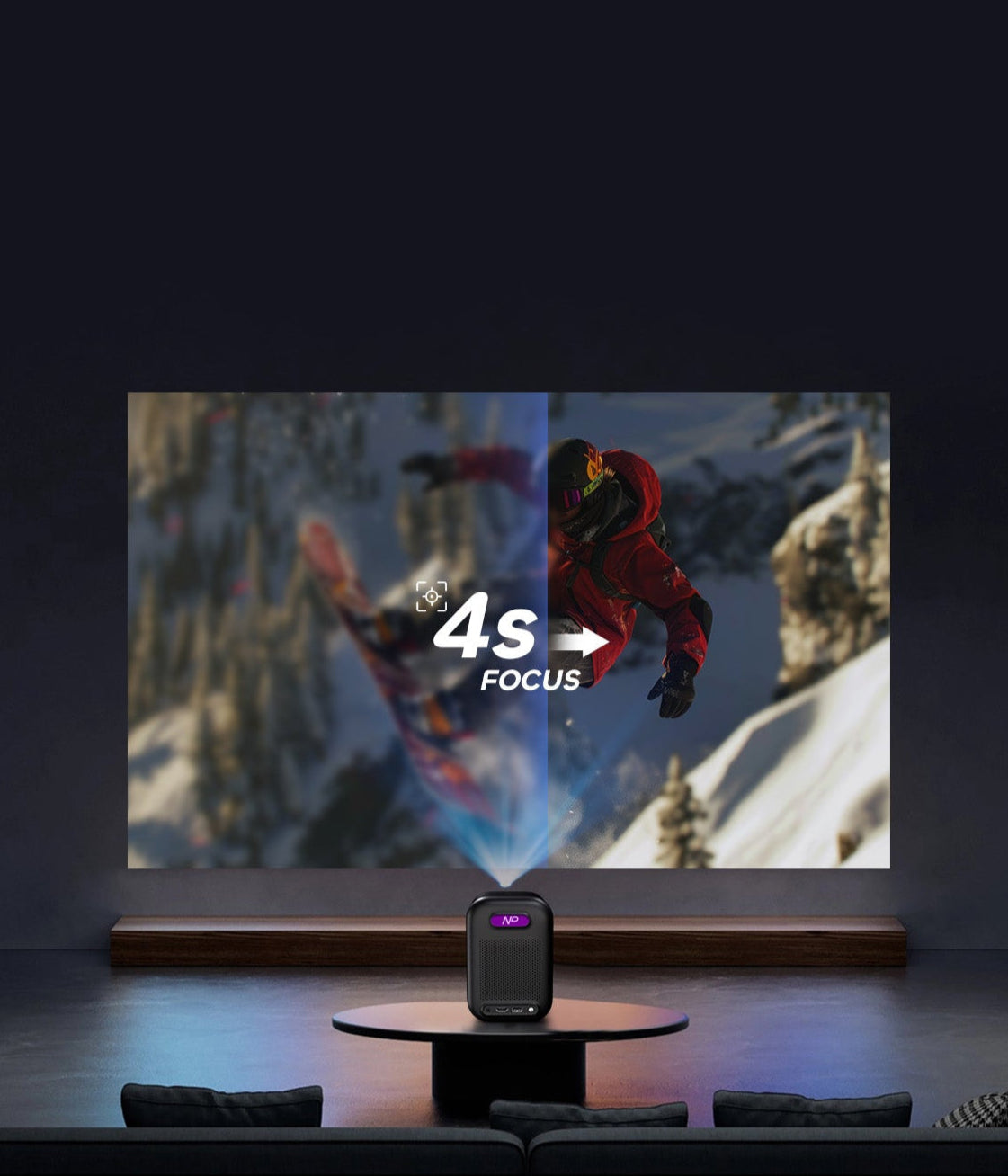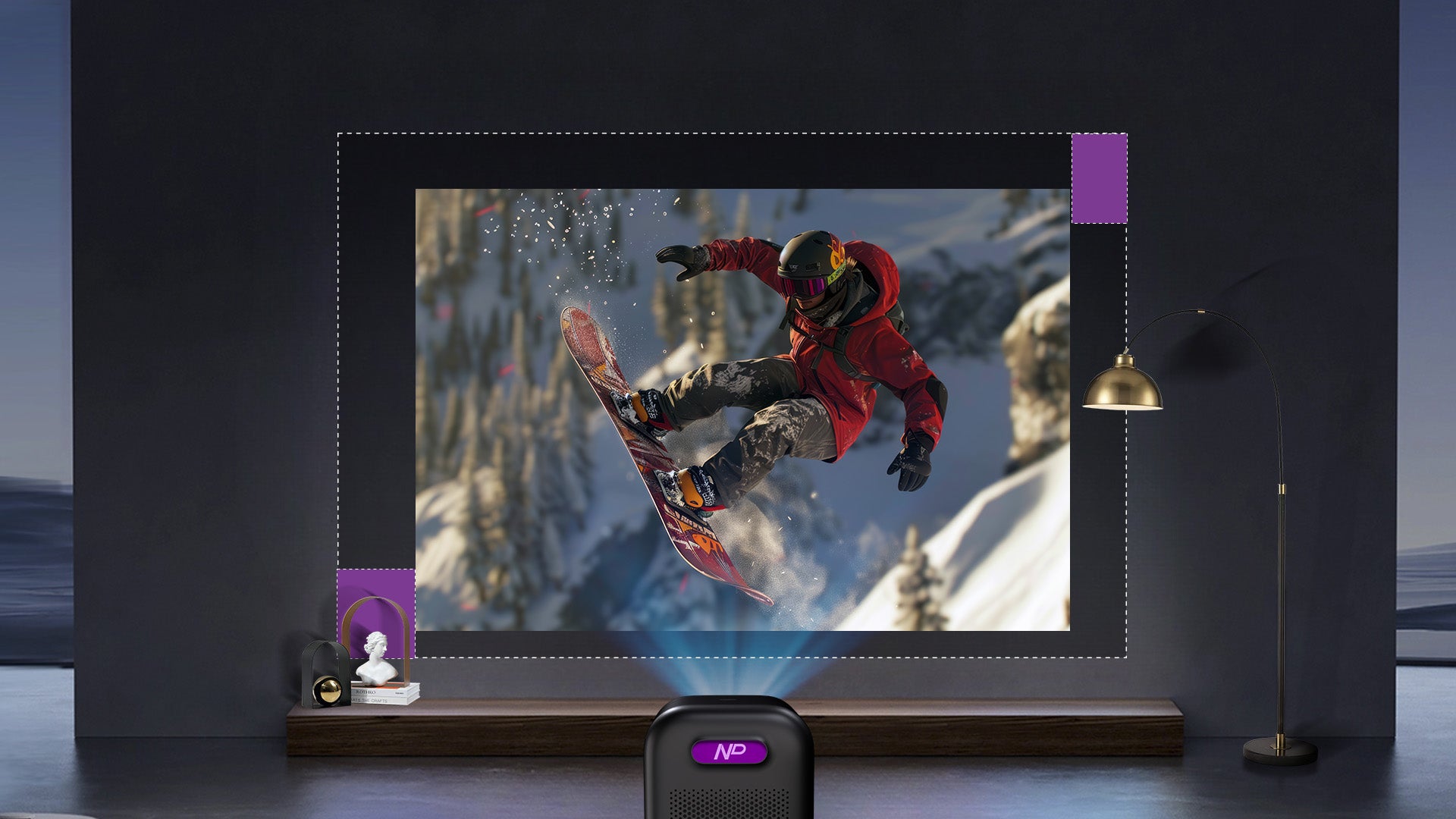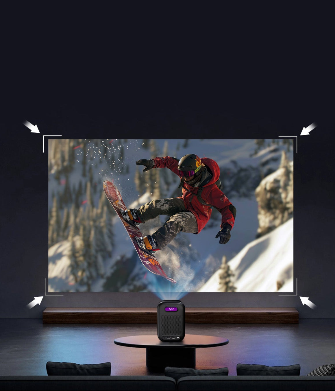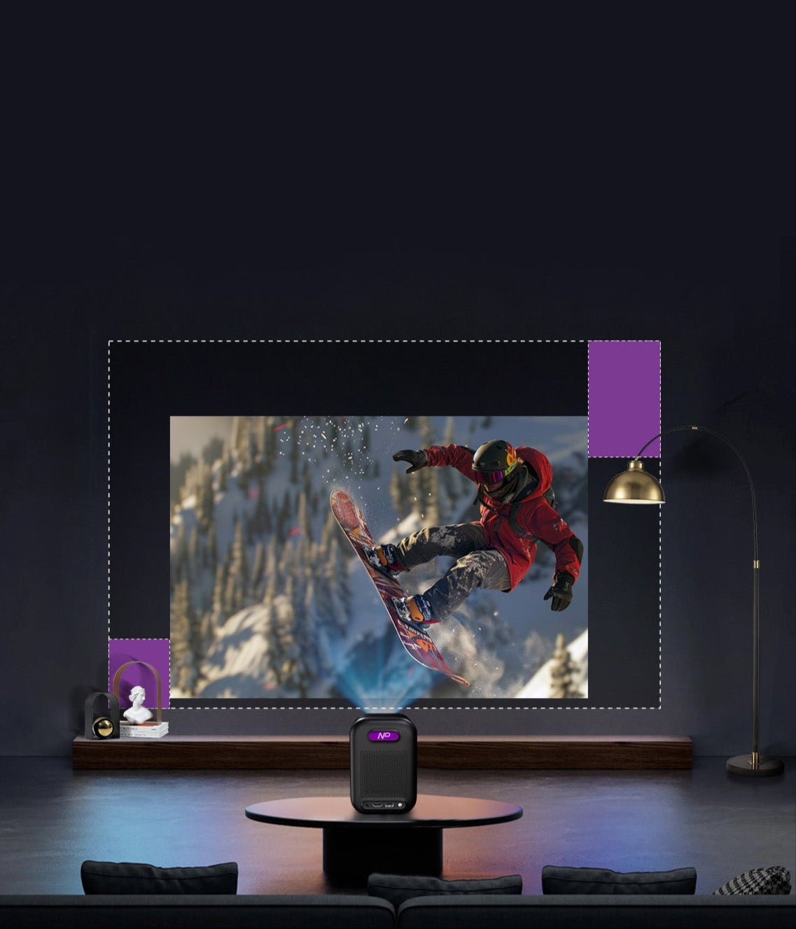 【Intelligent justeringssystem】Glem kjedelige justeringer. Med sitt intelligente justeringssystem håndterer denne projektoren autofokus, keystone-korrigering, unngåelse av hindringer og skjermjustering – alt automatisk. Sett den ned, slå den på, og den perfeksjonerer bildet for deg.