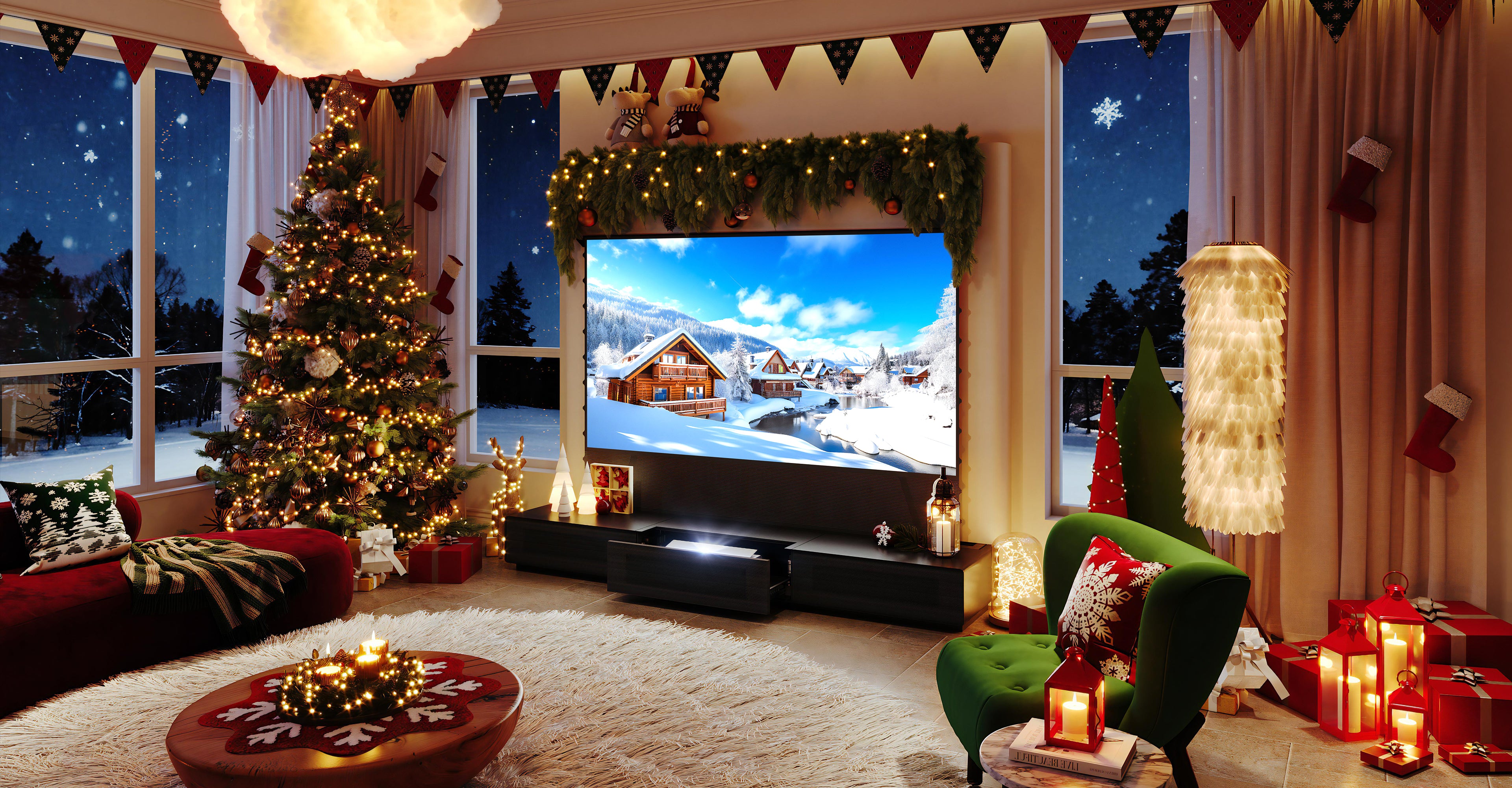 Þrefaldur leysir 4K sjónvarpsskjávarpi með mjög stuttri sendingardrægni