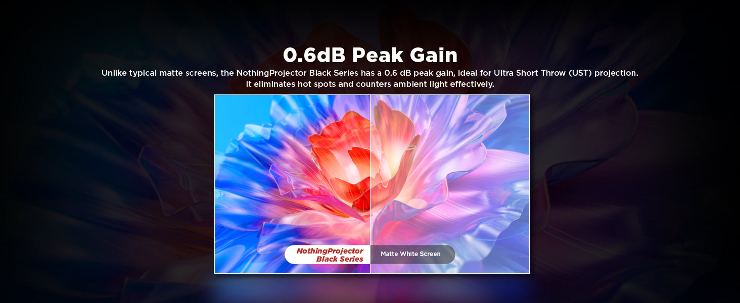 - Fjölnota & Breið sjónarhorn: Samhæft við 4K, 8K og 3D skjávarpa, með allt að 180° sjónarhornum fyrir upplifun úr hvaða sæti sem er.