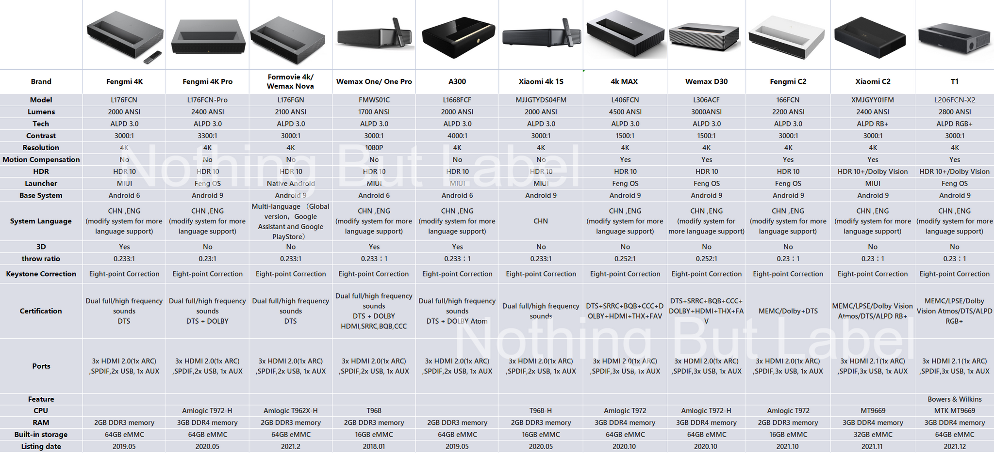 The last part is the top end models of Fengmi, this year we have the new Fengmi T1. We also compare it with Fengmi 4k Max and Wemax D30.