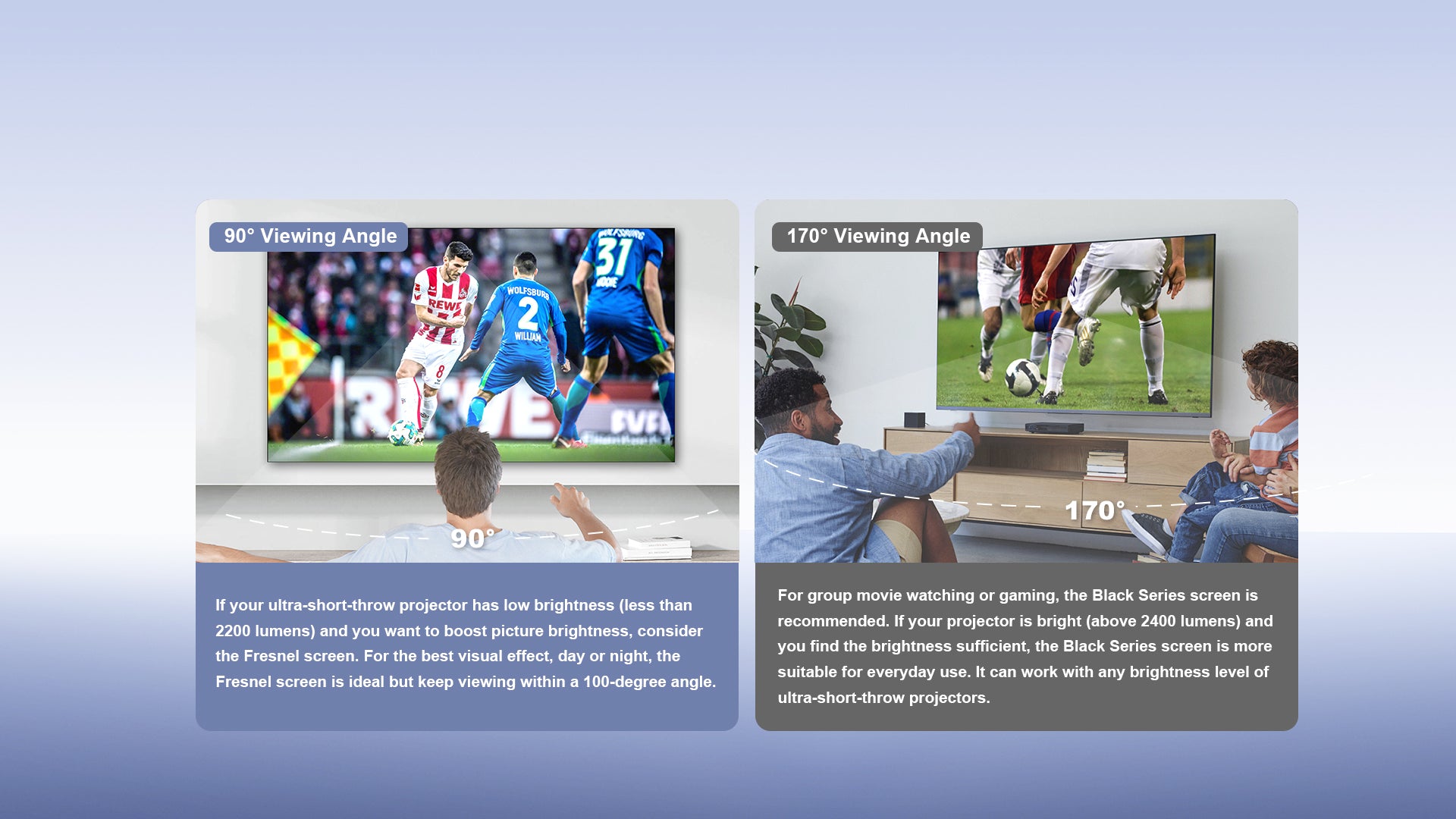 No more washed-out images. Made specifically with ultra-short-throw projectors in mind, the Fresnel ALR Screen complements the striking visuals of the projector.