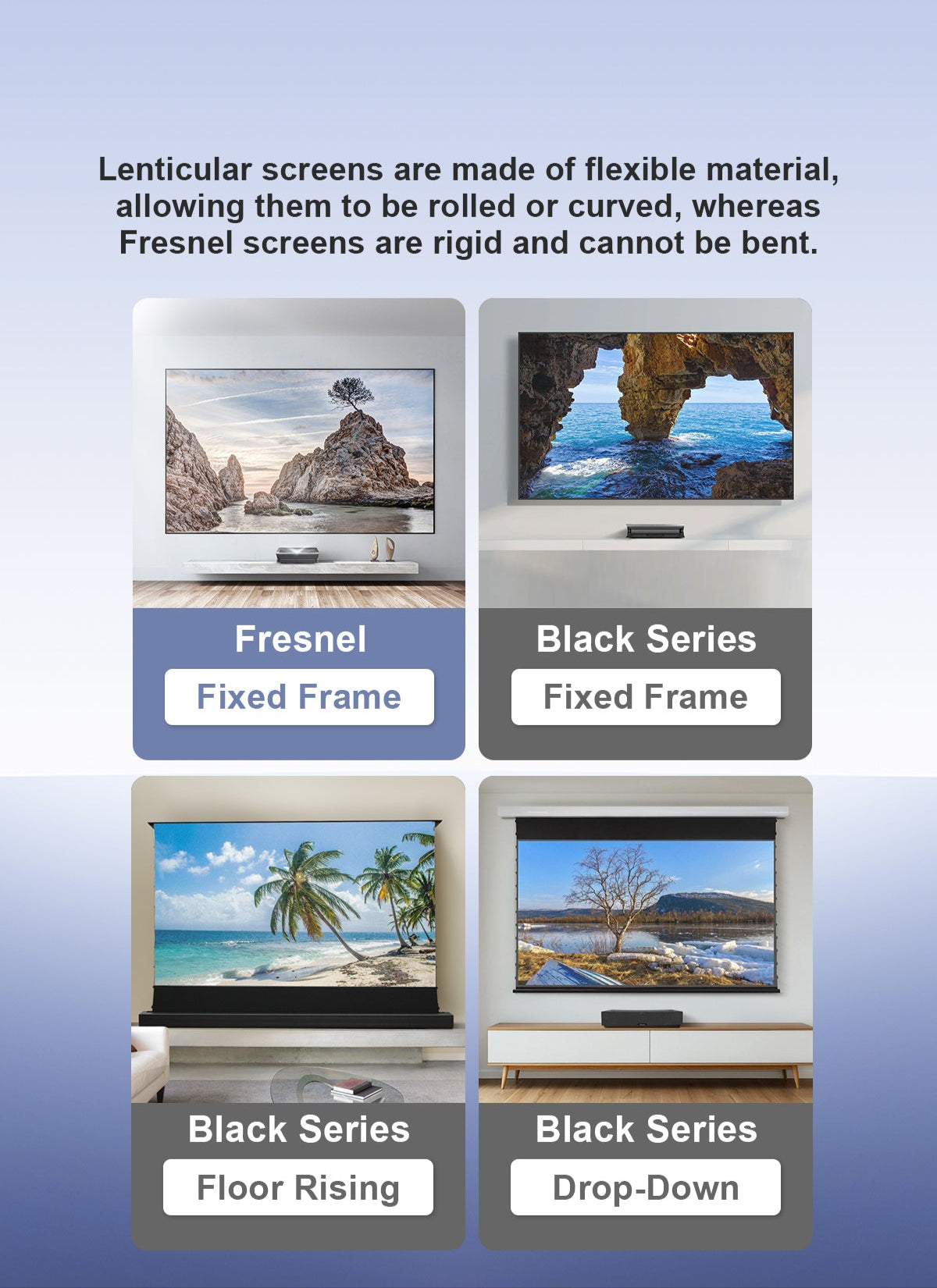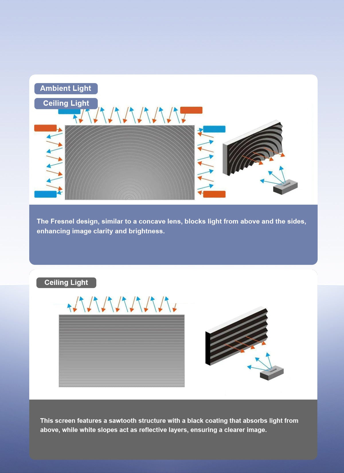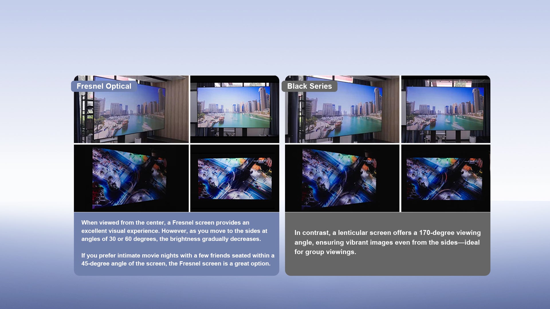 Fresnel ALR screen, specially designed for ultra-short throw projectors, delivers sharp and clear 4K visuals even in daylight.