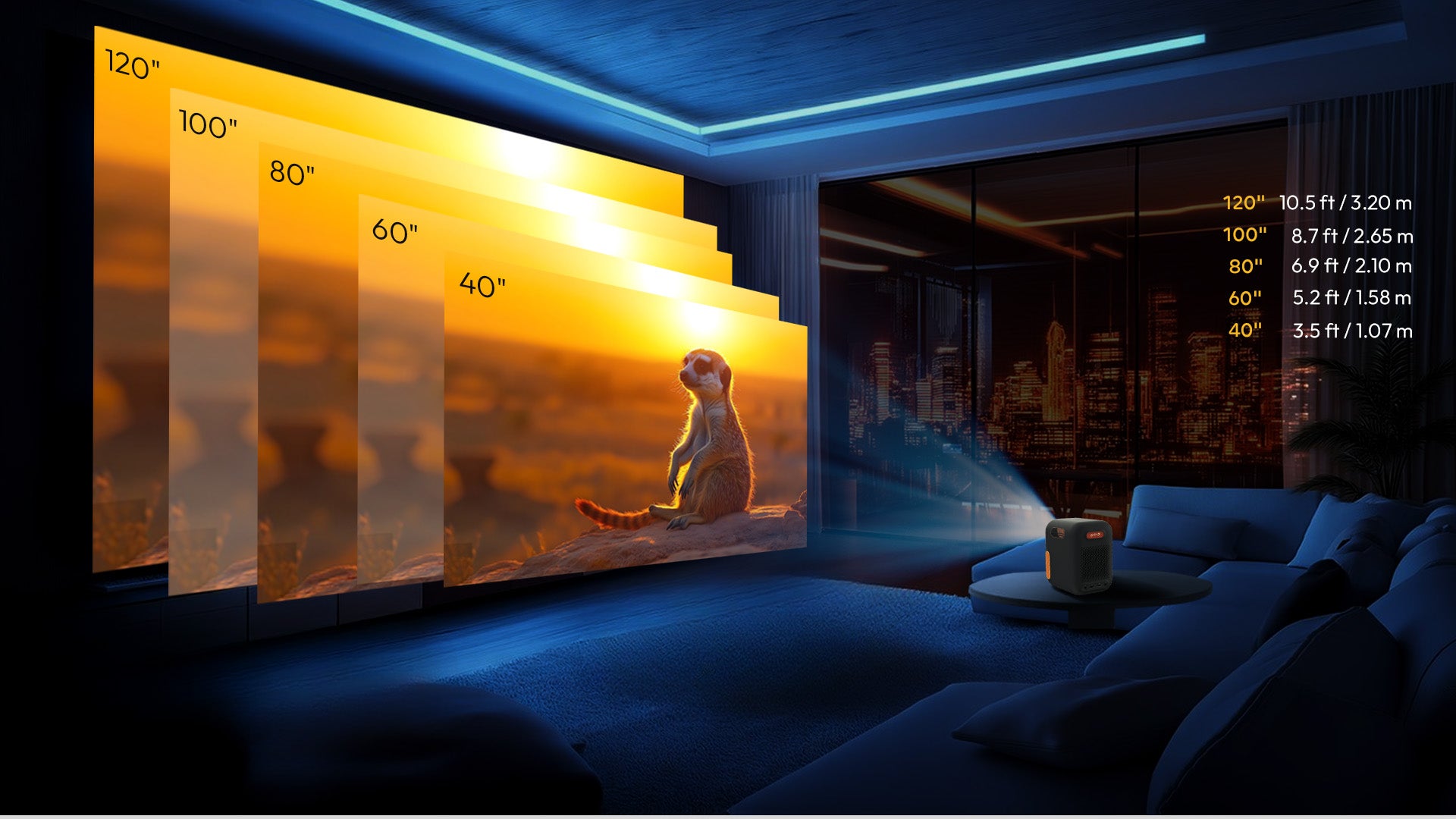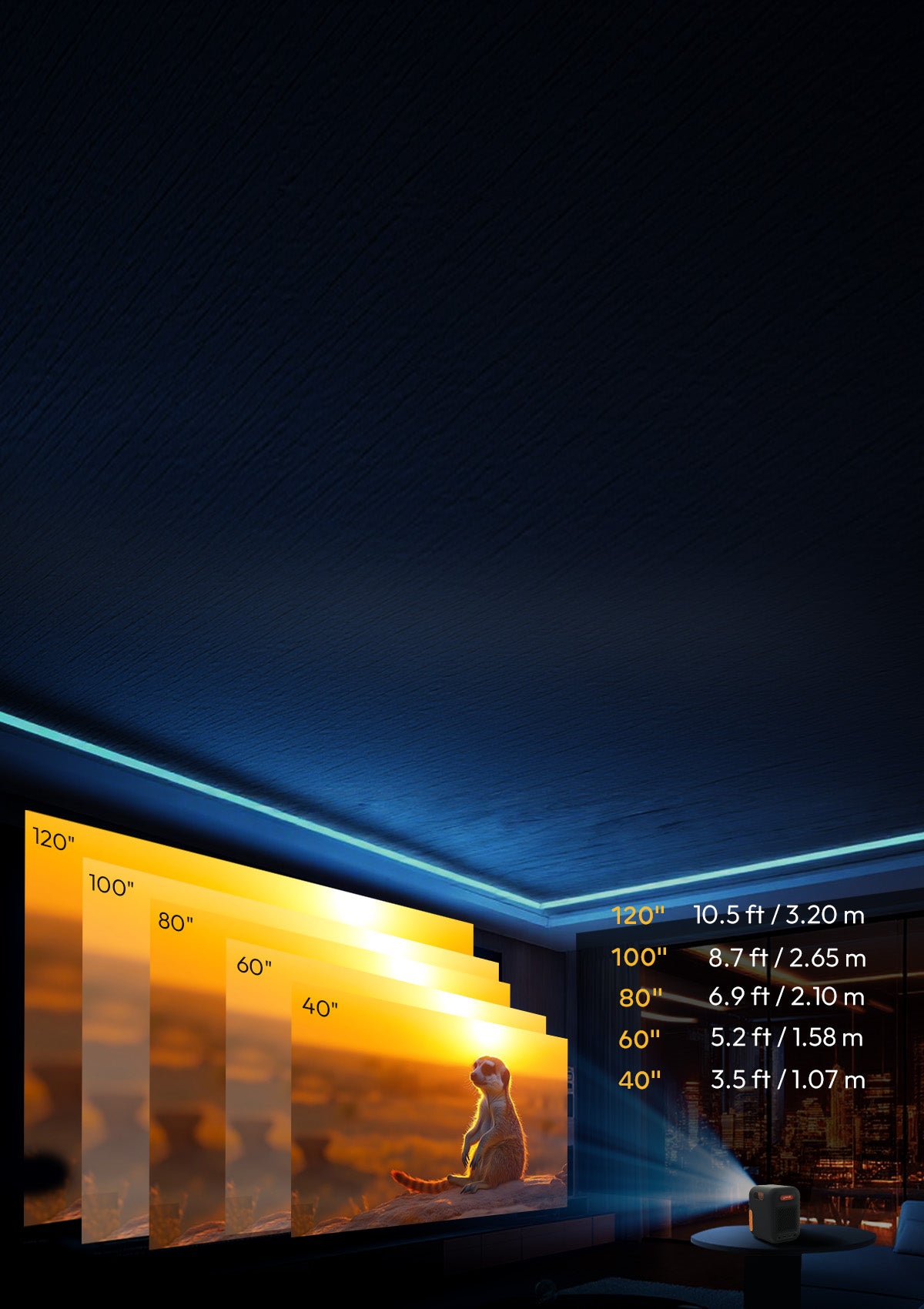 | Image size | 40~120" |