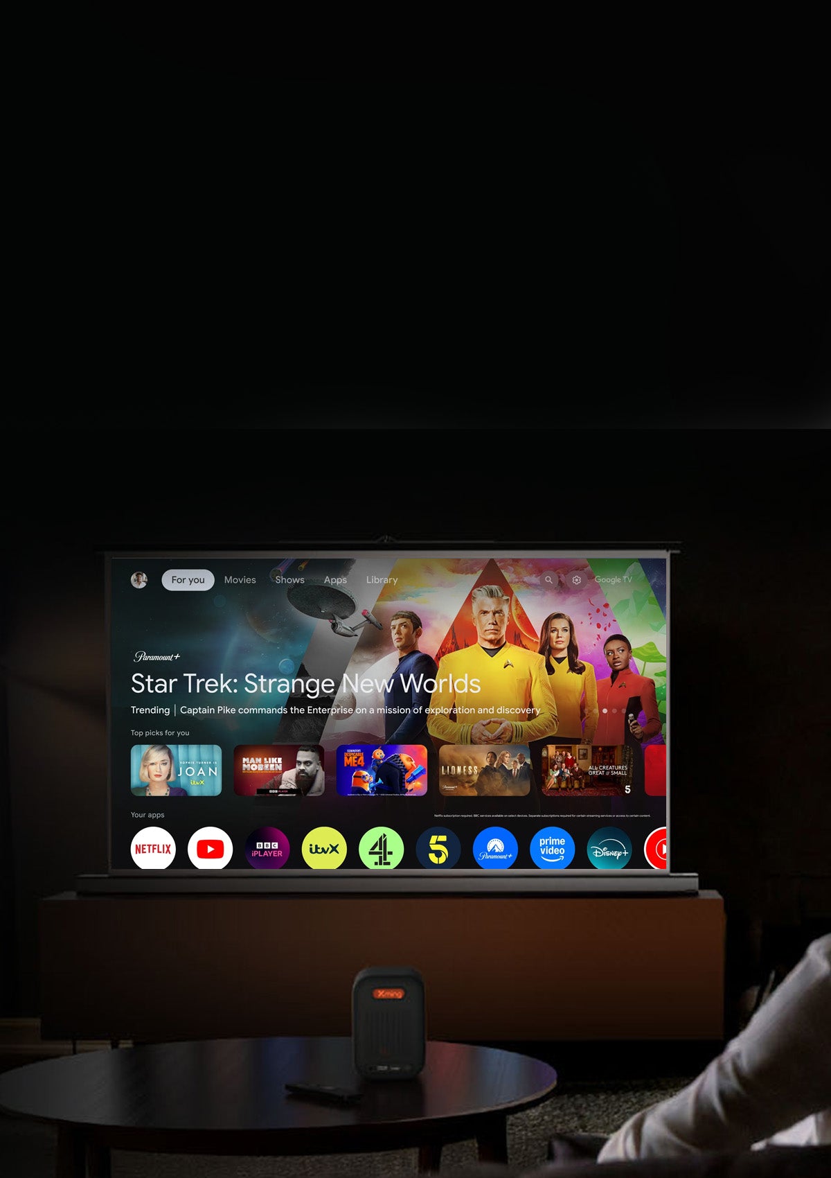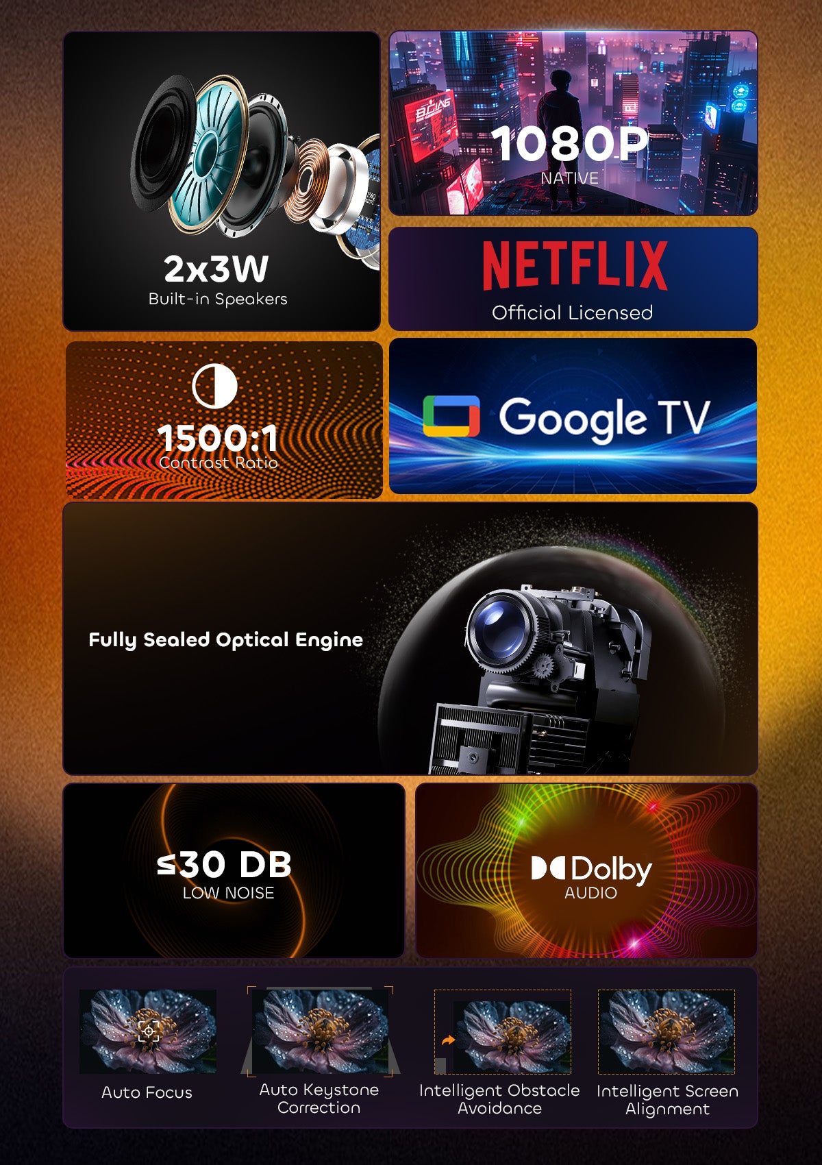 "This projector is unique for its Google TV and Native Netflix features, which make streaming easy and seamless without any additional devices."
