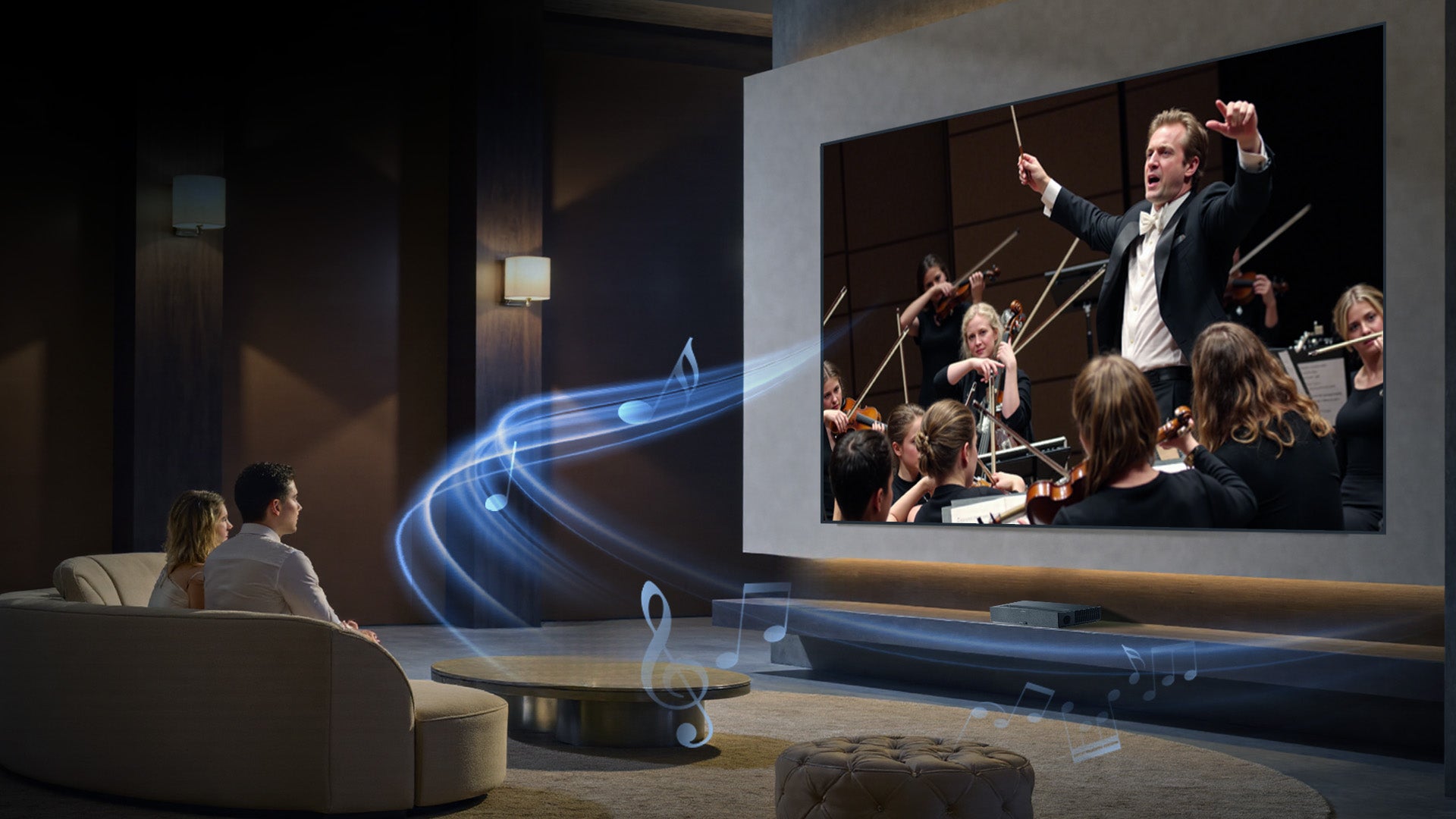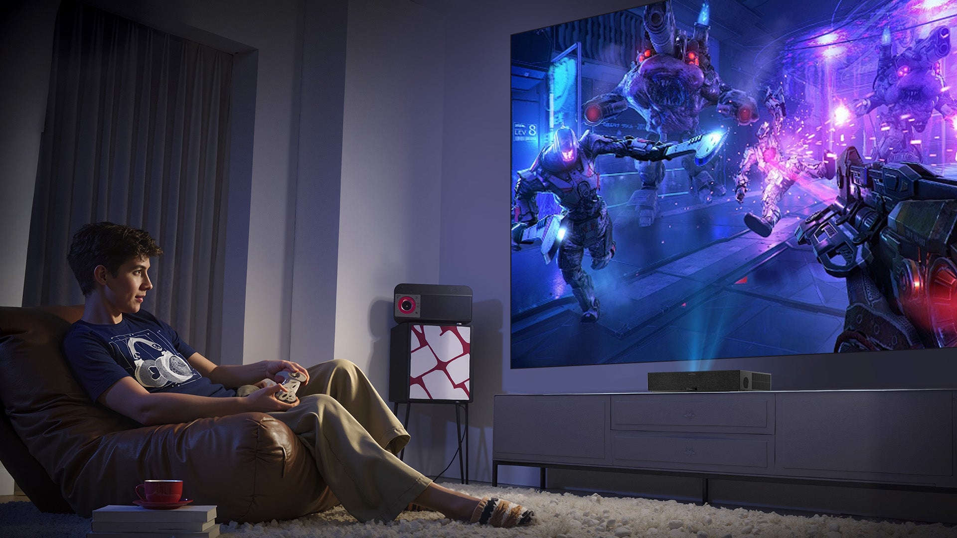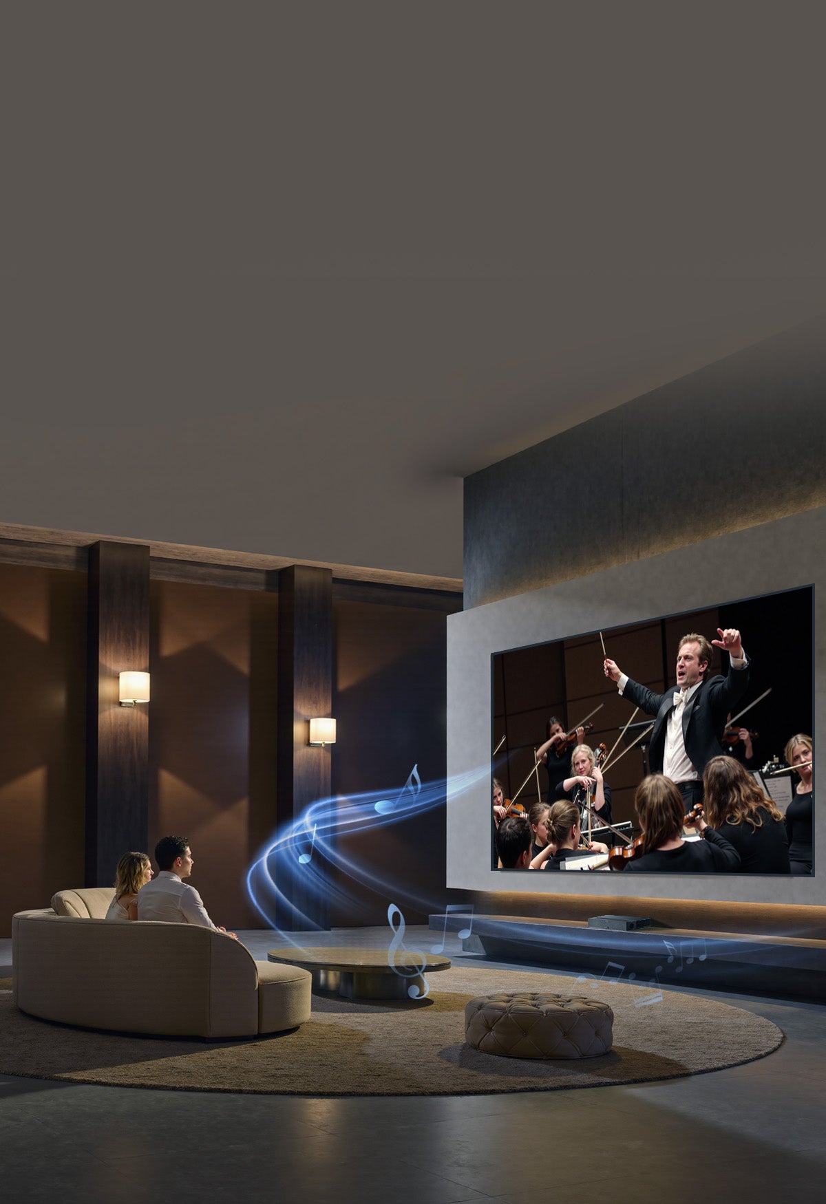Dengan bezel ultra-nipis 1cm yang minimalis, skrin hampir rata dengan dinding anda, mencipta penampilan moden dan bergaya yang melengkapkan mana-mana ruang tamu atau teater. Apabila dihidupkan, ia hilang ke dalam gambar — seperti tingkap ke dunia lain.