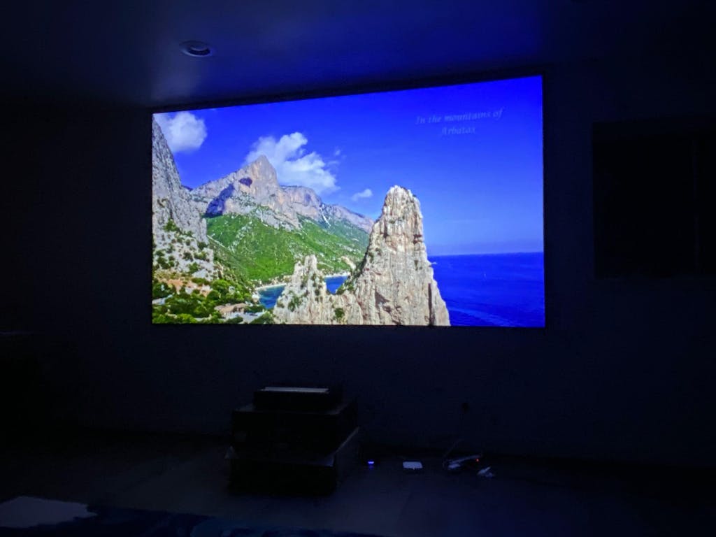 The gain of projection screens typically ranges from 0.6 to 2.0; we usually position the gain of a white wall at 1.