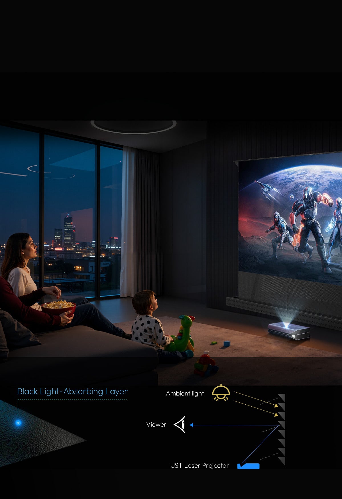 Engineered to Reject Ambient Light, Enhance Brightness, and Deliver Clear Images in Any Room