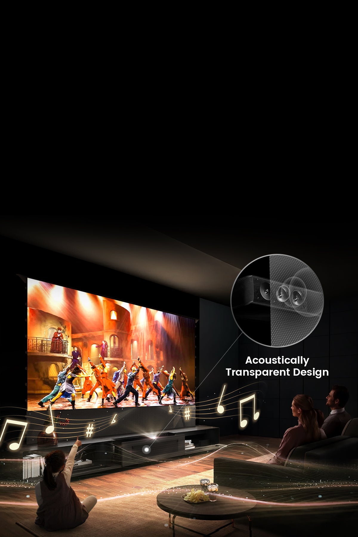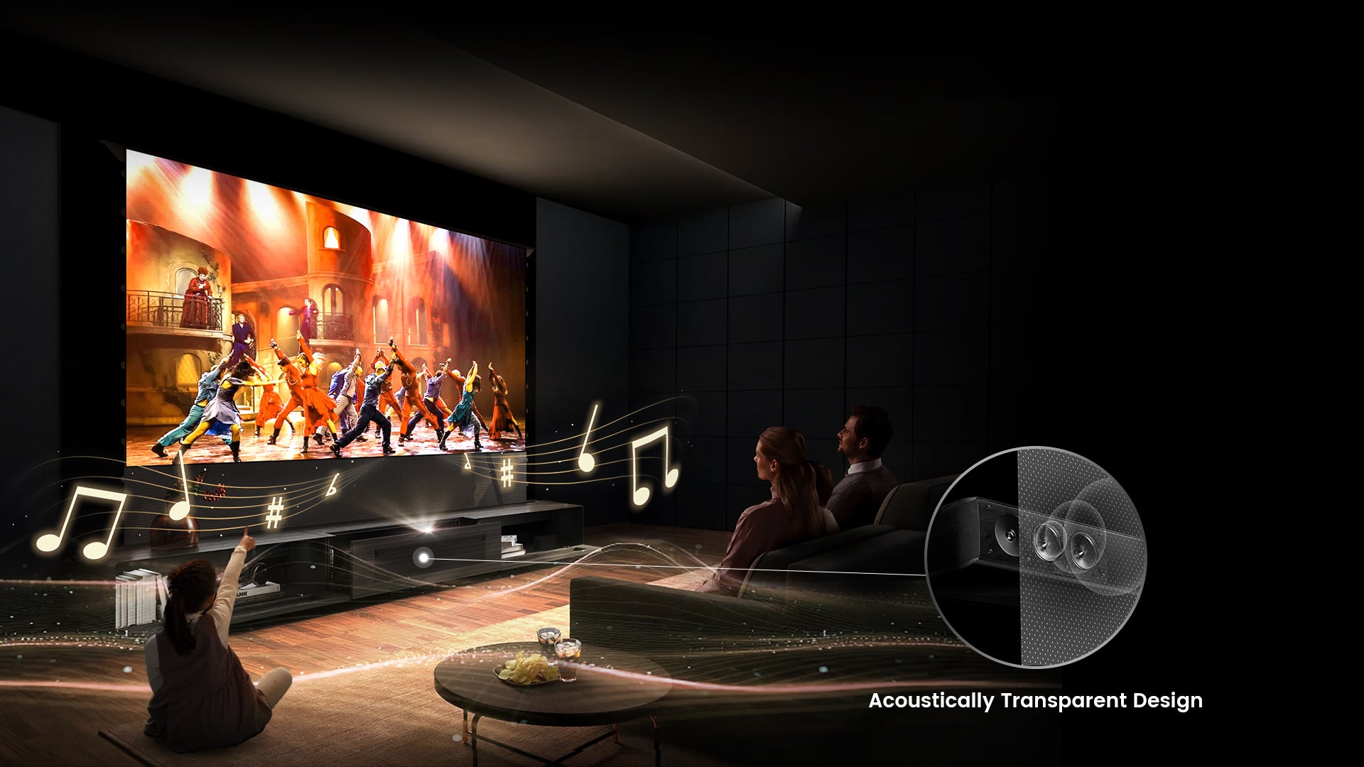 Experience the immersive sensation of being part of the action with an expansive projection, allowing you to indulge in a luxurious feast for the senses.