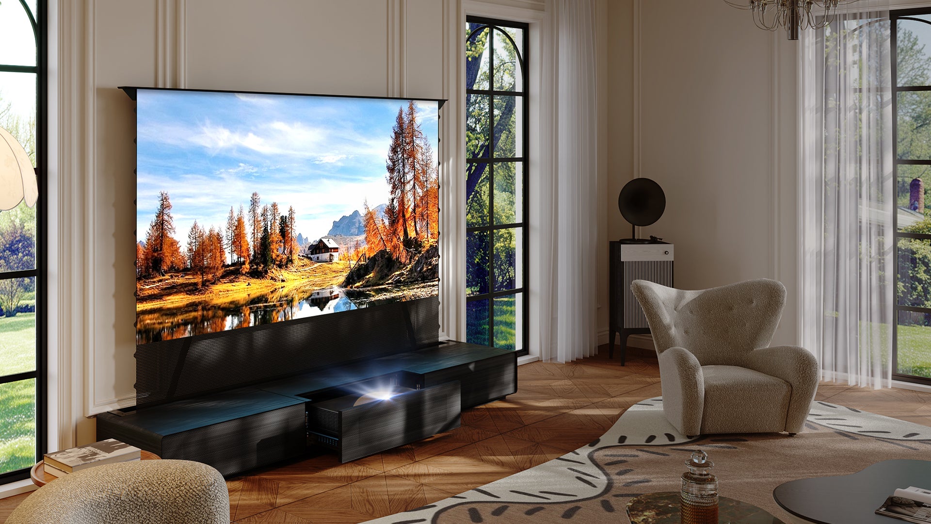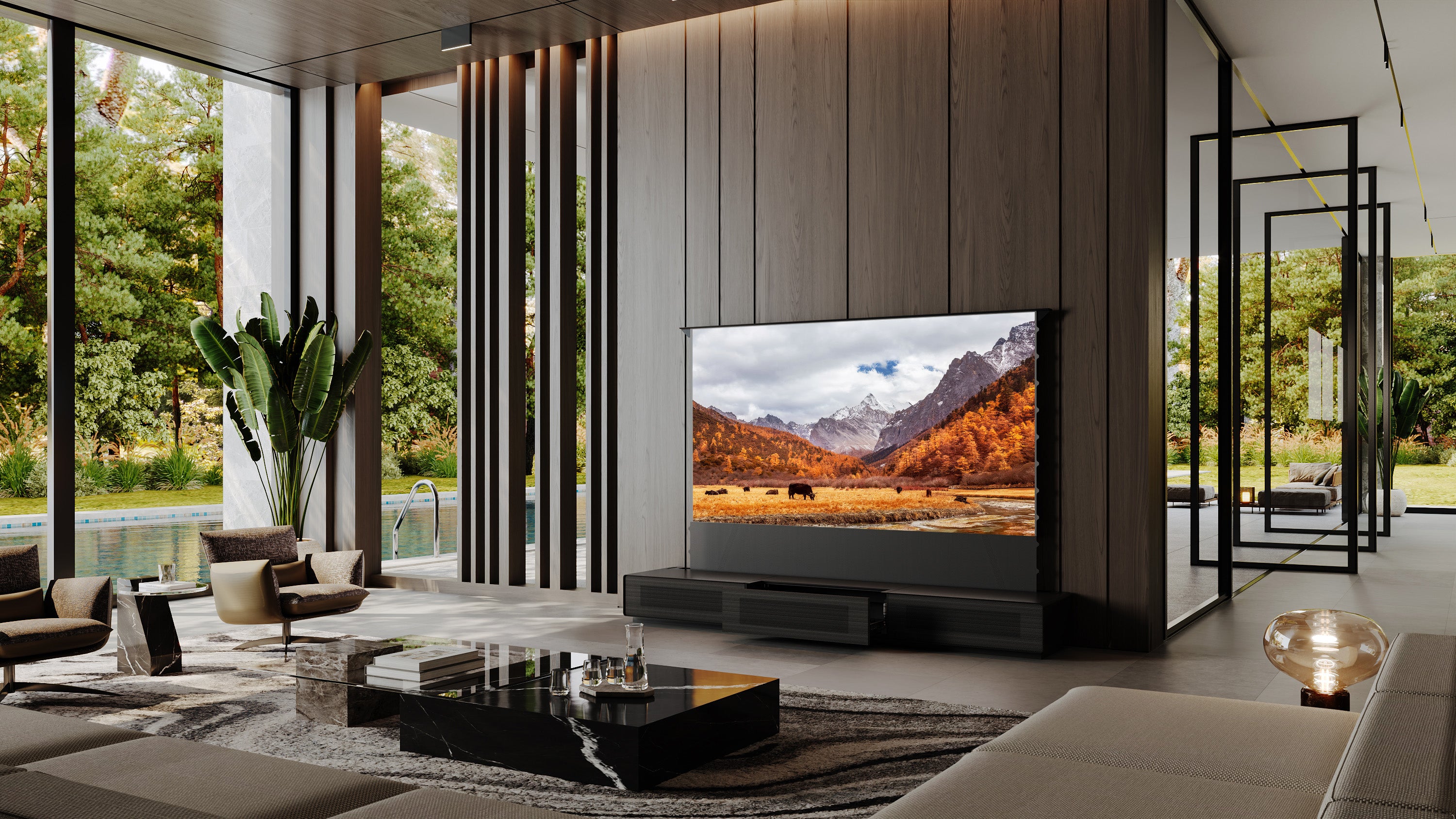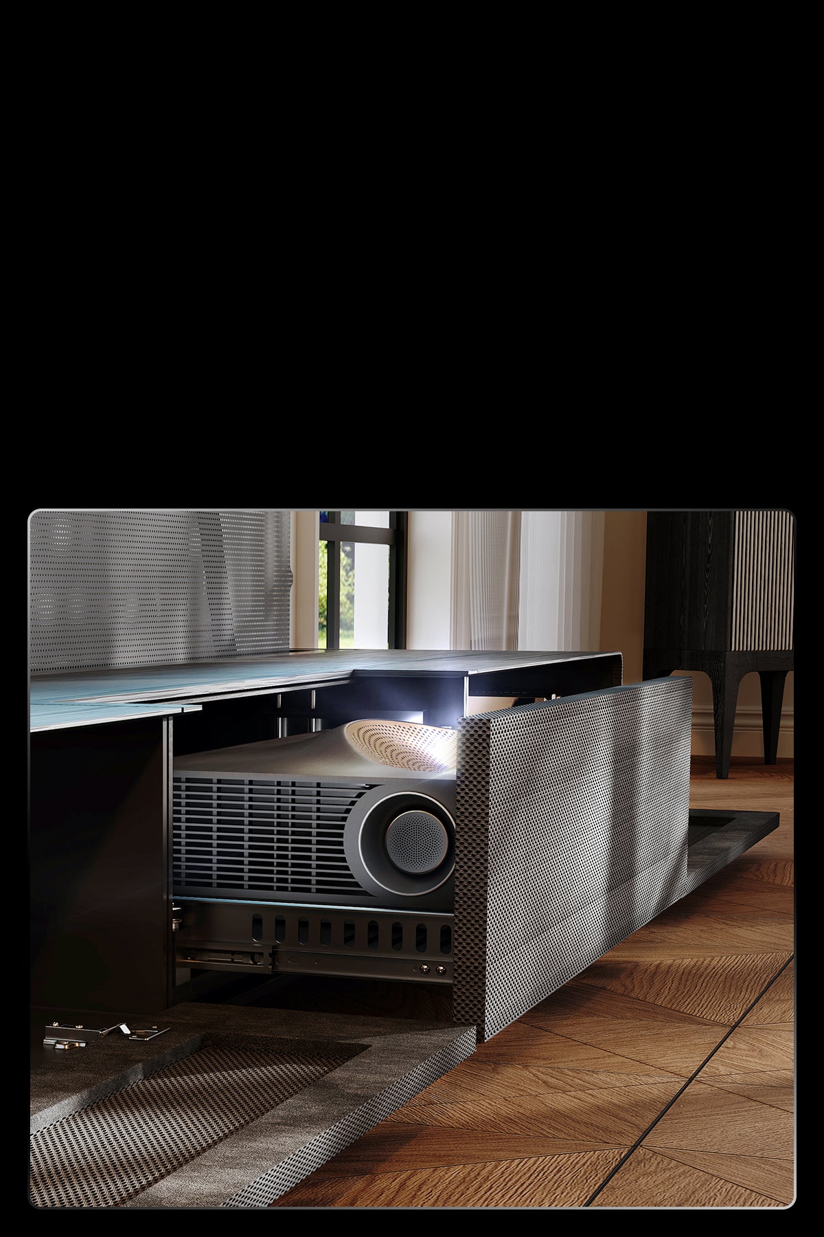 Dengan integrasi mendalam antara skrin dan kabinet, satu tekan butang menaikkan skrin secara automatik, serta-merta mengubah susunan menjadi pengalaman pawagam rumah penuh.