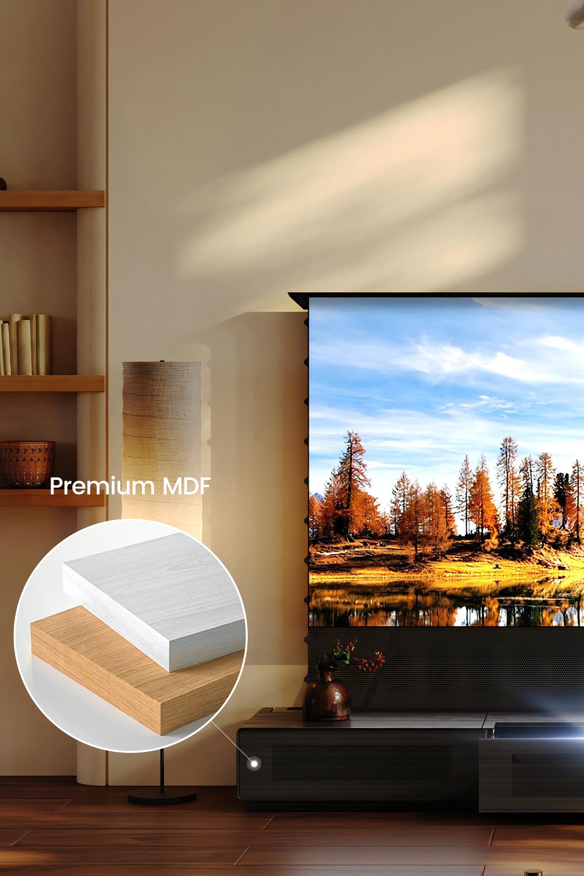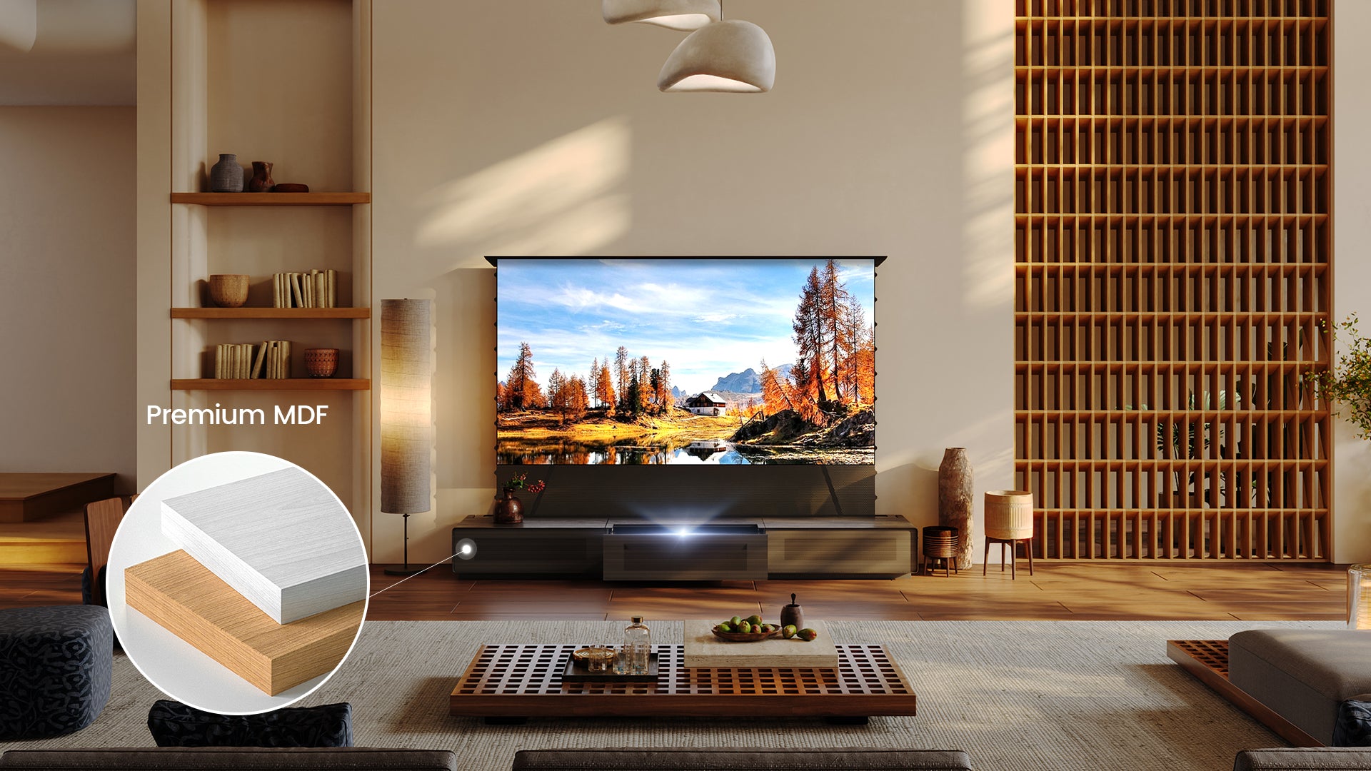 Constructed from eco-certified high-density board, this laser tv cabinet is built to resist moisture, corrosion, and daily wear, ensuring a safe and sturdy foundation for years to come.
