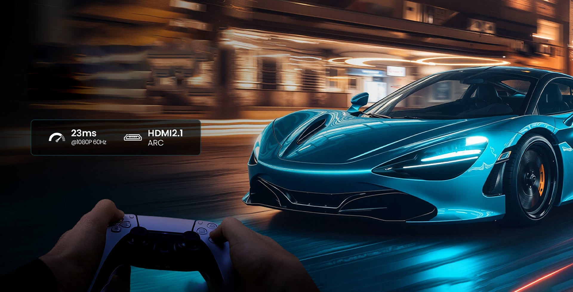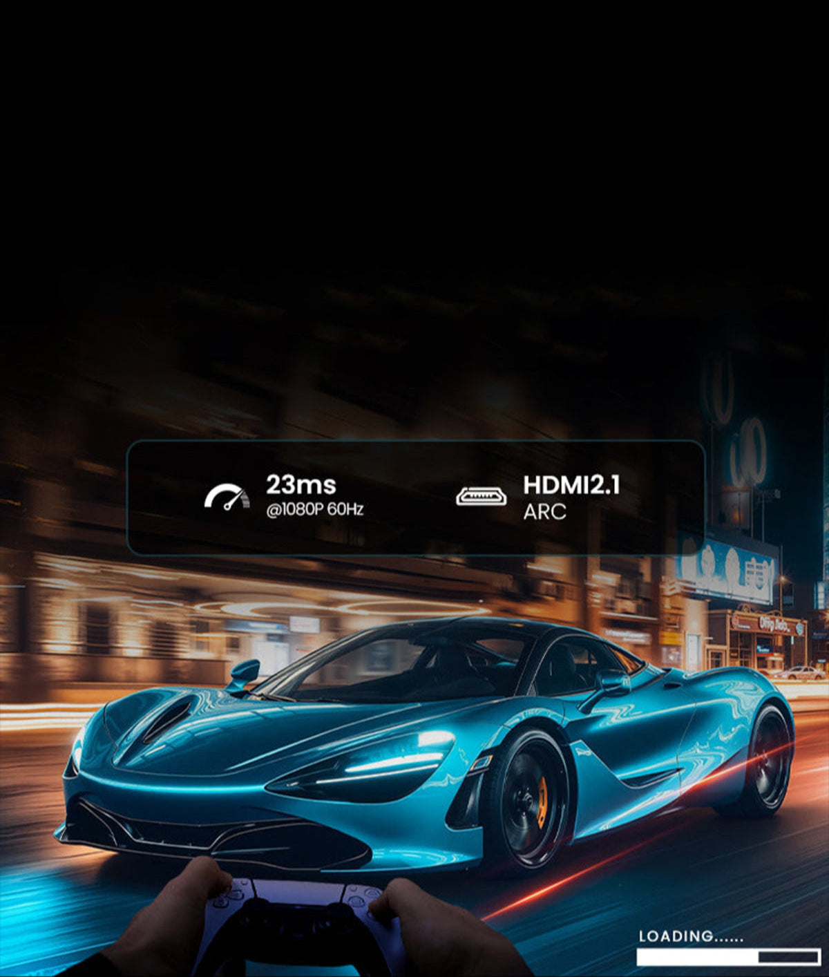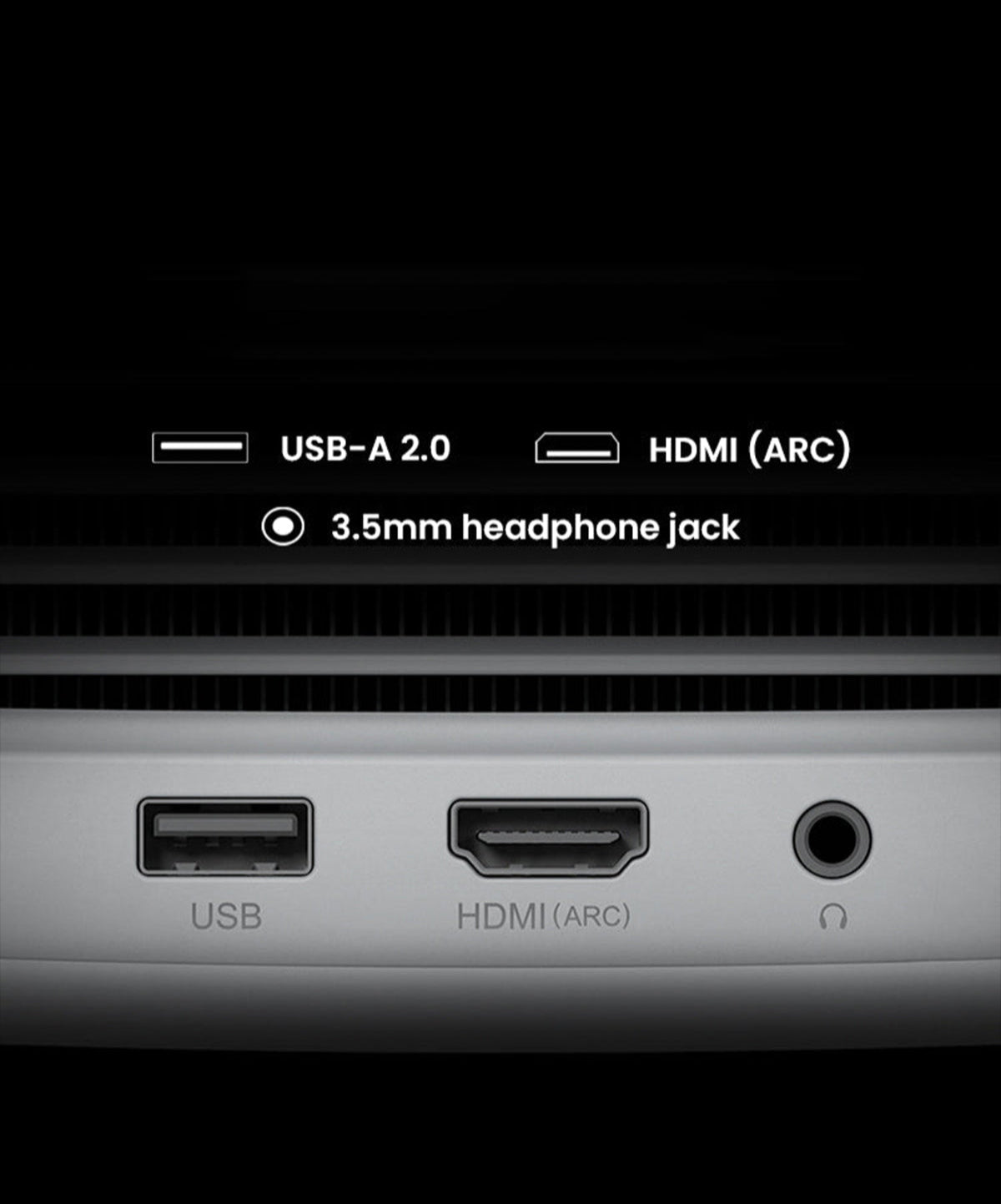 | Tilkobling | HDMI 2.1, USB-A 2.0, DC-port |