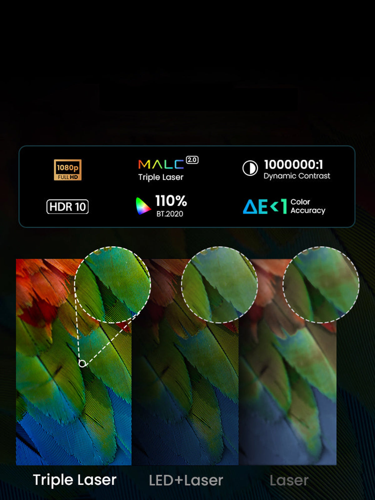 JMGO N1S SE Long Throw Triple-Laser Google TV Projector 800 ISO Lumen