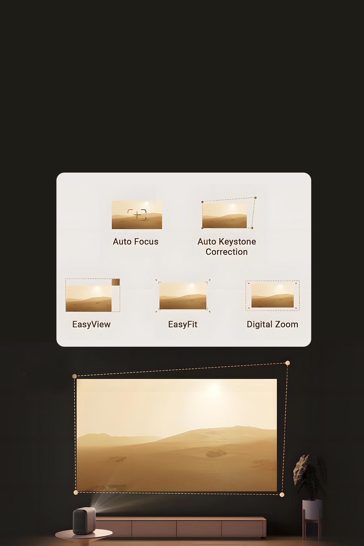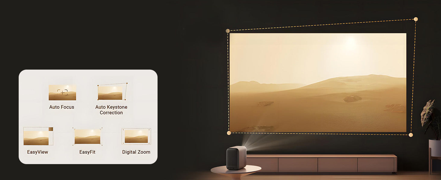 | Korekta trapezowa | Automatyczne ustawianie klucza / Automatyczne wyrównanie ekranu / Unikanie przeszkód |