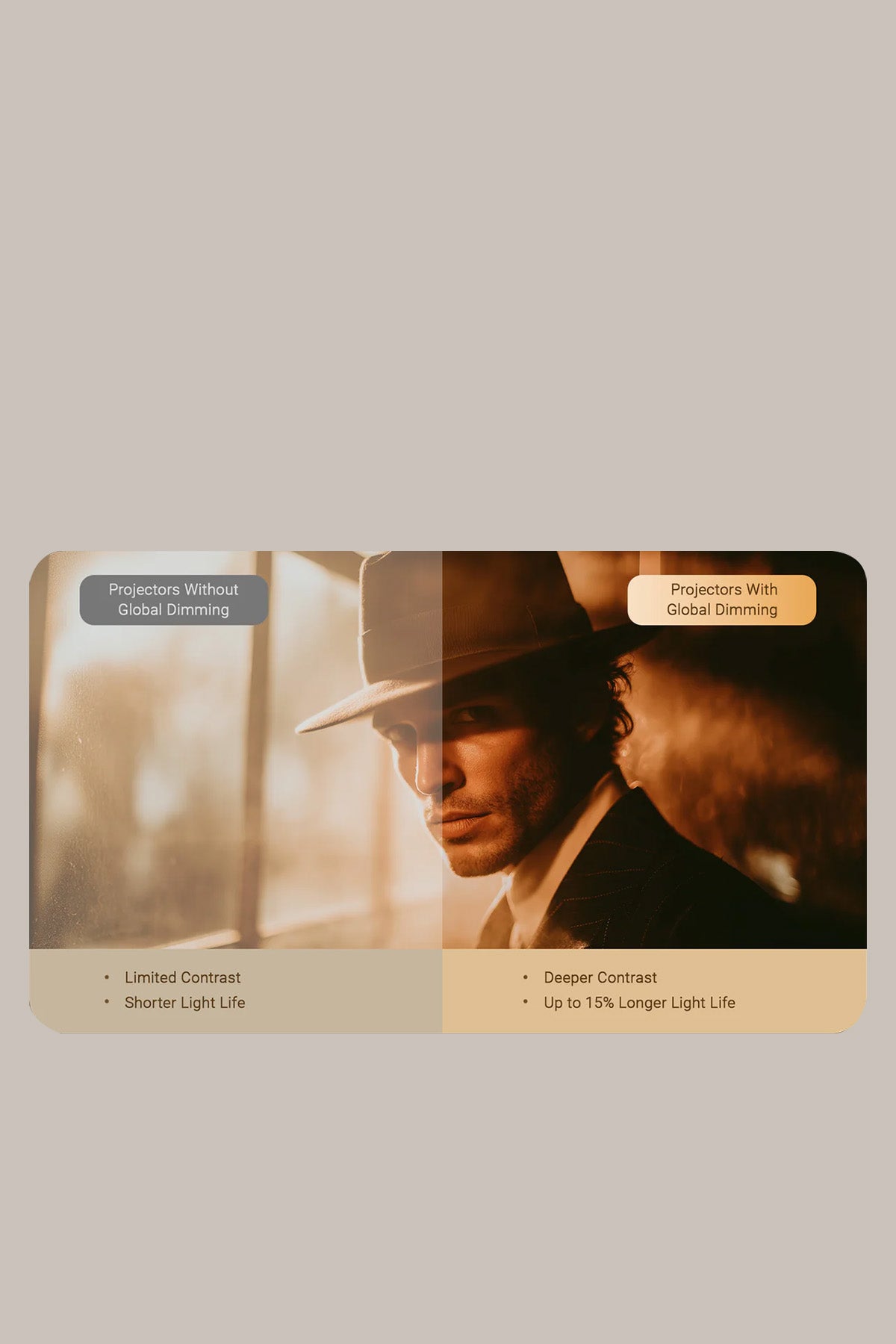 Doświadcz znakomitej jakości obrazu na ogromnym ekranie od 40” do 120”. Z natywną rozdzielczością Full HD 1920 x 1080 (z obsługą dekodowania 4K), jasnością 500 ISO lumenów i głębokim kontrastem 2500:1. W połączeniu z obsługą HDR10 każda scena oferuje żywe kolory i bogate detale, nawet w pomieszczeniach z oświetleniem otoczenia.