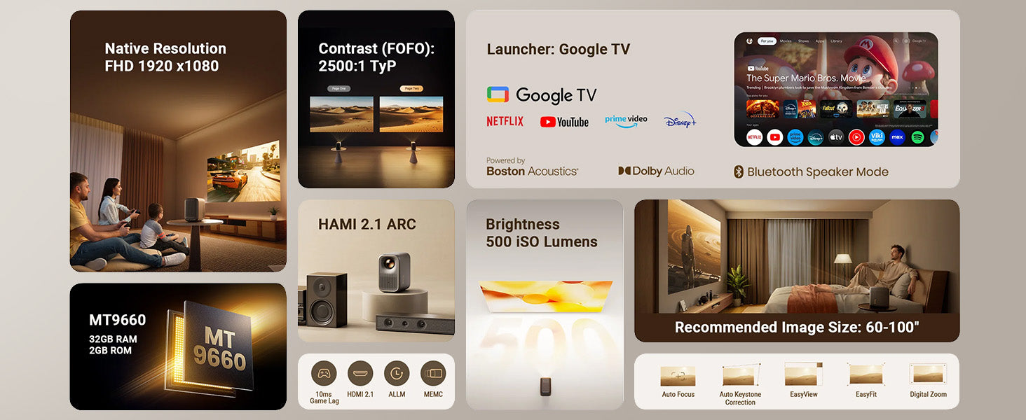 Formovie Xming Page Two 500 ISO lumenów 1080P Full HD Google TV LED projektor Certyfikowany Netflix