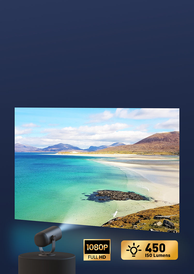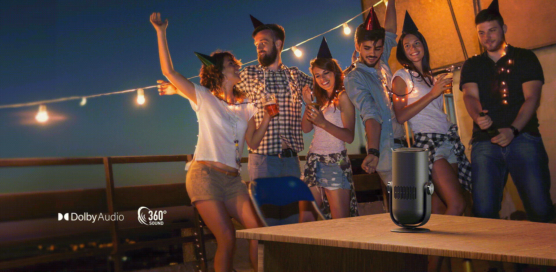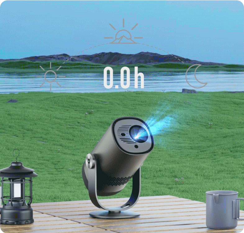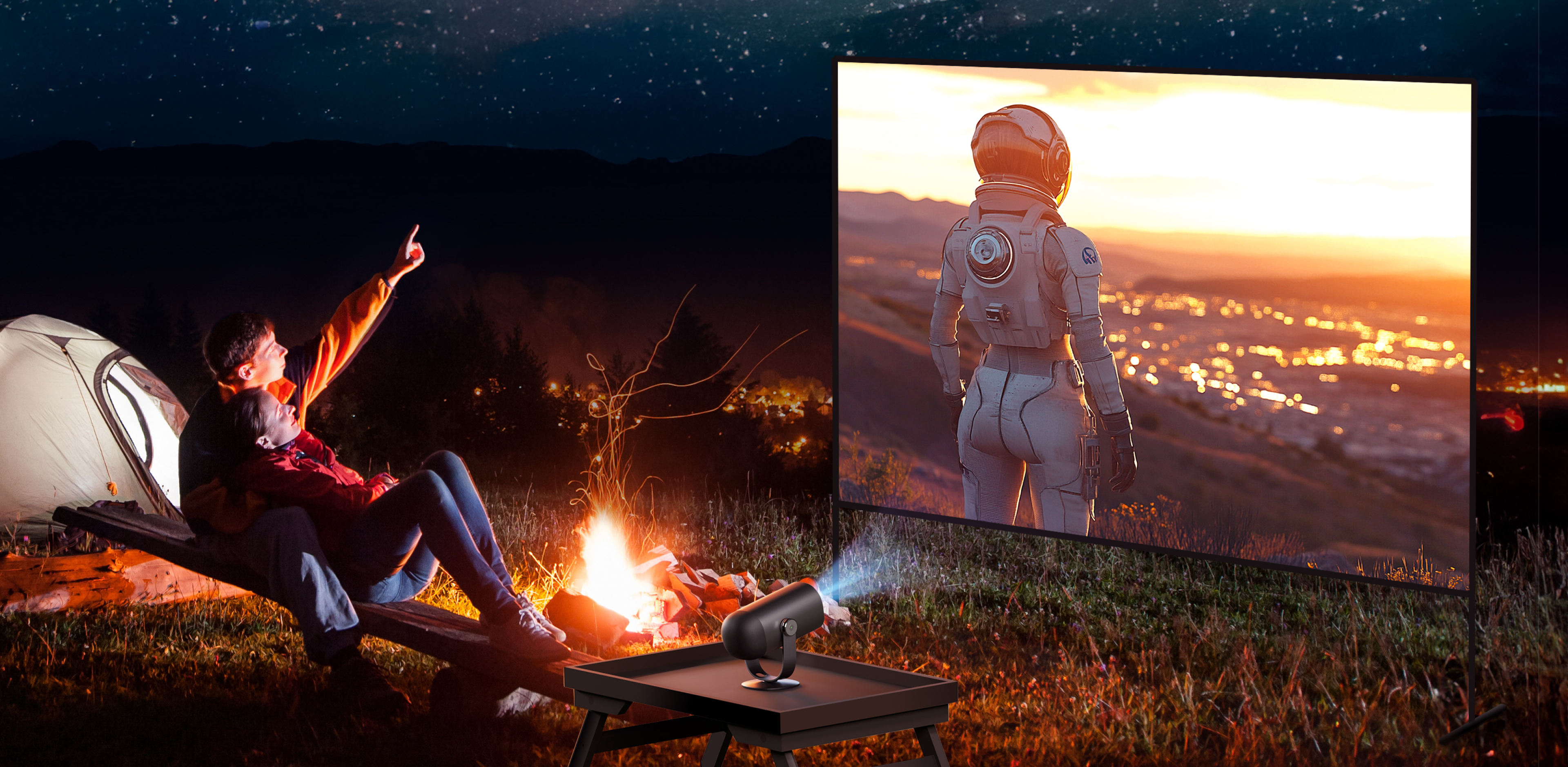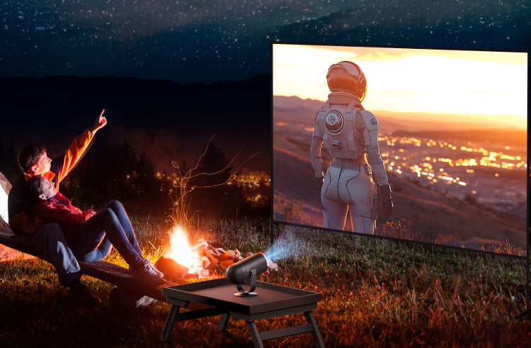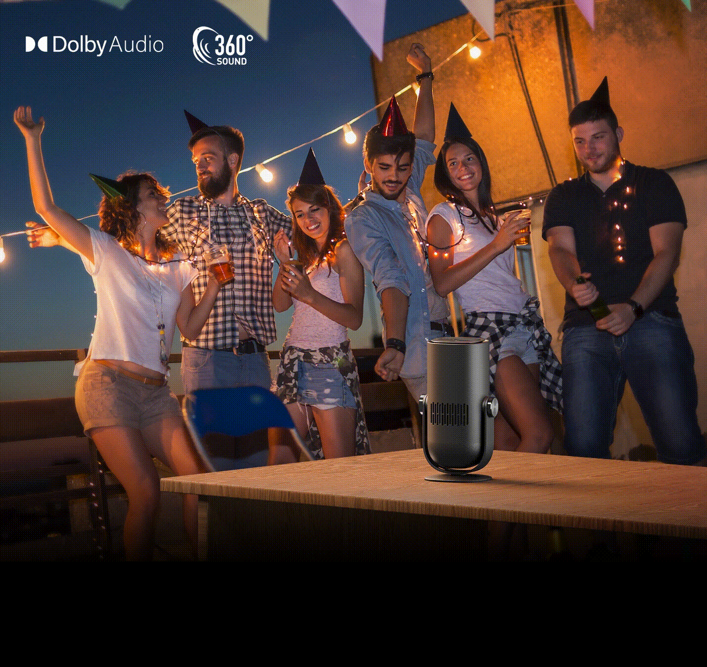- Superbærbar kino: Slipp løs med vår aller første ultraportable projektor! Se en 2,5-timers film eller fest hele natten med musikk på én lading. Kompatibel med powerbank.