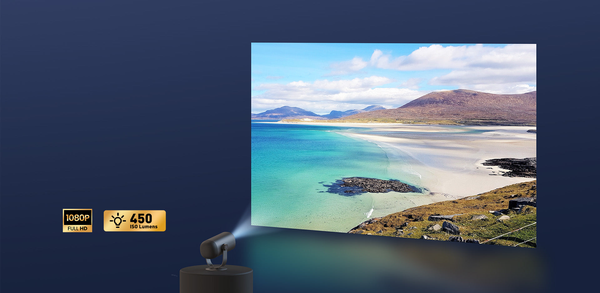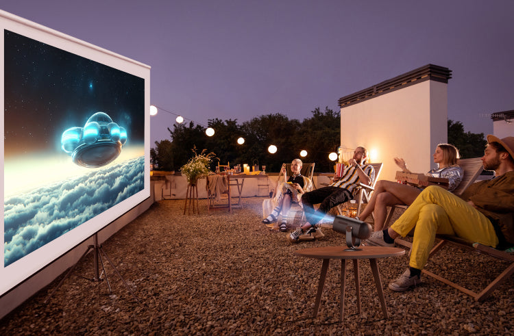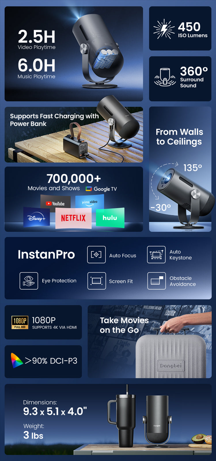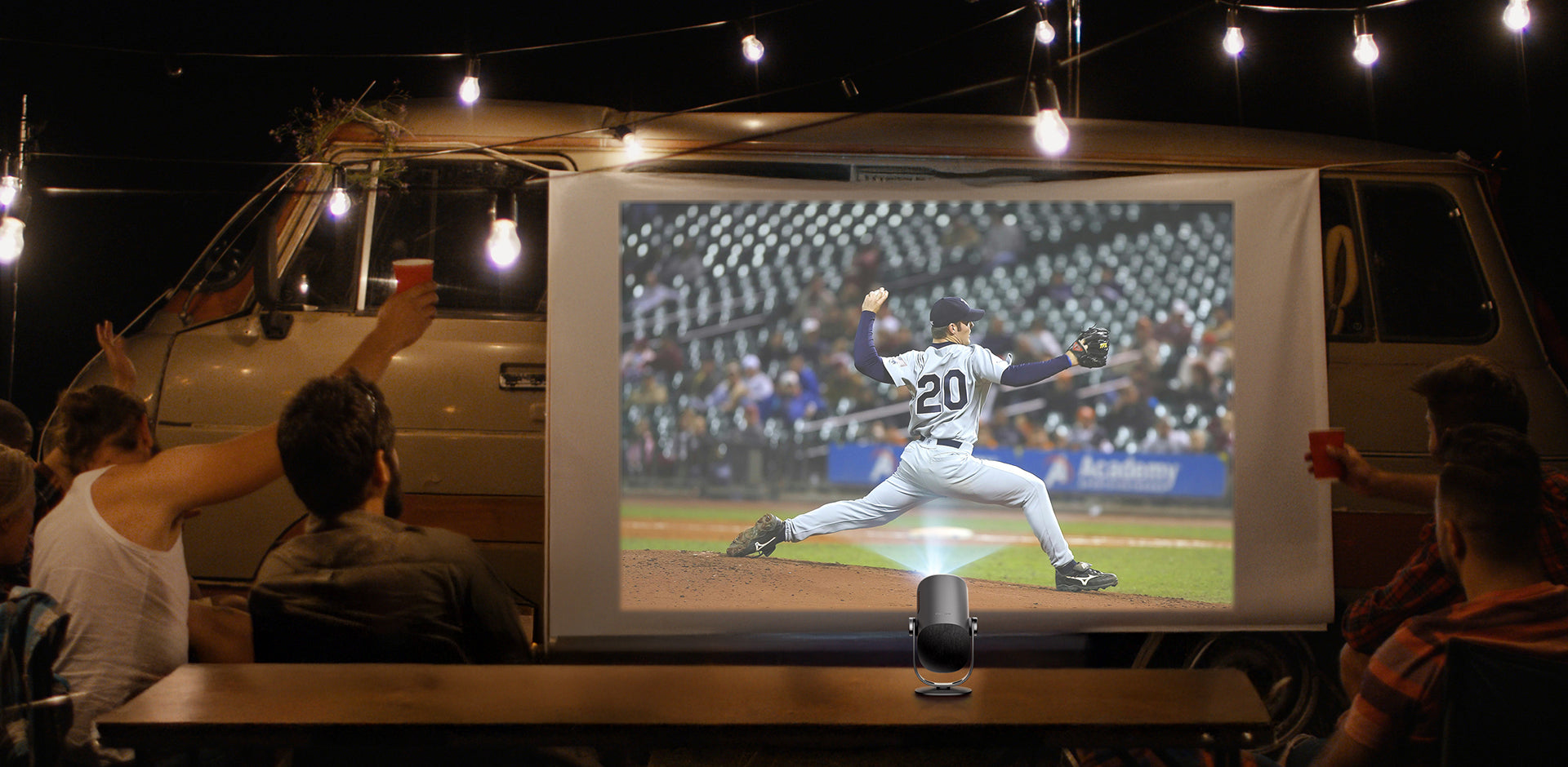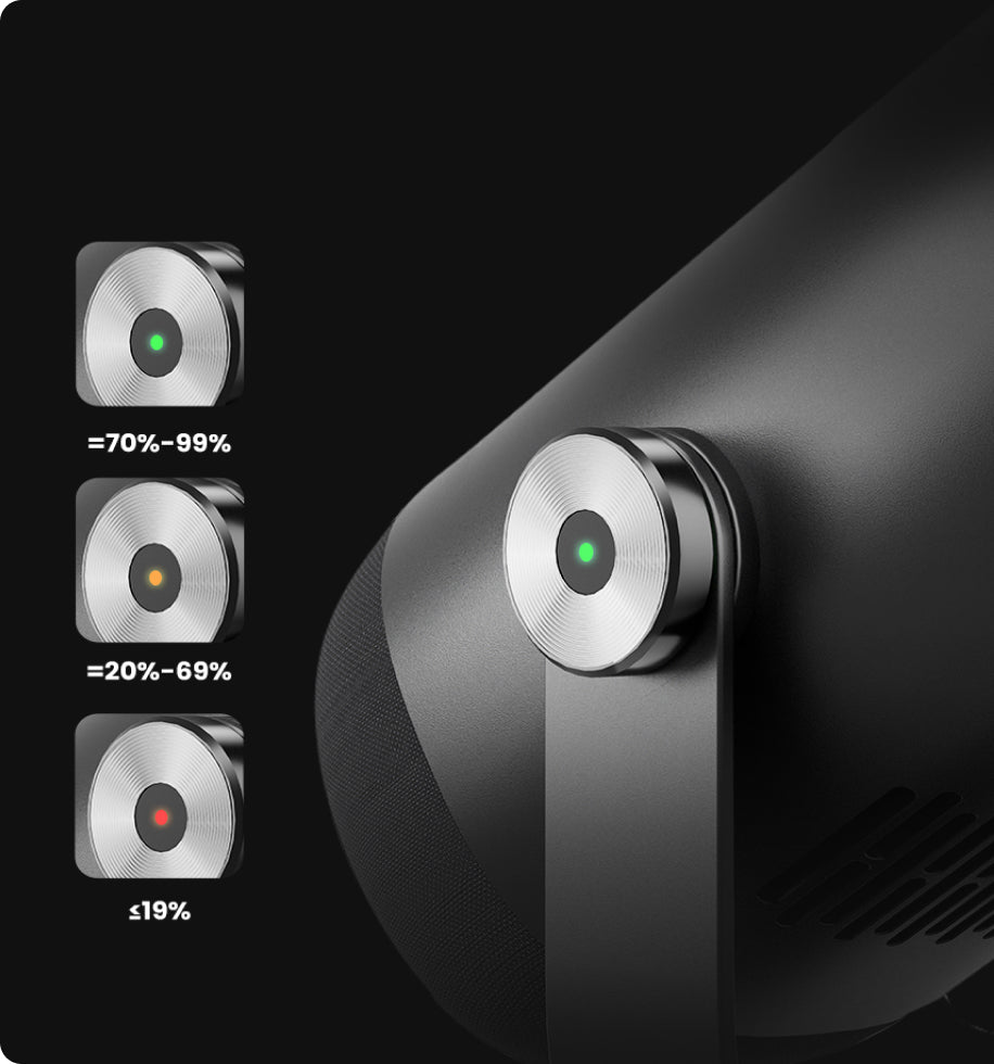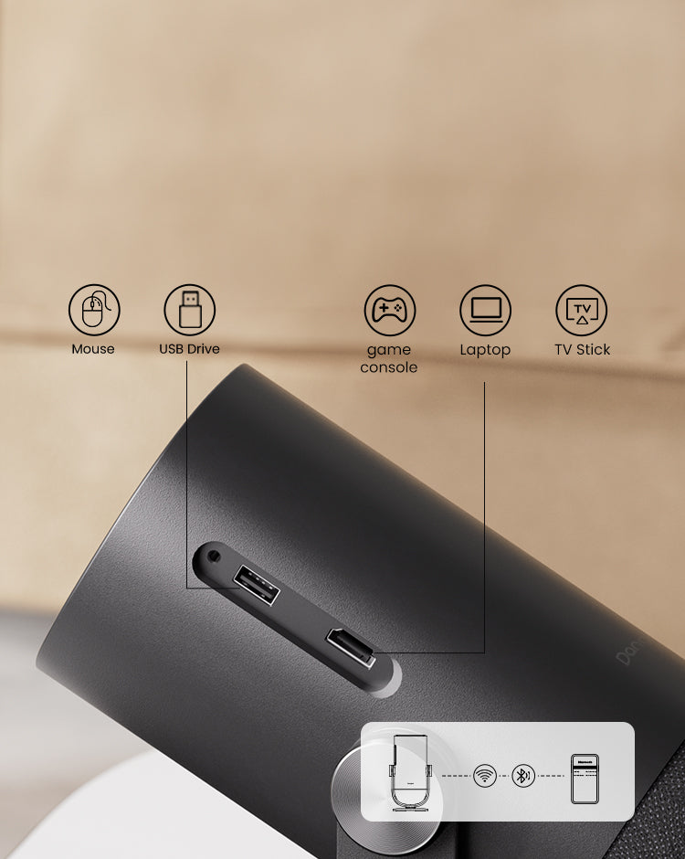 - Superbærbar kino: Slipp løs med vår aller første ultraportable projektor! Se en 2,5-timers film eller fest hele natten med musikk på én lading. Kompatibel med powerbank.