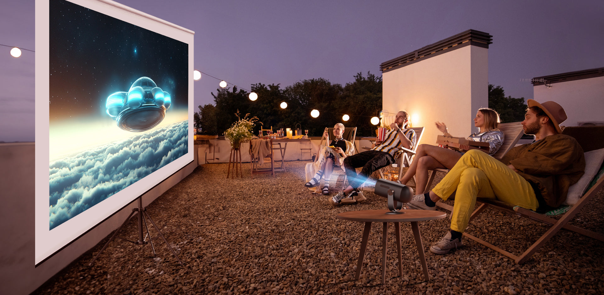 I likhet med Samsungs stilige innsats, kaster Freedo 1080p -visuals, men kan styre maksimalt 120 diagonal tommer (i stedet for freestyle's 100). Det kjører Google TV også for tilgang til streaming-apper-inkludert Netflix-og pakker i 360-graders Dolby-høyttalere. Dekning på mer enn 90% av DCI-P3-fargespekteret og støtte for HDR-innhold er inkludert.