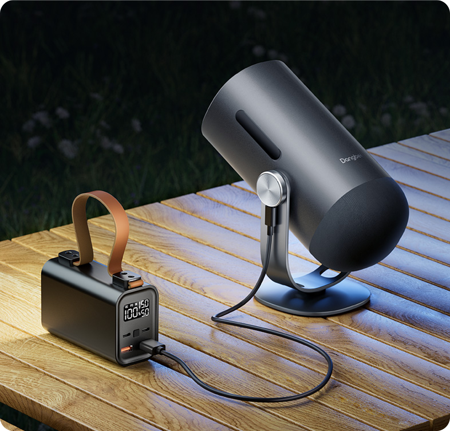 Dangbei Freedo er den første bærbare projektoren fra Dangbei, designet for mobil underholdning mens du er på farten. Med et innebygd 60Wh-batteri tilbyr Freedo en langvarig og imponerende filmopplevelse uten å stole på en kablet strømkilde.