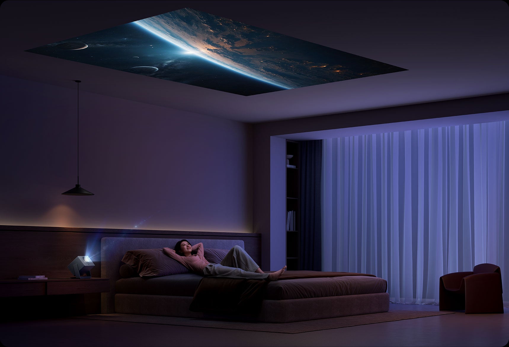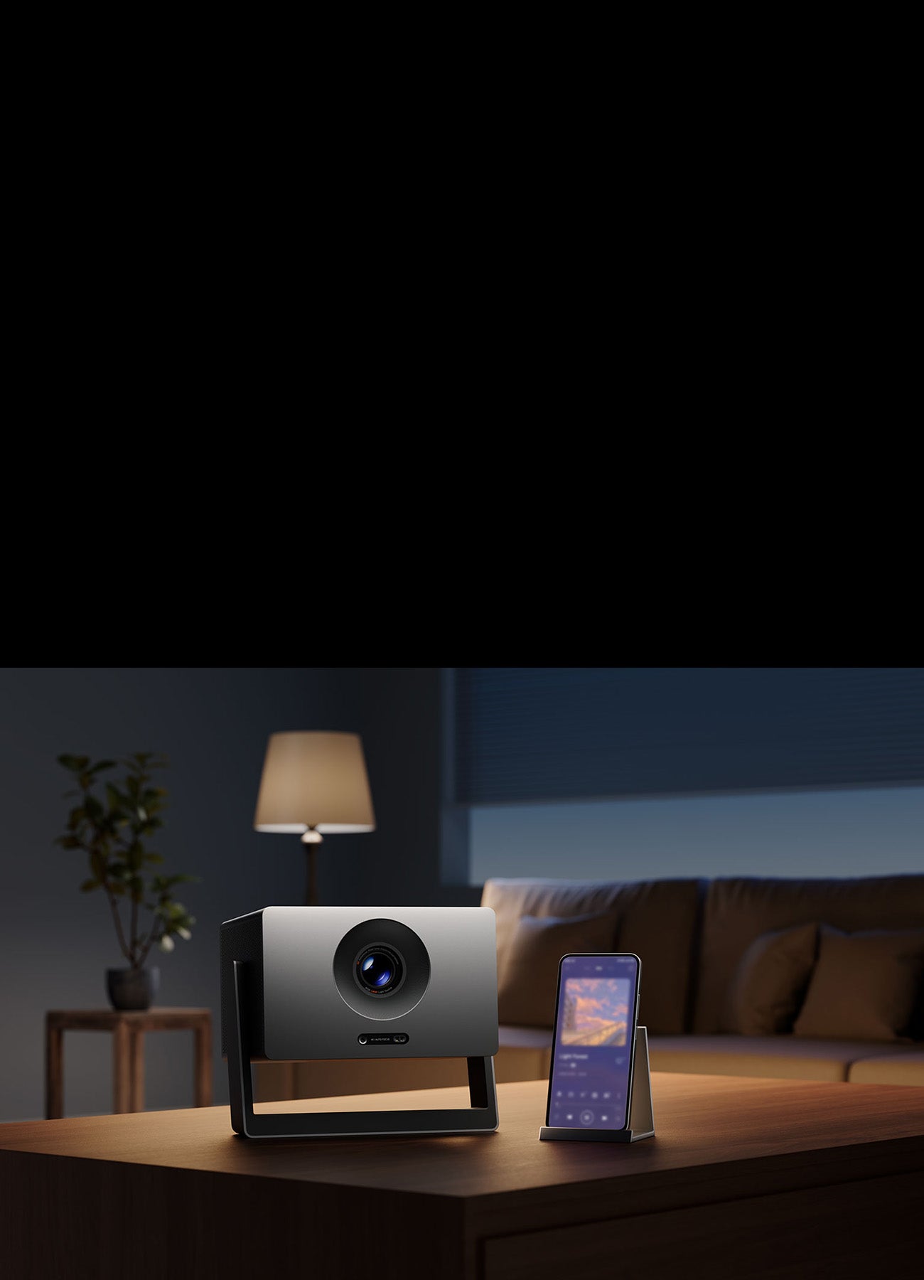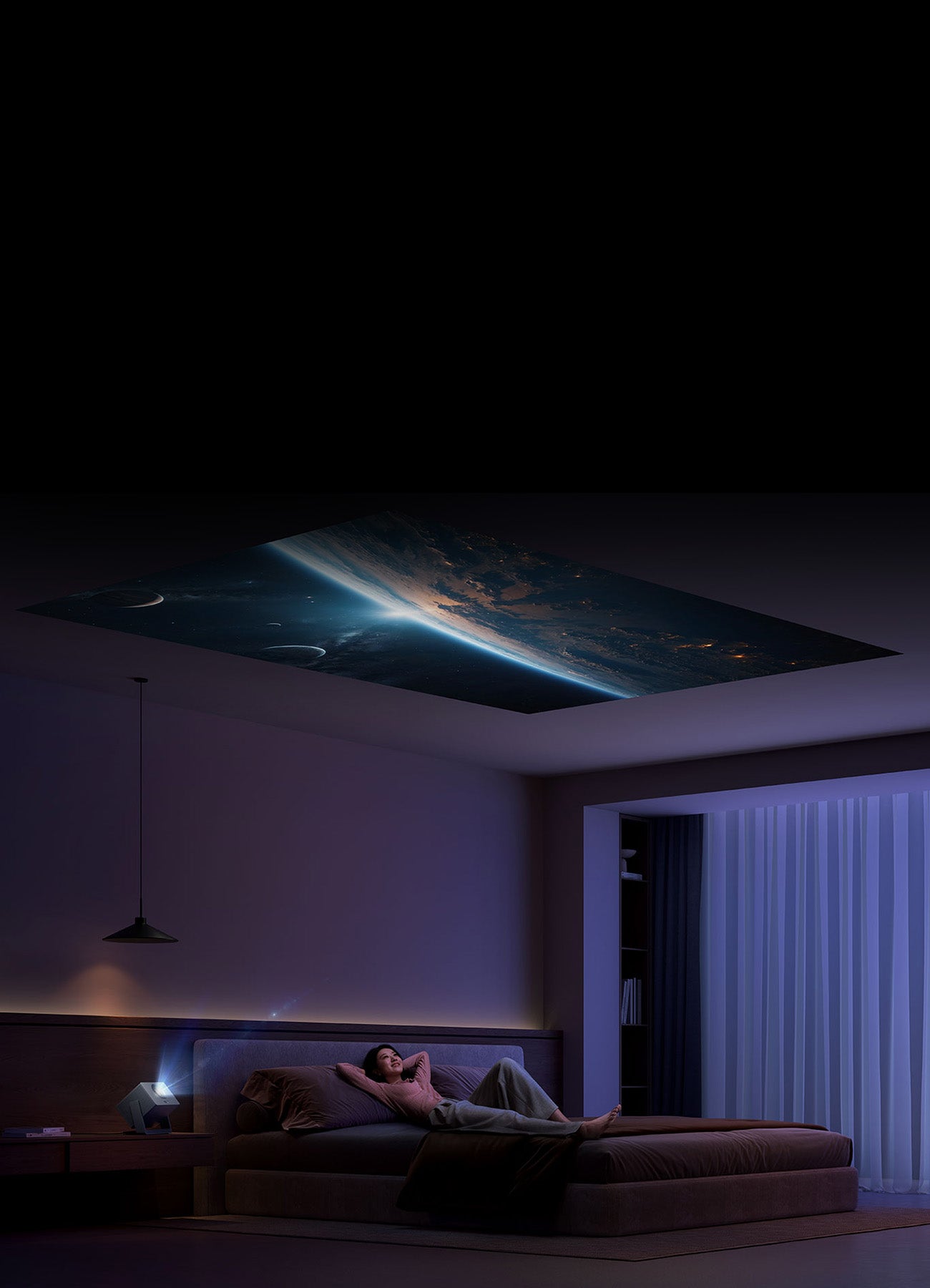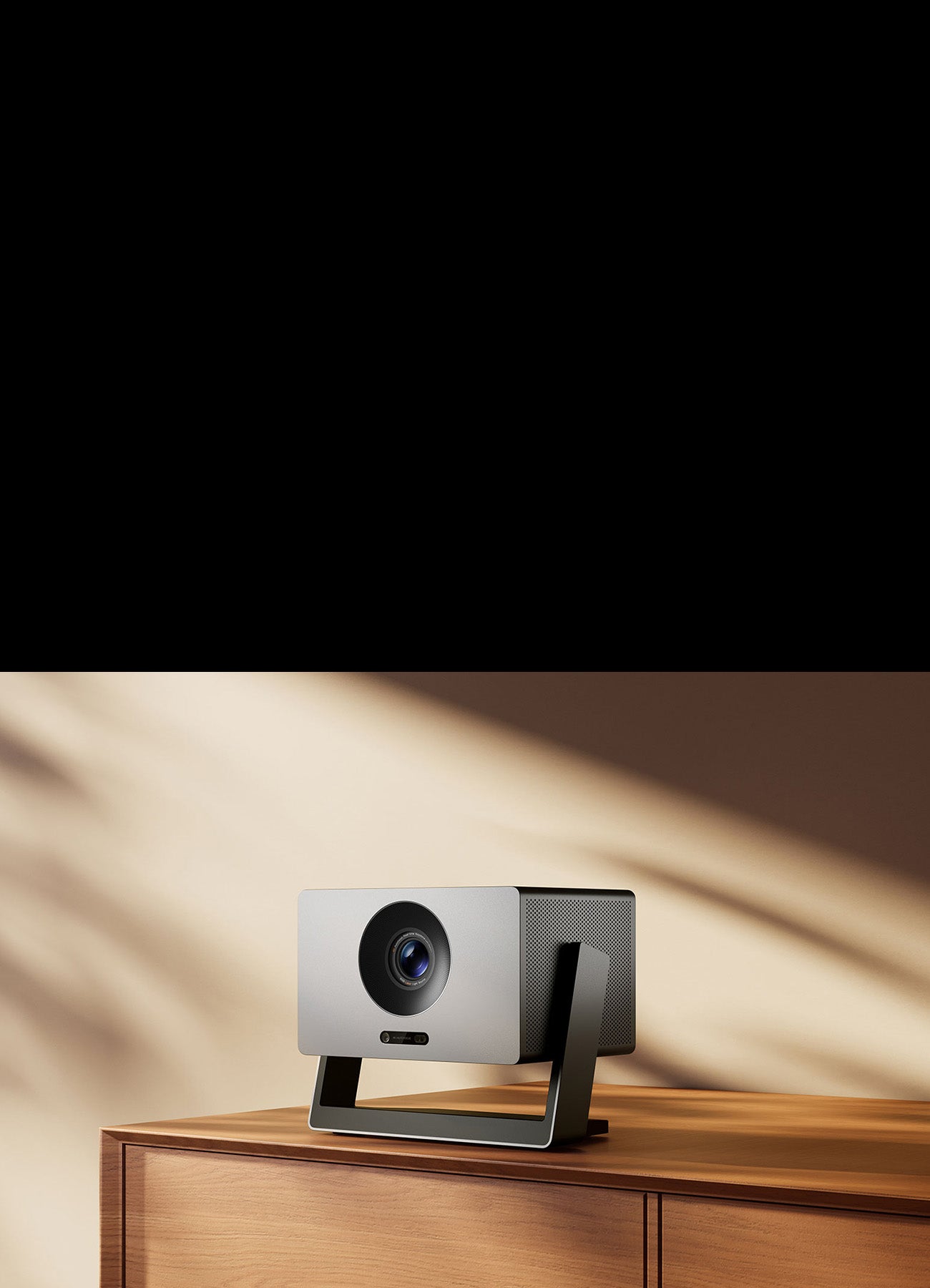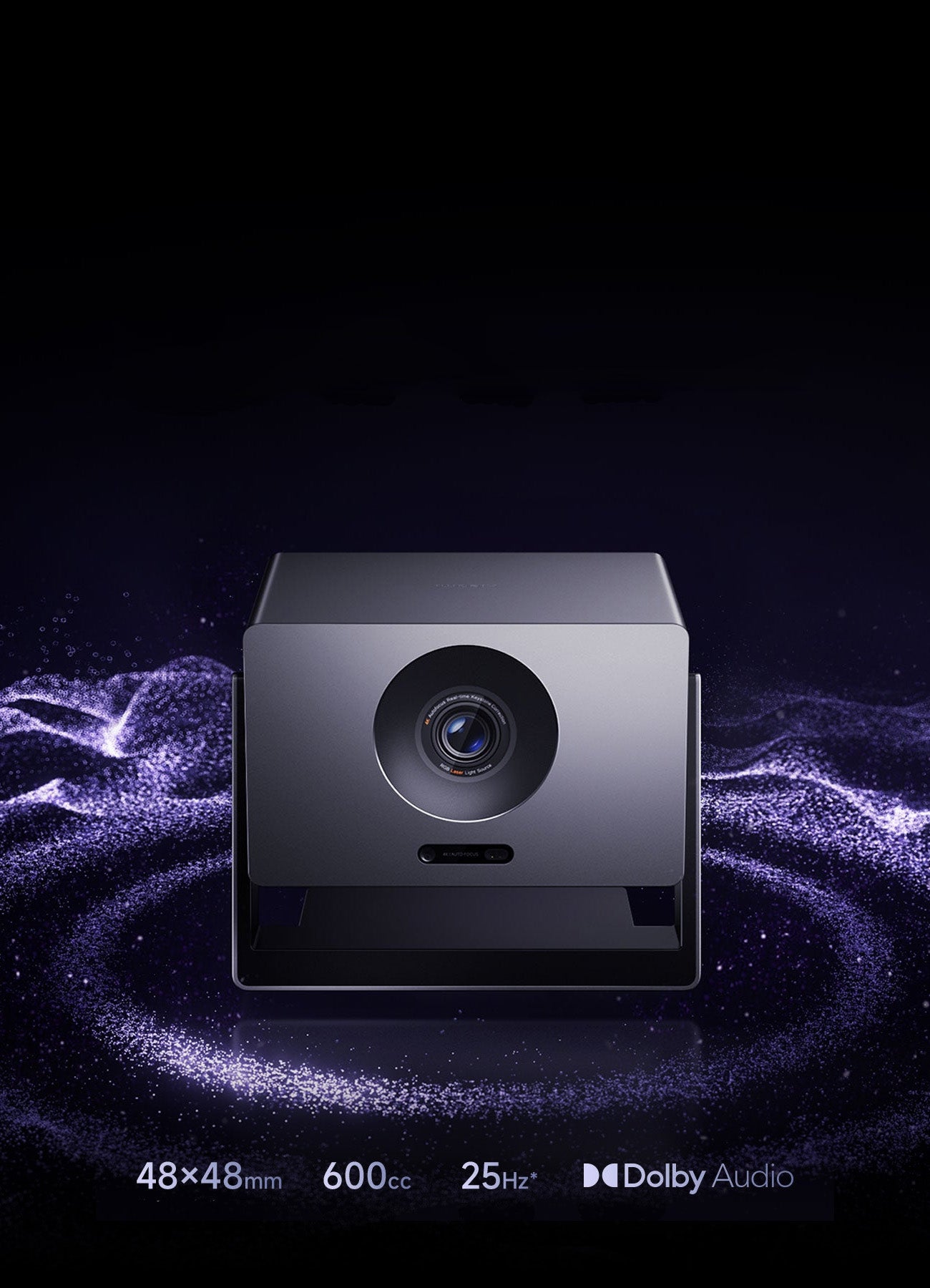 Designed with flexibility in mind, the projector features an integrated gimbal that allows 130° angle adjustment, adapting easily to any room layout. Its 8x8 ToF laser sensing module and HD camera, combined with AI-driven real-time adjustments, ensure that your picture is always perfectly optimized for your environment.