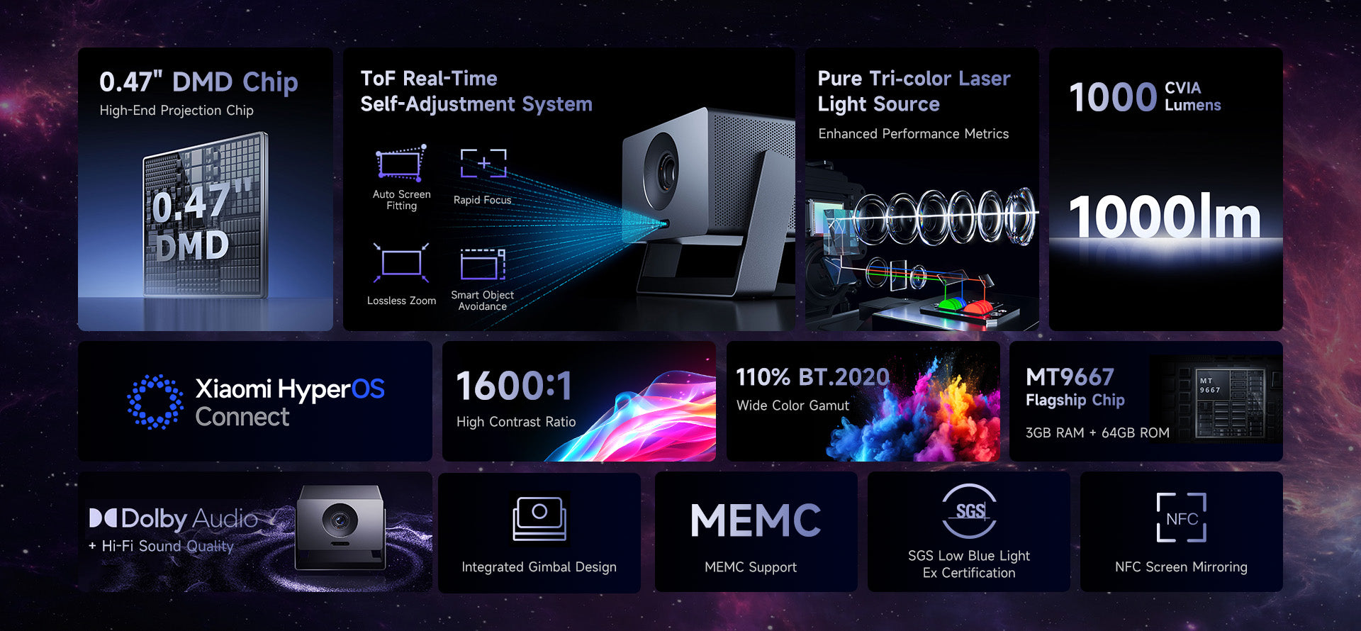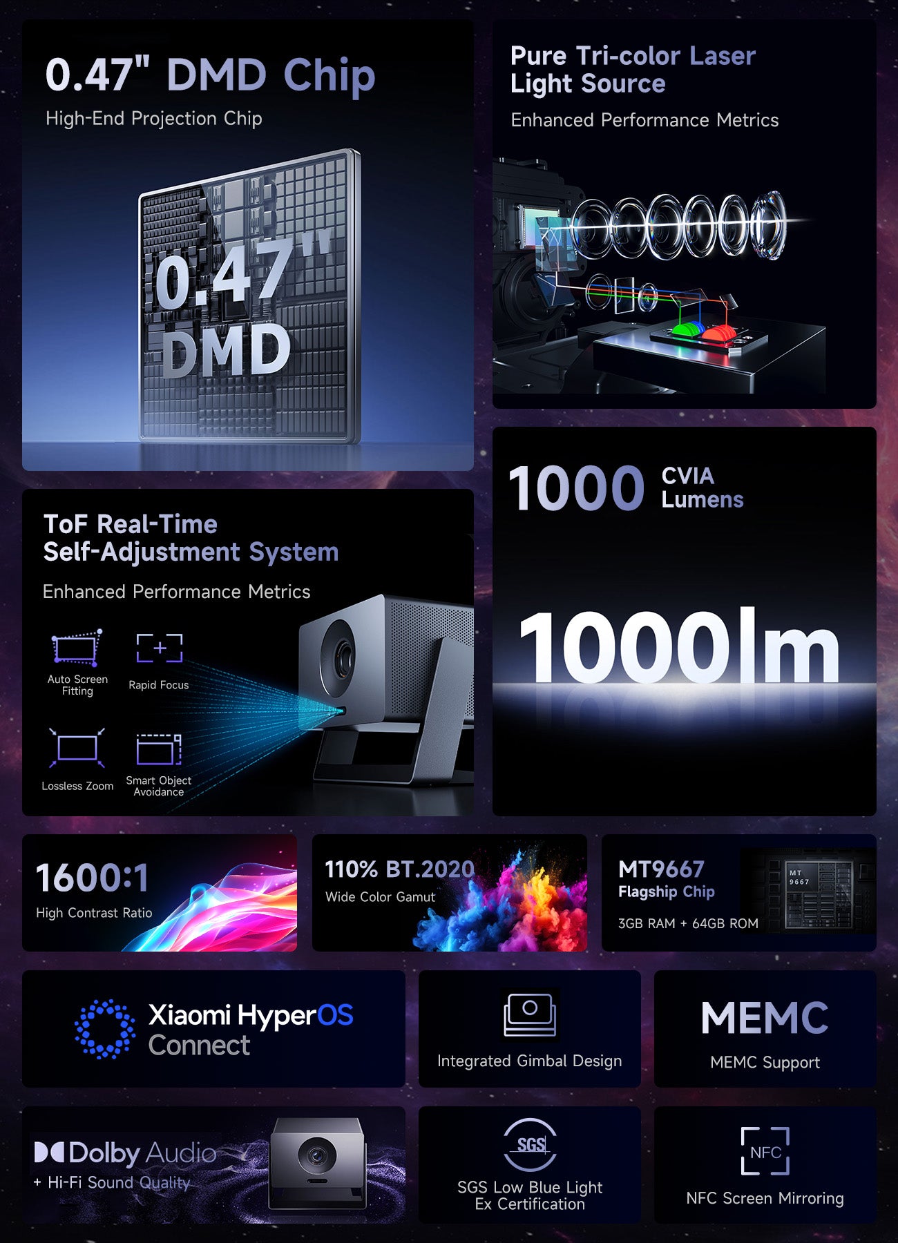 Step into the future of home cinema with the Xiaomi Laser Projector 3 4K, now open for pre-order. Powered by a 0.47-inch DMD chip, it delivers true 4K resolution with razor-sharp clarity, projecting images up to 120 inches that transform any wall into a giant screen.